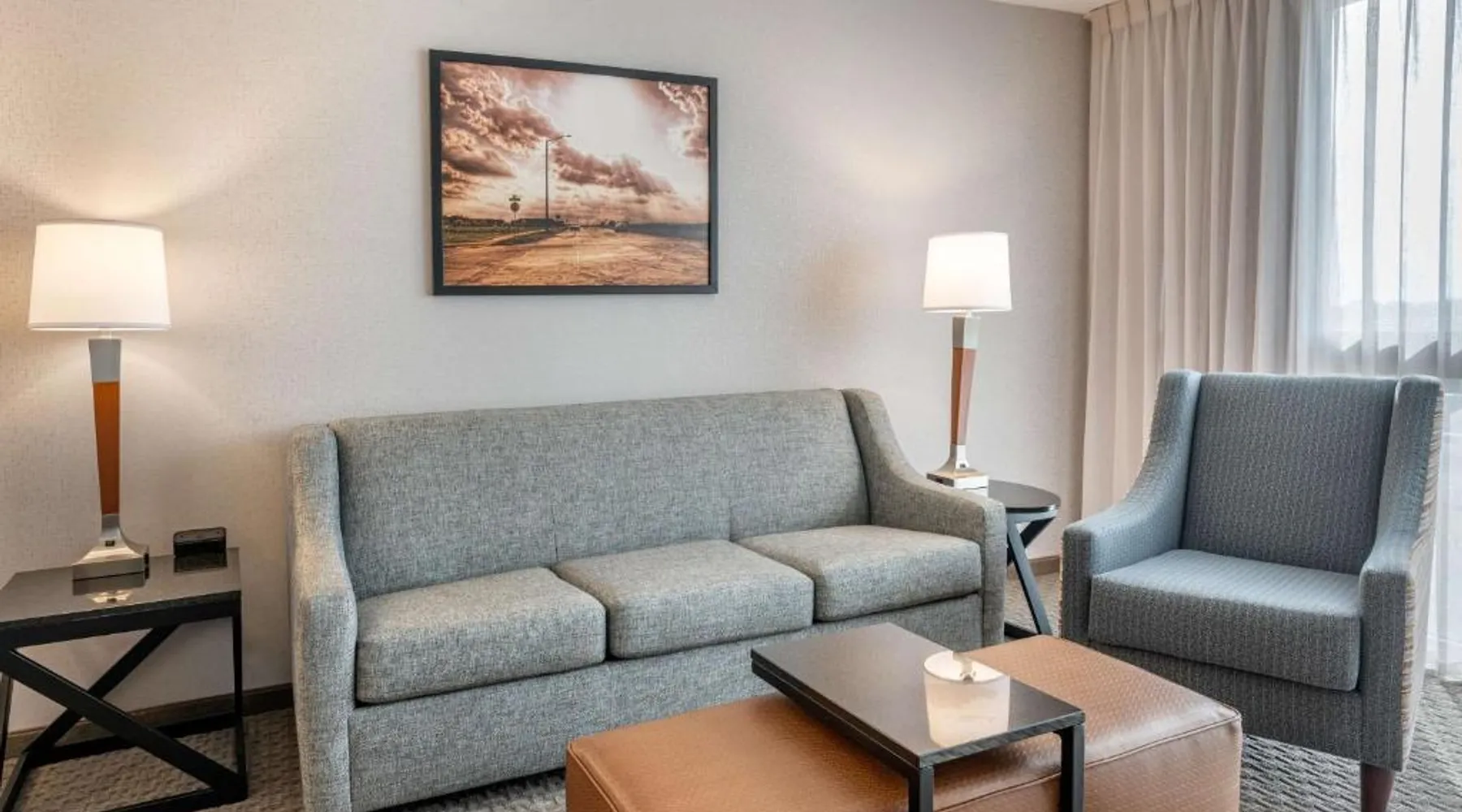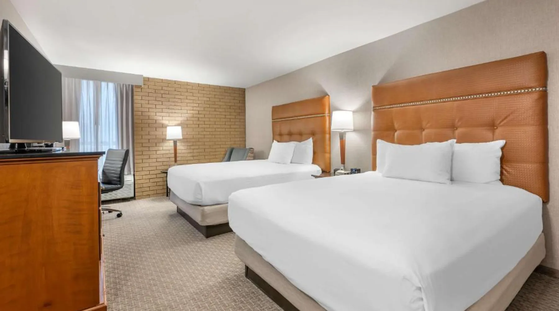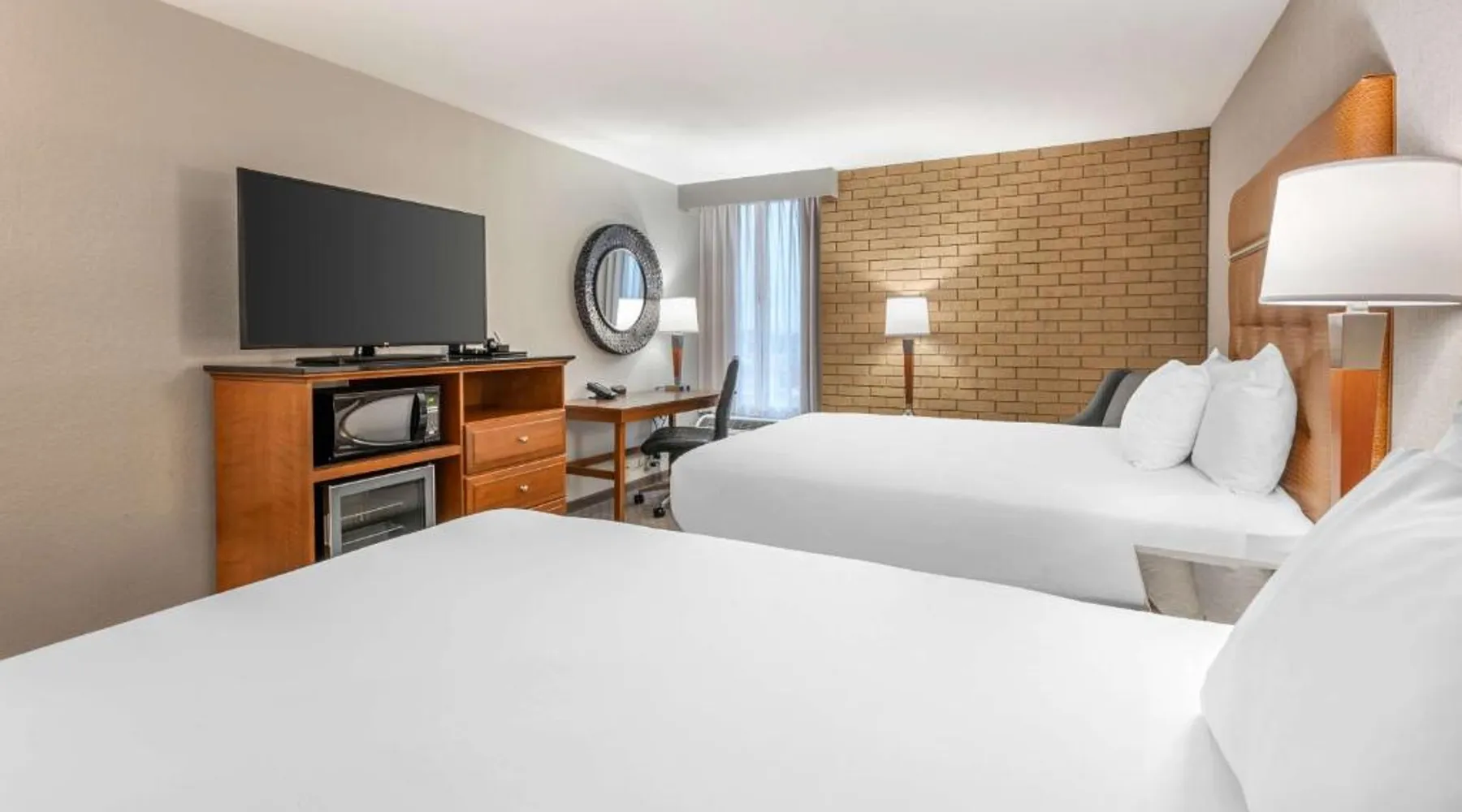 Conveniently located off Interstate 74 and less than 4.3 mi from the University of Illinois, this Champaign hotel features a flat-screen TV and free Wi-Fi in every guest room. A complimentary hot breakfast is offered each morning. A refrigerator and a microwave are included in each room at Drury Inn & Suites Champaign. Ironing facilities and a work desk are also provided in all rooms. Guests can enjoy a swim in the indoor-outdoor pool or relax in the hot tub at Champaign Drury Inn and Suites. A 24-hour fitness center is available on site. Free snacks and beverages are served nightly. Memorial Stadium, Assembly Hall and the Beckman Institute are within 5 mi of this hotel. Parkland Community College and MarketPlace Shopping Center are within a 5 minutes’ drive. The spacious double room offers air conditioning, a coffee machine, as well as a private bathroom featuring a bath and a hairdryer. This double room features a wardrobe, heating and a flat-screen TV with cable channels. The unit offers 2 beds.