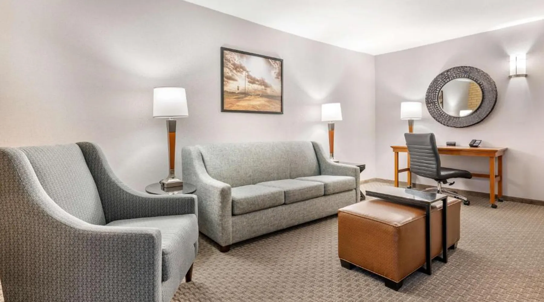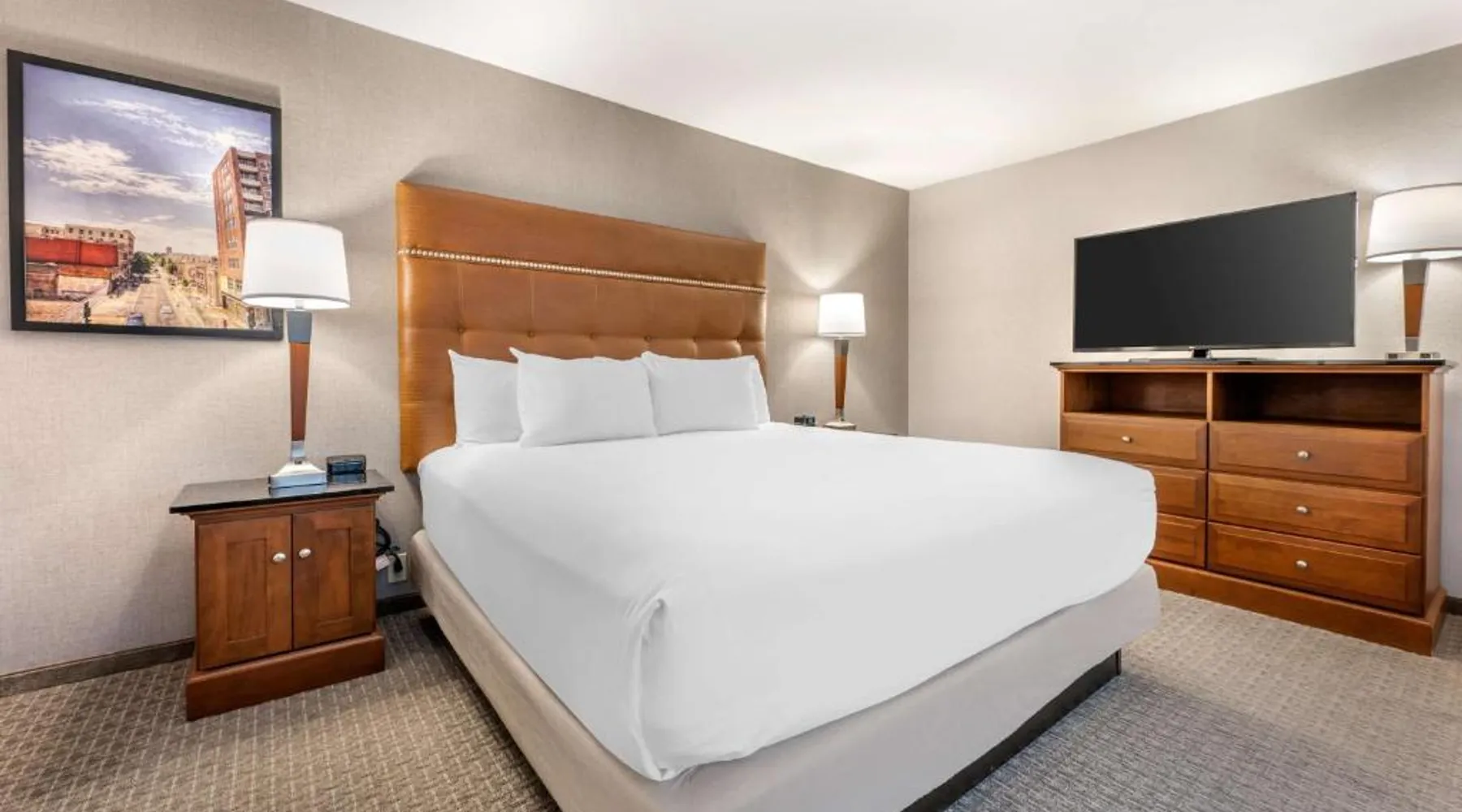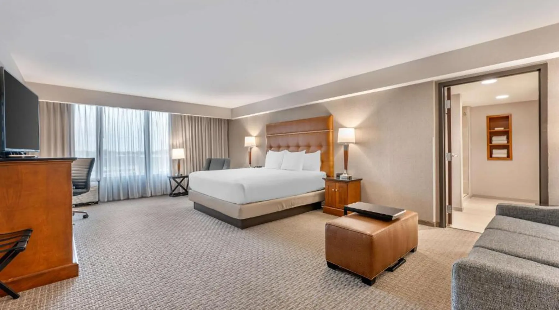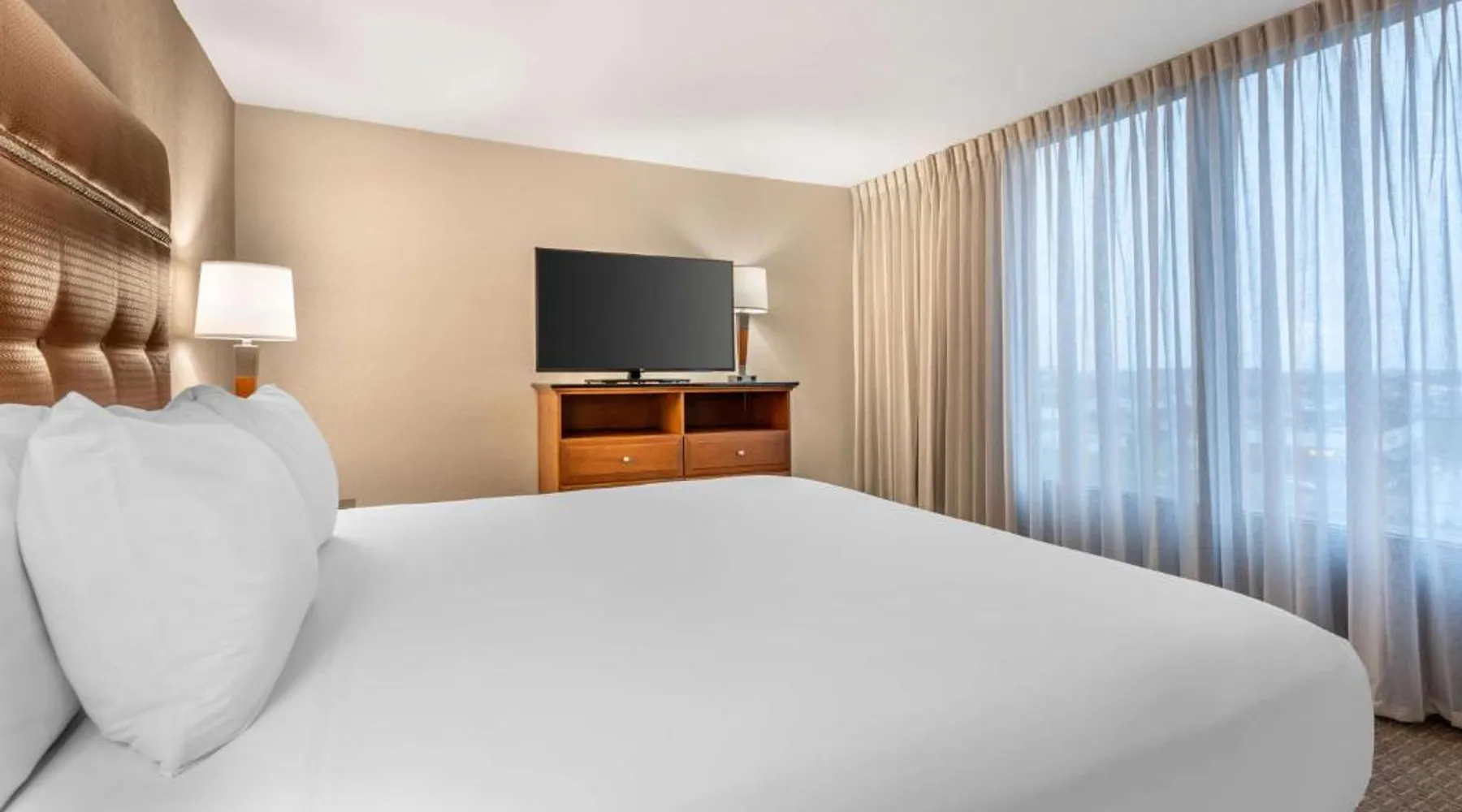 Conveniently located off Interstate 74 and less than 4.3 mi from the University of Illinois, this Champaign hotel features a flat-screen TV and free Wi-Fi in every guest room. A complimentary hot breakfast is offered each morning. A refrigerator and a microwave are included in each room at Drury Inn & Suites Champaign. Ironing facilities and a work desk are also provided in all rooms. Guests can enjoy a swim in the indoor-outdoor pool or relax in the hot tub at Champaign Drury Inn and Suites. A 24-hour fitness center is available on site. Free snacks and beverages are served nightly. Memorial Stadium, Assembly Hall and the Beckman Institute are within 5 mi of this hotel. Parkland Community College and MarketPlace Shopping Center are within a 5 minutes’ drive. The spacious double room offers air conditioning, a coffee machine, as well as a private bathroom featuring a bath and a hairdryer. This double room features a wardrobe, heating and a flat-screen TV with cable channels. The unit offers 2 beds.