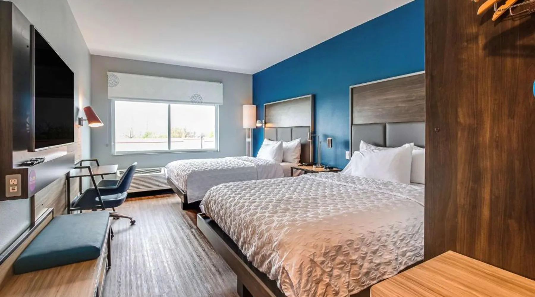 Comfortable Accommodations: TRU By Hilton Clarksville in Clarksville offers comfortable rooms with air-conditioning, free WiFi, and modern amenities including a refrigerator, work desk, and TV. Facilities and Services: Guests can enjoy a fitness center, lounge, indoor play area, and games room. Additional facilities include a 24-hour front desk, electric vehicle charging station, and free on-site private parking. Location and Attractions: Located 50 mi from Nashville International Airport, the hotel is near Dunbar Cave (5 mi), Customs House Museum and Cultural Center (6.8 mi), and Fort Defiance Civil War Park & Interpretive Center (8.1 mi). Guests appreciate the attentive staff and excellent service. This quadruple room features air conditioning, heating and a TV. The unit offers 2 beds.