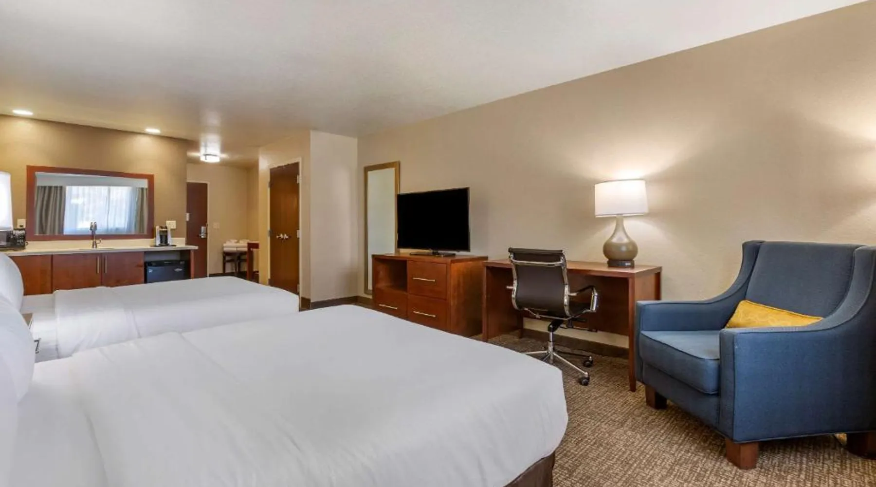 Conveniently located off Interstate 90, this hotel offers a free transfer service to Coeur d’Alene Airport, which is 6 miles away. A daily continental breakfast is served, and each room offers free Wi-Fi. For added convenience, a microwave and refrigerator are included in each guest room. An indoor pool and hot tub are available at Comfort Inn & Suites Coeur d'Alene. Guests can work out in the fitness center or take care of work in the business center. Lake Coeur d’Alene can be reached in 8 minutes’ drive. Silverwood Theme Park is 16 miles away. The family room features a tea and coffee maker and heating. The unit has 2 beds.
