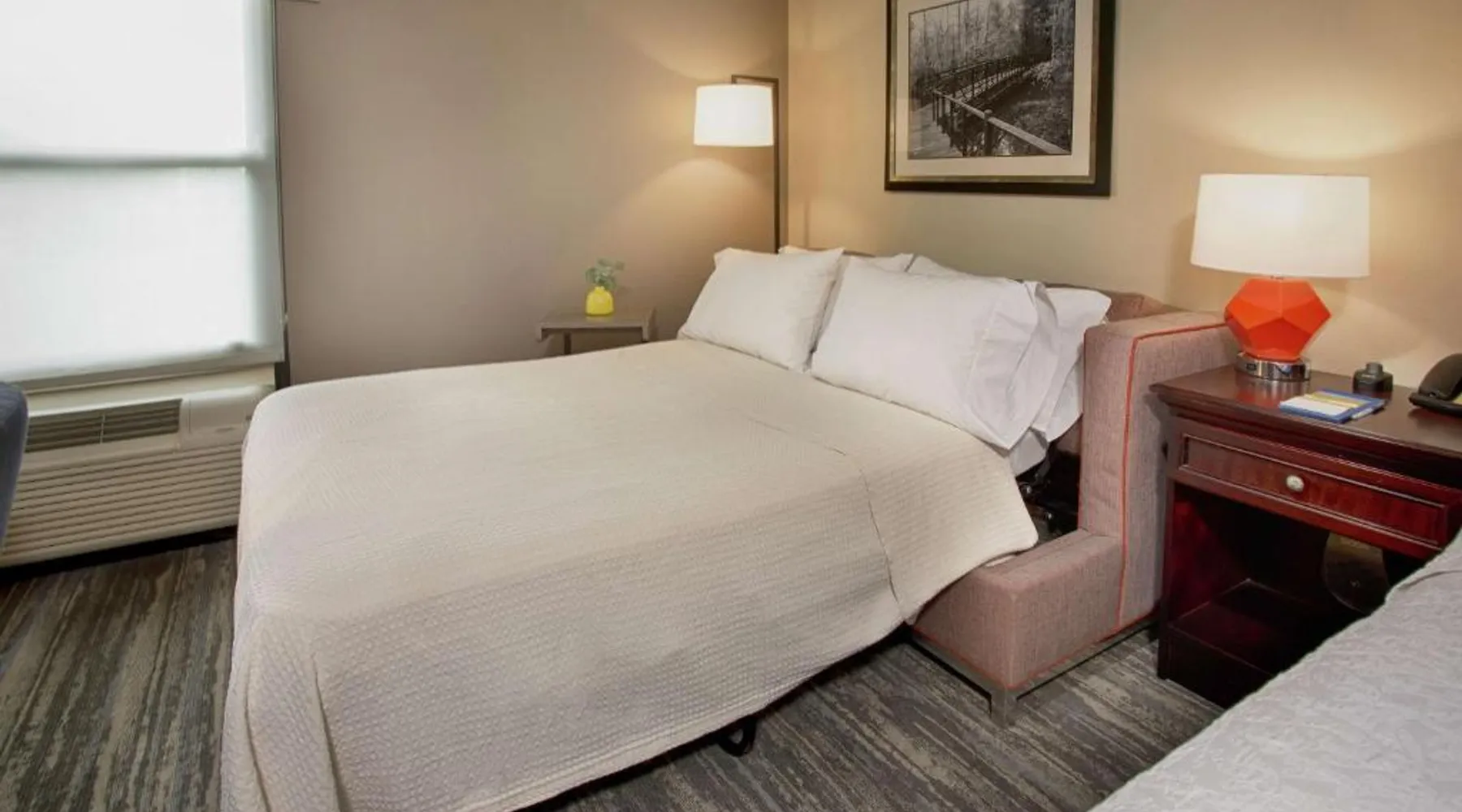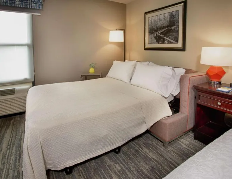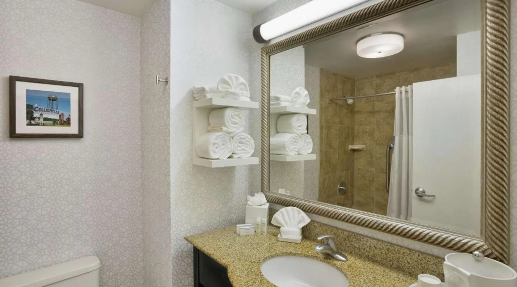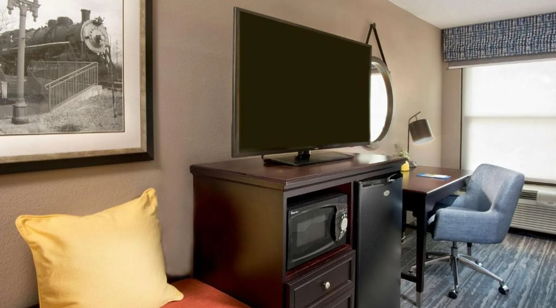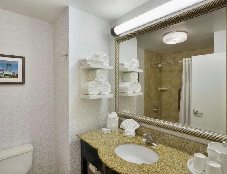 Comfortable Accommodations: Hampton Inn Memphis/Collierville in Collierville offers family rooms with air-conditioning, bathrobes, tea and coffee makers, hairdryers, sofa beds, refrigerators, free toiletries, interconnected rooms, and TVs. Exceptional Facilities: Guests enjoy an outdoor swimming pool, free WiFi, fitness room, elevator, 24-hour front desk, and free on-site parking. Delicious Breakfast: A continental buffet breakfast is served daily, highly praised by guests. Convenient Location: Located 15 mi from Memphis International Airport, nearby attractions include Graceland (19 mi), Stax Museum of American Soul Music (21 mi), and Memphis Zoo (22 mi). This accessible room features a cable TV and air conditioning.