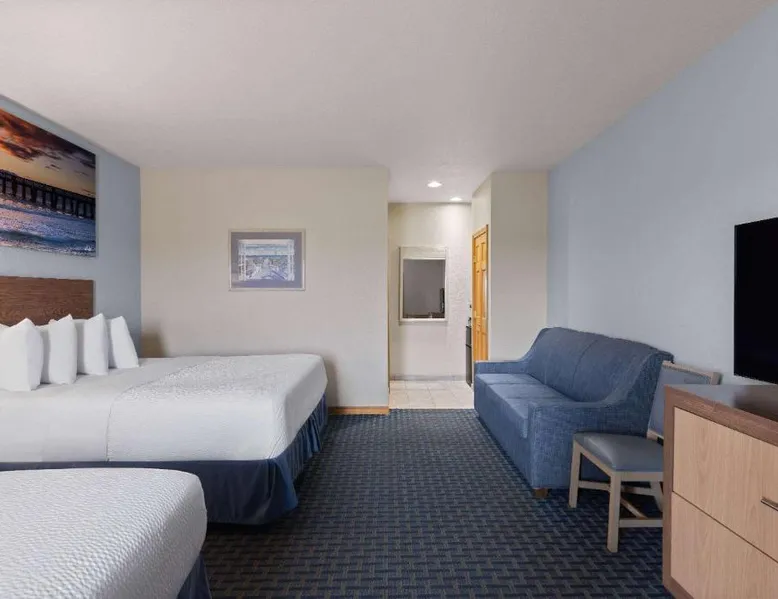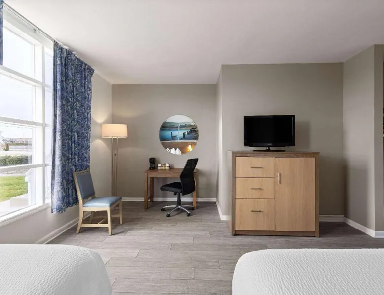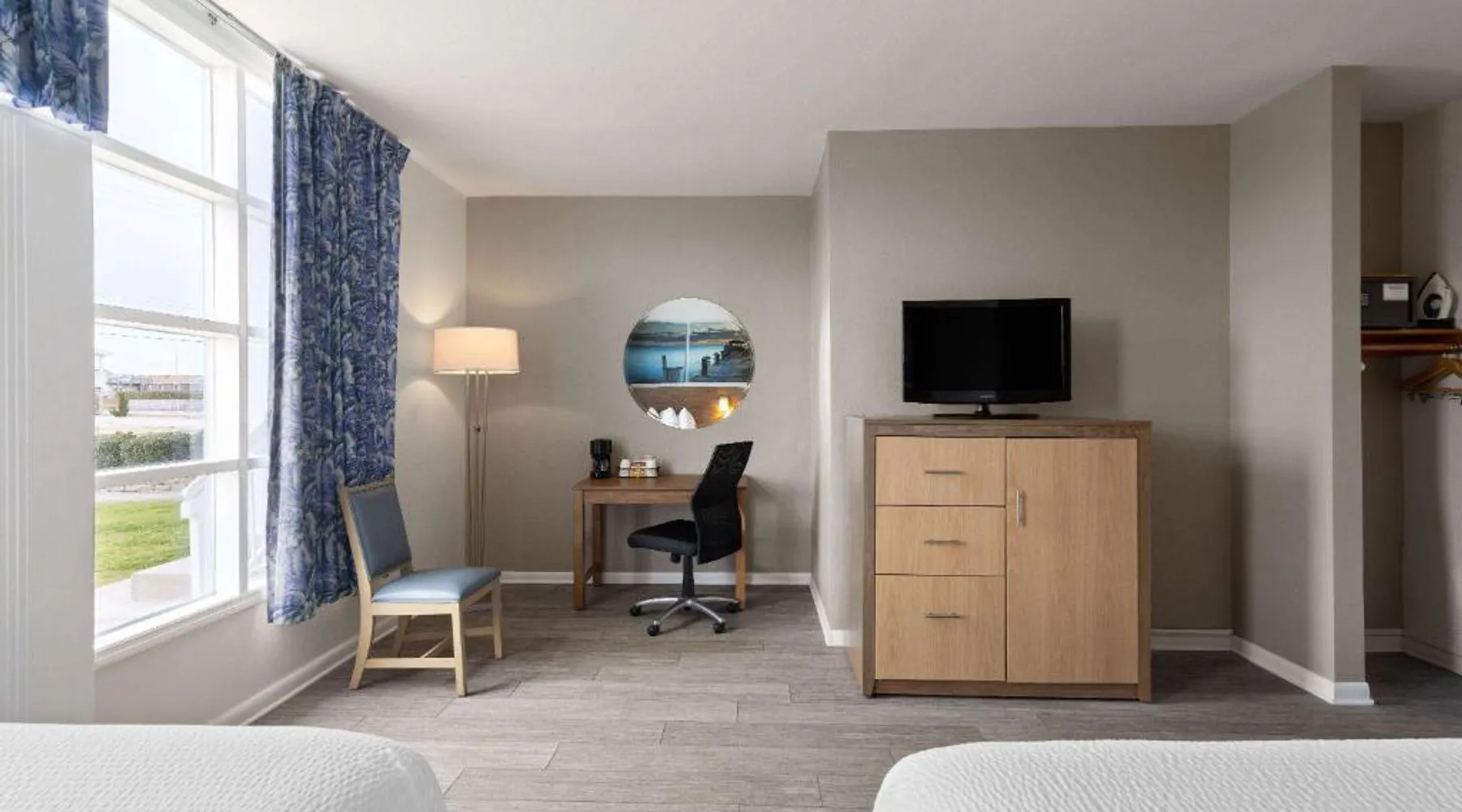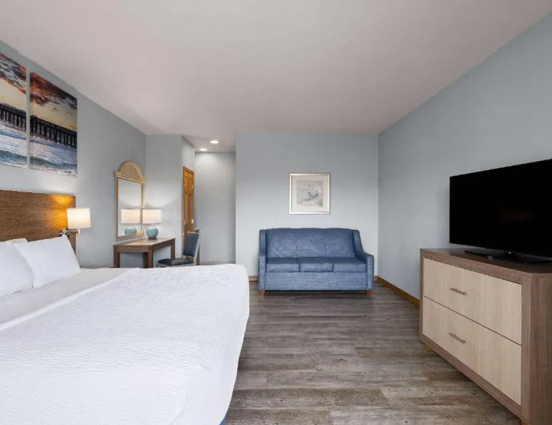 Located in Kill Devil Hills, North Carolina, this oceanfront hotel features an outdoor pool and a daily continental breakfast. It offers rooms with free Wi-Fi access. A microwave and refrigerator are available in each room at the Days Inn by Wyndham Kill Devil Hills Oceanfront - Wilbur. A flat-screen cable TV and ironing facilities are also included. Rooms offer private bathrooms with free toiletries. A business center is available to guests at the Days Inn by Wyndham Kill Devil Hills Oceanfront - Wilbur. A 24-hour reception, vending machines, and free parking are also available. Guests can enjoy complimentary afternoon refreshments and complimentary YMCA fitness guest passes during their stay. Wright Brothers National Memorial is just 1.1 mi away. Guests will be 13 minutes’ drive from Kitty Hawk Woods Coastal Reserve. This smaller room features a microwave and tea- and coffee-making facilities.