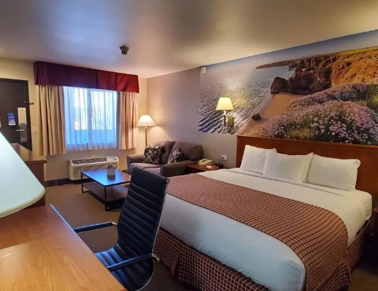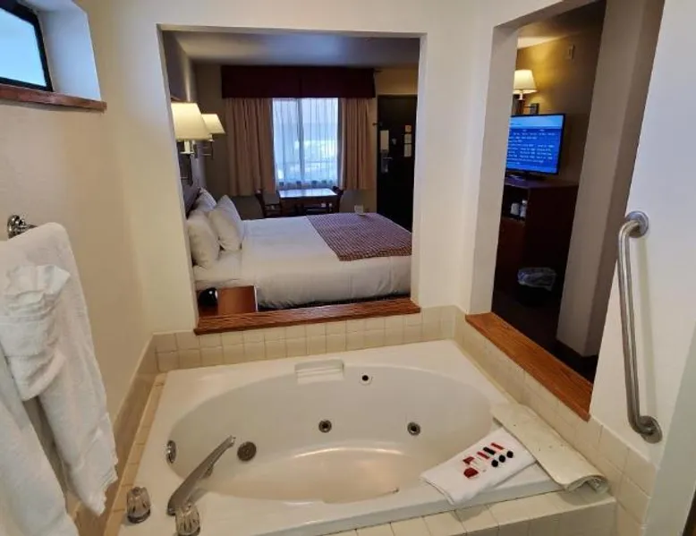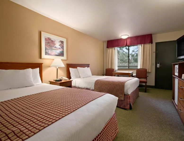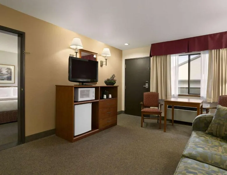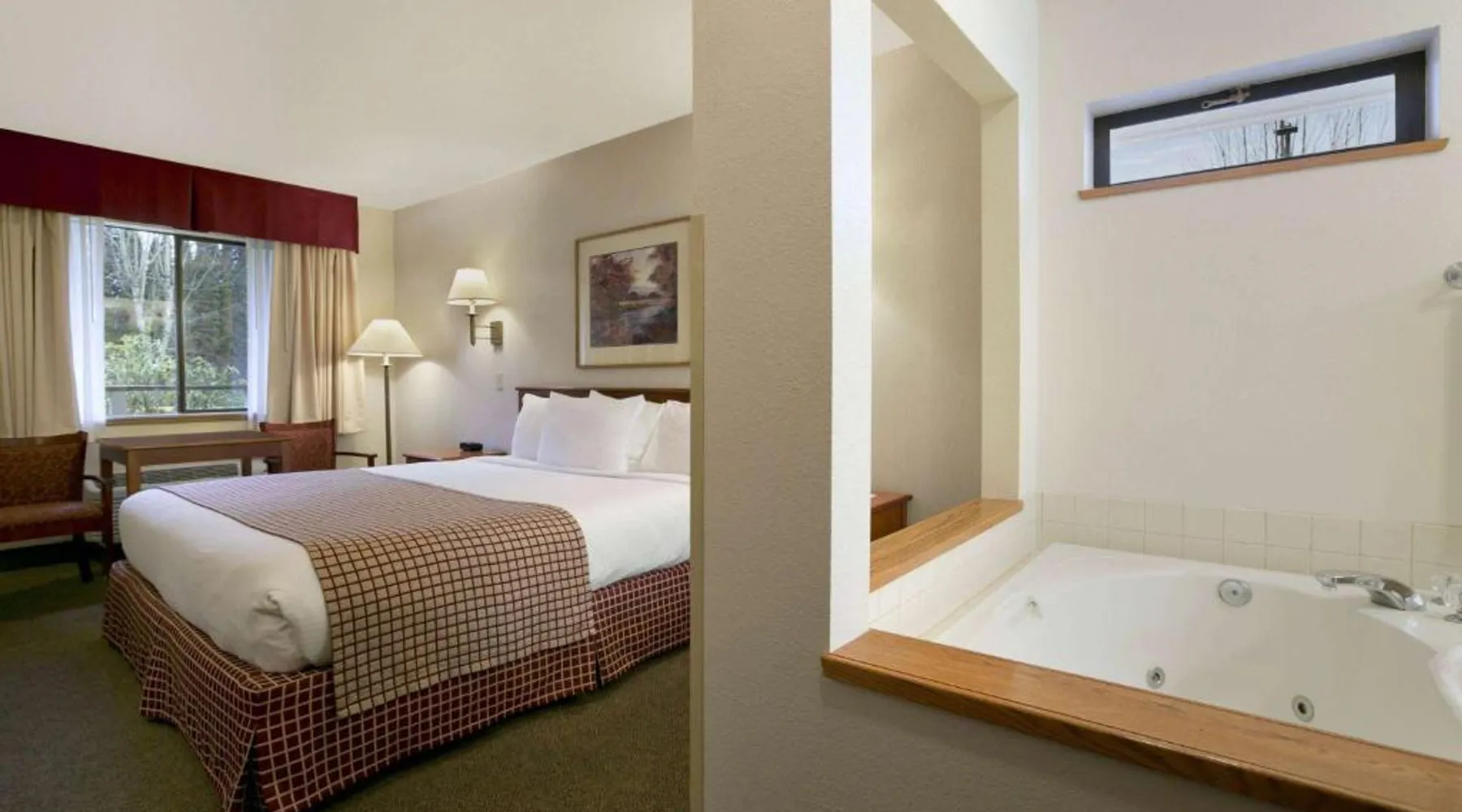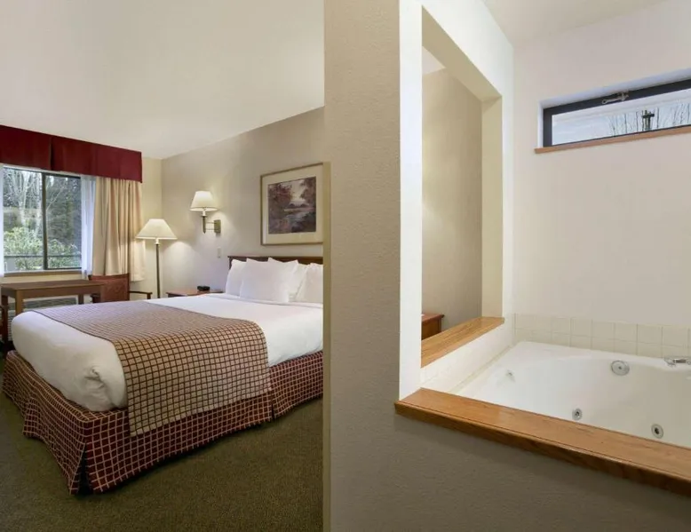 This Washington hotel is just a 4-minute drive from Juanita Beach. Baymont Inn and Suites Seattle/Kirkland features an outdoor heated pool and spacious rooms with free Wi-Fi and cable TV. Each room provides a microwave, refrigerator and coffee maker. The comfortable and bright rooms have a seating area as well. Guests can enjoy a continental breakfast that includes waffles, and fresh fruit. They can also relax in the hotel’s indoor spa bath. Baymont Inn Kirkland is within 4 miles of Willows Run Golf Club, Chateau Ste. Michelle Winery and Northwest University. Seattle is 14 miles away. This suite is equipped with free Wi-Fi and cable TV.
