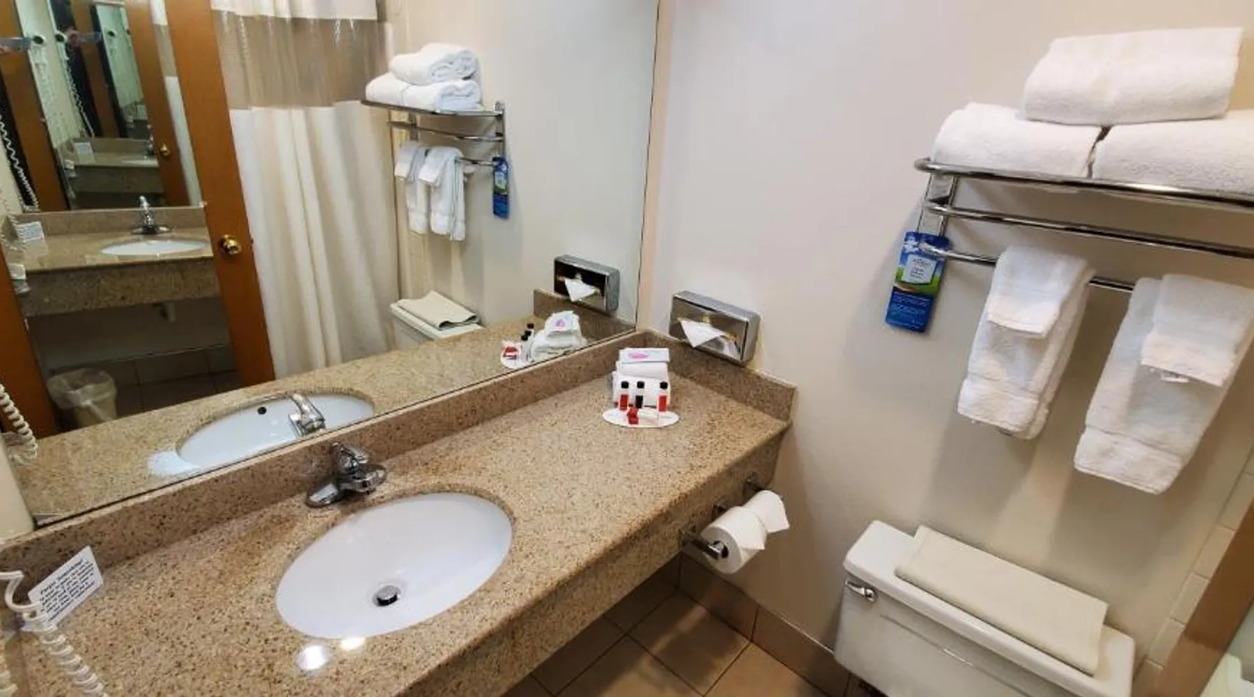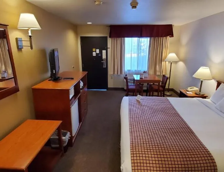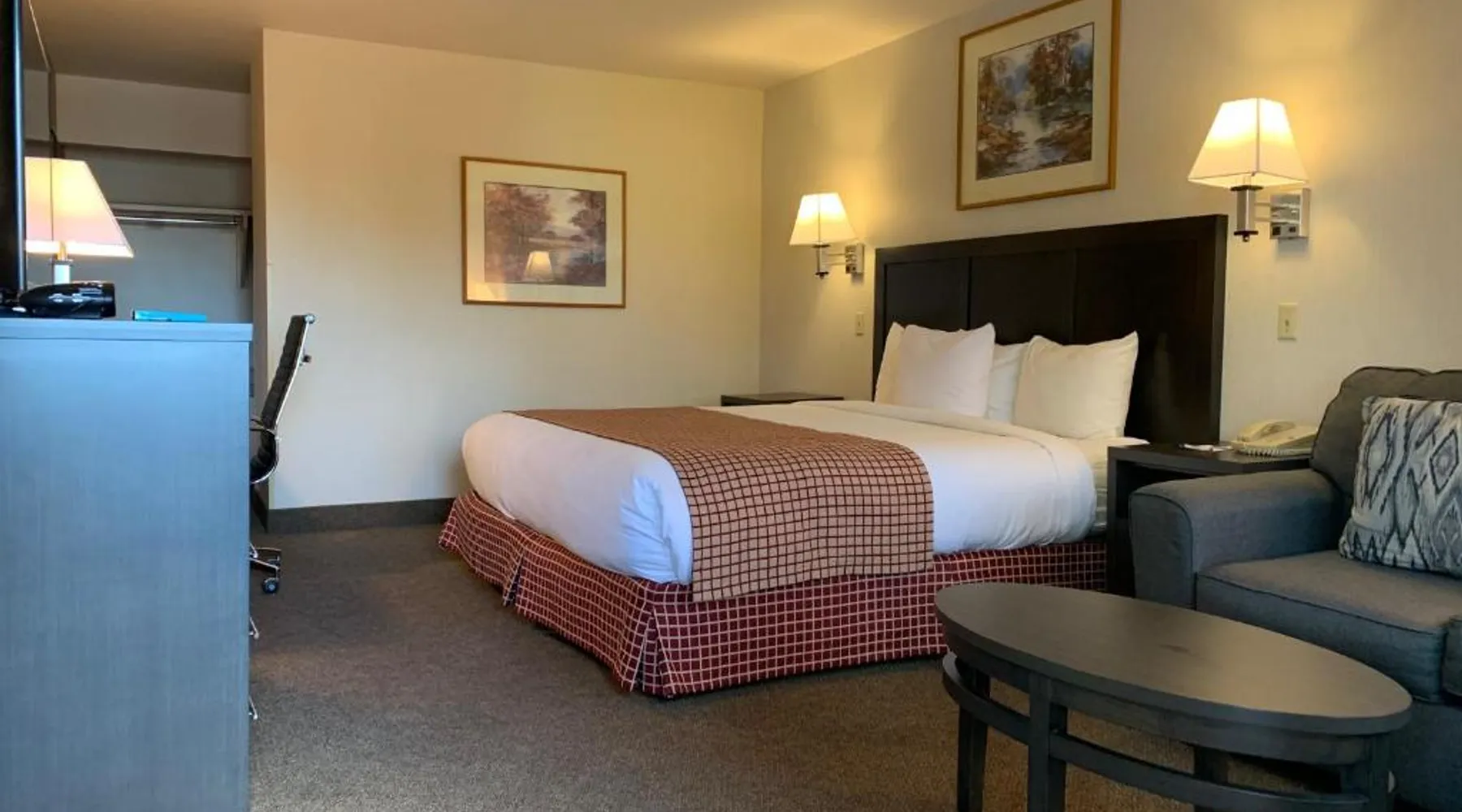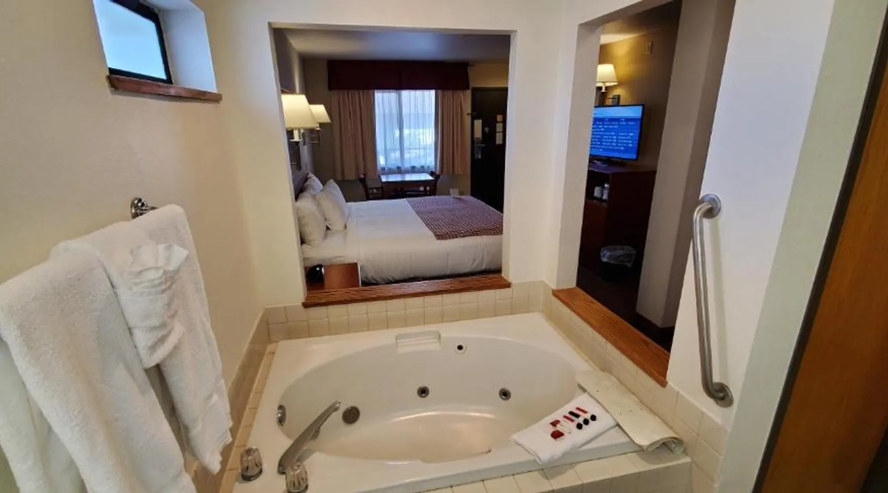 This Washington hotel is just a 4-minute drive from Juanita Beach. Baymont Inn and Suites Seattle/Kirkland features an outdoor heated pool and spacious rooms with free Wi-Fi and cable TV. Each room provides a microwave, refrigerator and coffee maker. The comfortable and bright rooms have a seating area as well. Guests can enjoy a continental breakfast that includes waffles, and fresh fruit. They can also relax in the hotel’s indoor spa bath. Baymont Inn Kirkland is within 4 miles of Willows Run Golf Club, Chateau Ste. Michelle Winery and Northwest University. Seattle is 14 miles away. This suite is equipped with free Wi-Fi and cable TV.
