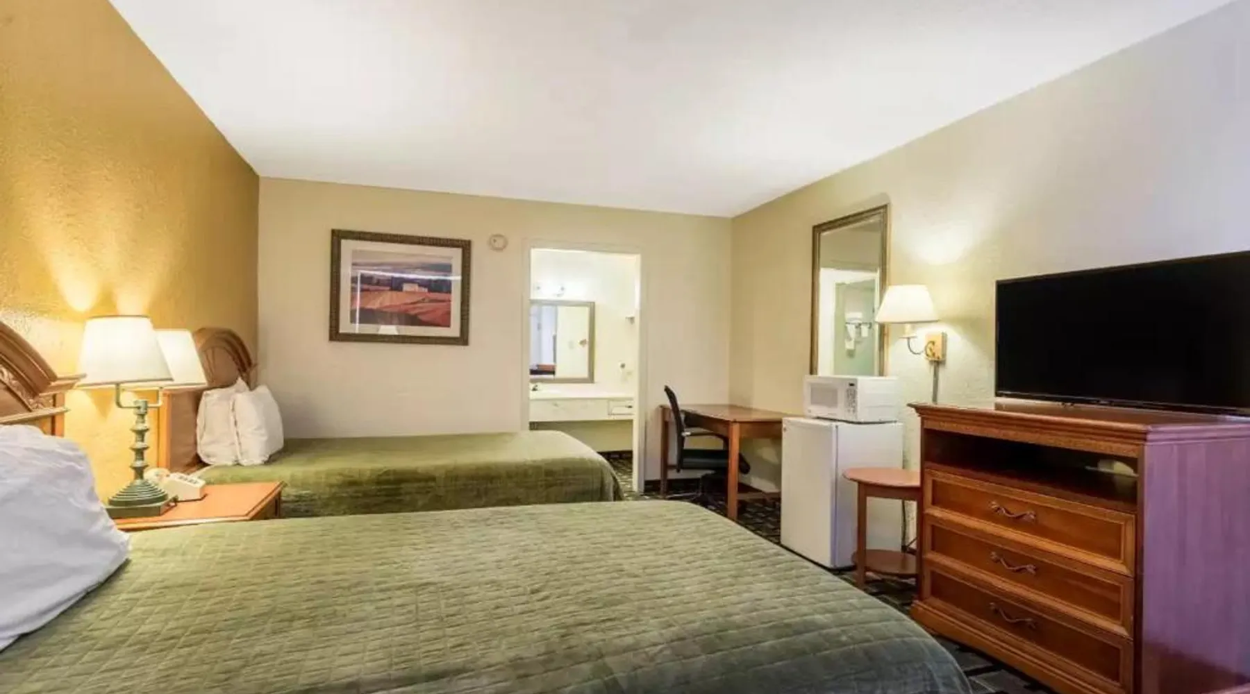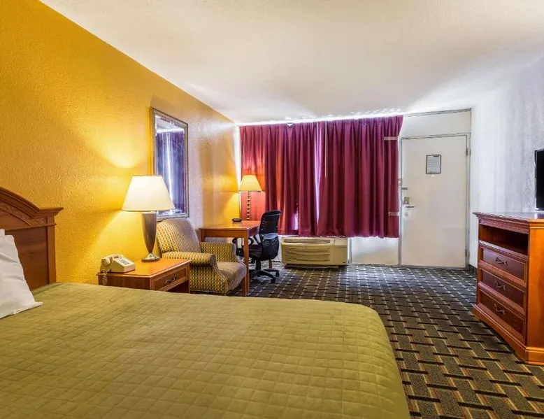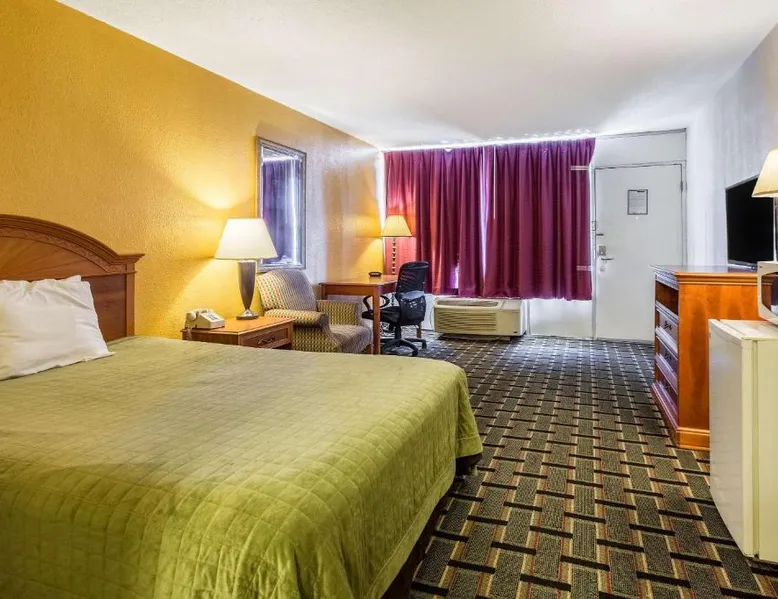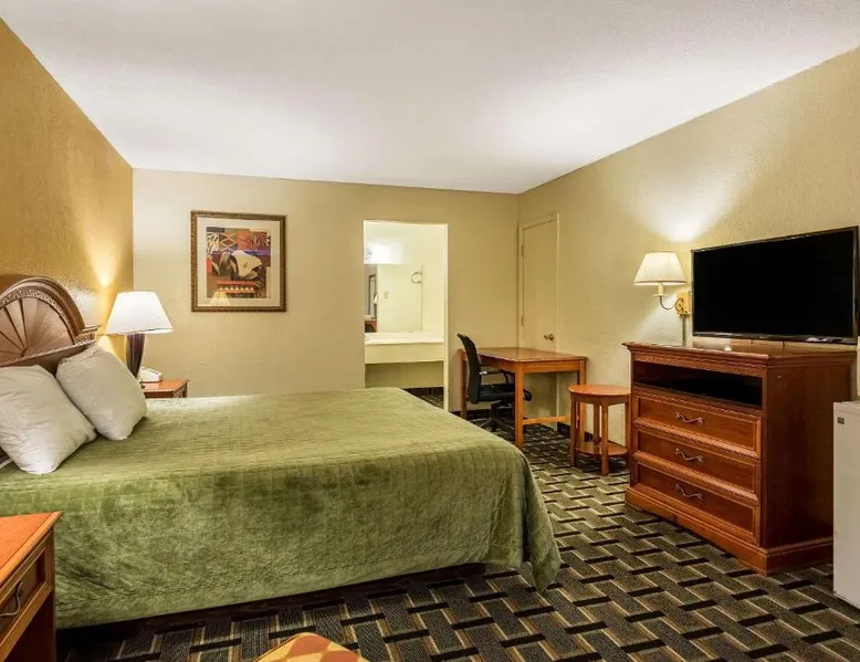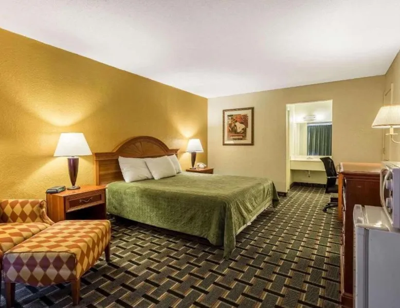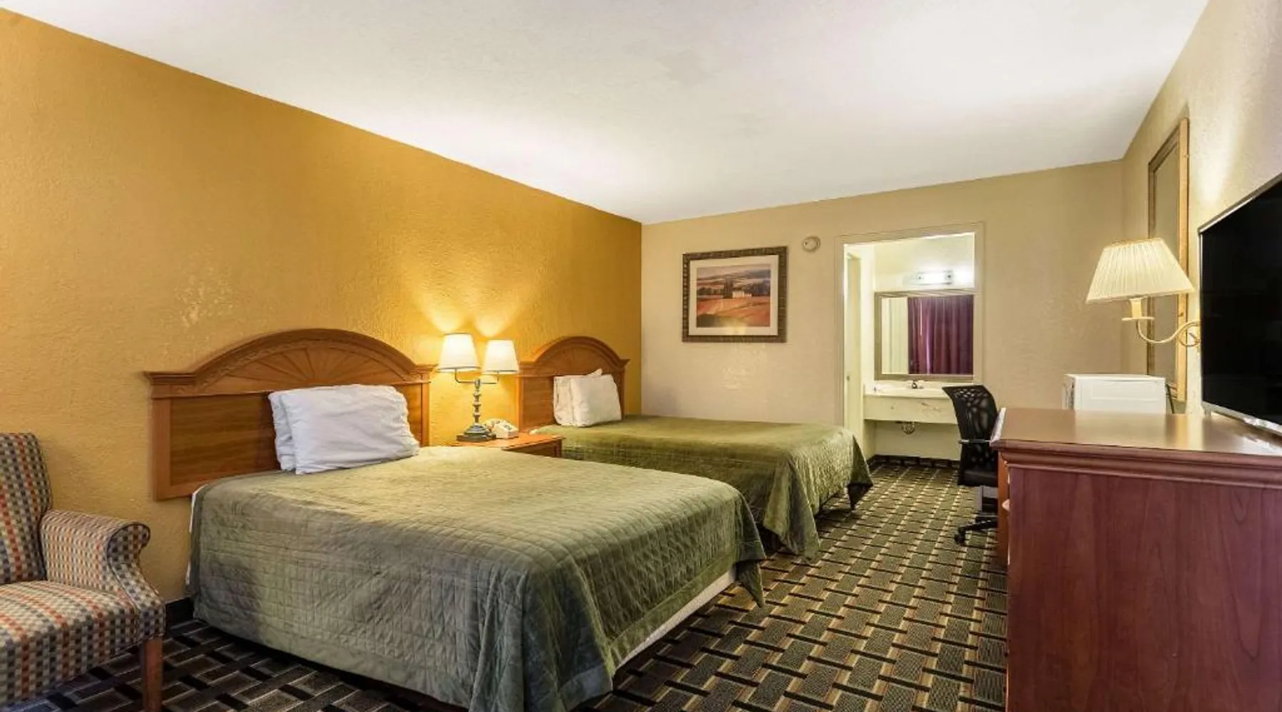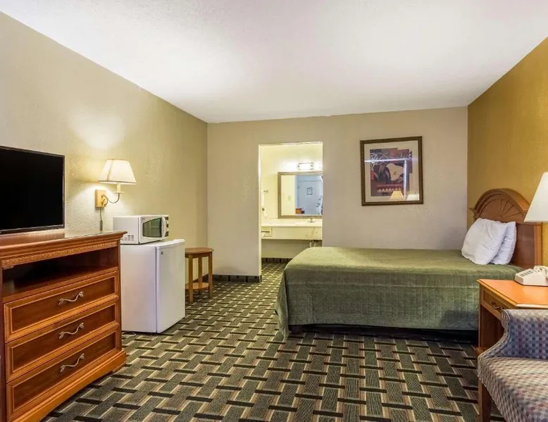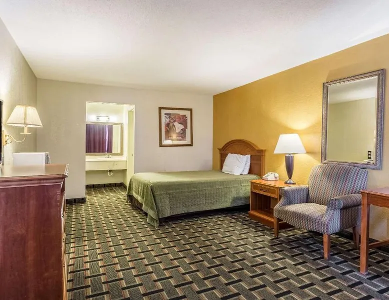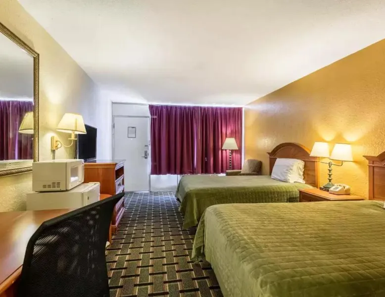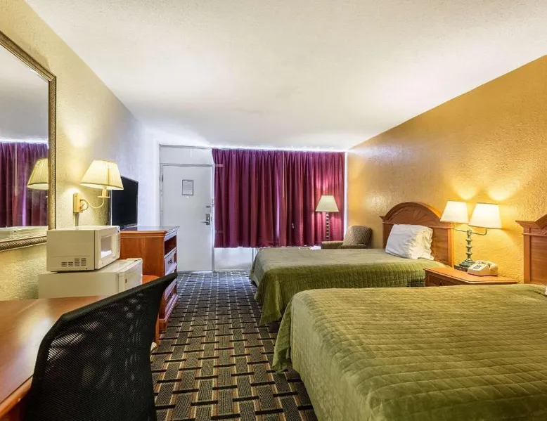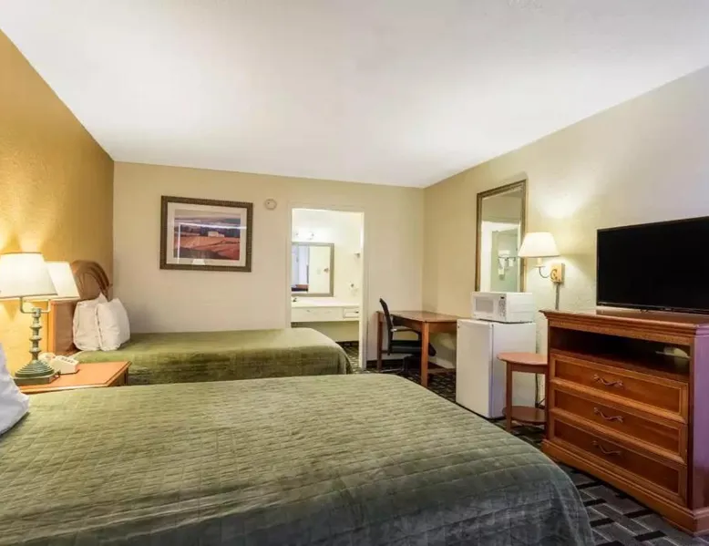 Comfortable Accommodations: Rodeway Inn Denmark-Jackson in Denmark offers family rooms with private bathrooms, air-conditioning, and free WiFi. Each room includes a work desk, TV, and essential amenities such as a hairdryer and tea and coffee maker. Convenient Facilities: Guests can enjoy a garden, lounge, and picnic area. The inn provides free on-site parking, a business area, and bicycle parking. Additional services include private check-in and check-out, a 24-hour front desk, and housekeeping. Local Attractions: Located 11 mi from McKellar-Sipes Regional Airport, the inn is near Cypress Grove Park and Casey Jones Village, both 12 mi away. Rusty'S Tv And Movie Car Museum is 15 mi from the property. The family room provides a tea and coffee maker. The unit offers 2 beds.