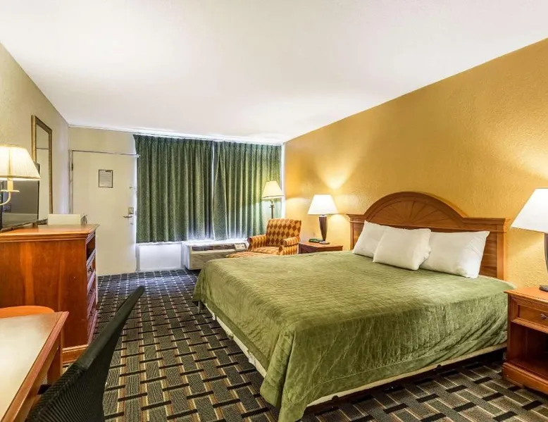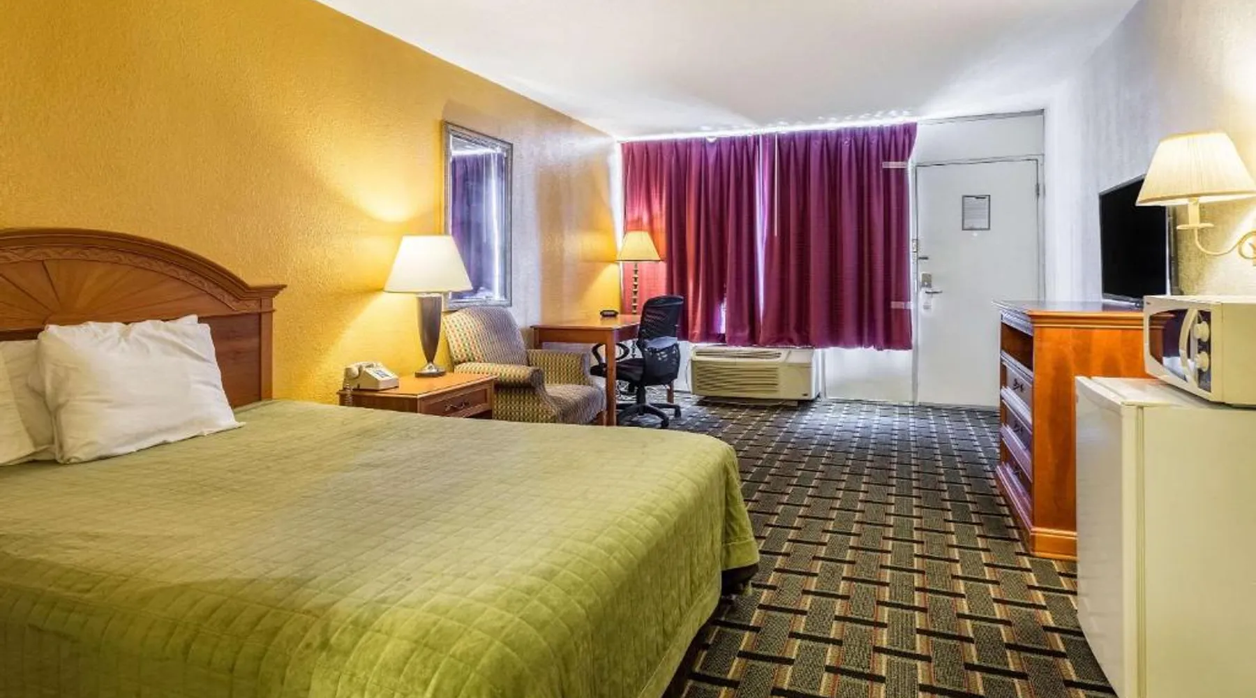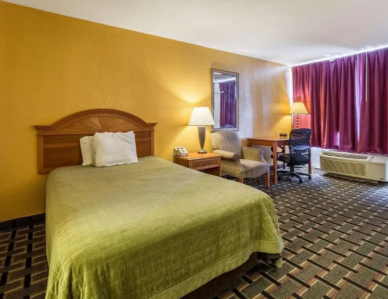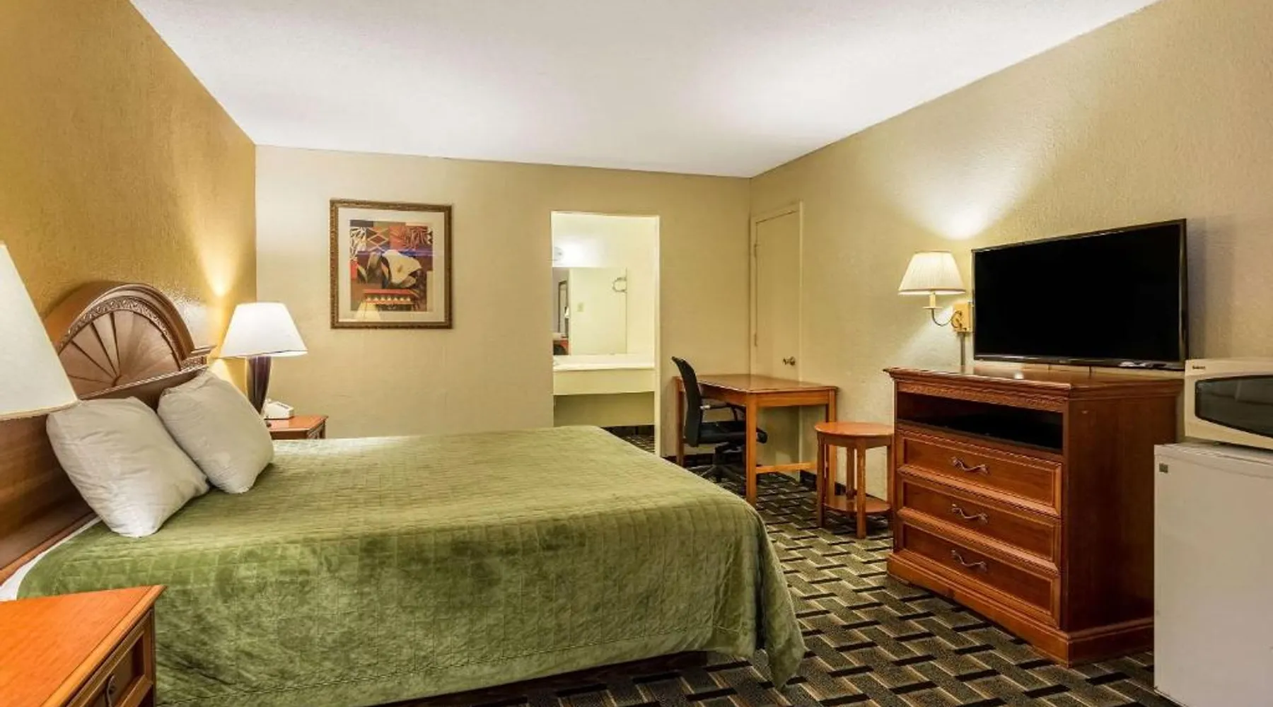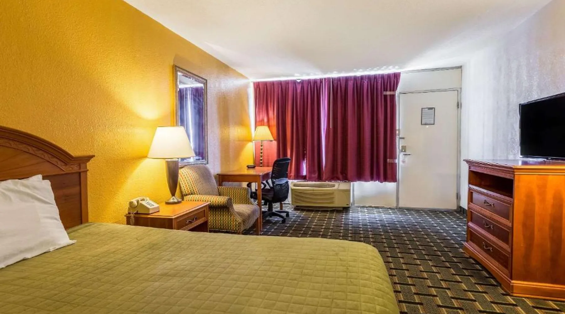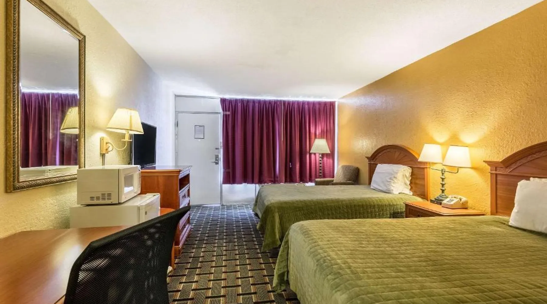Comfortable Accommodations: Rodeway Inn Denmark-Jackson in Denmark offers family rooms with private bathrooms, air-conditioning, and free WiFi. Each room includes a work desk, TV, and essential amenities such as a hairdryer and tea and coffee maker. Convenient Facilities: Guests can enjoy a garden, lounge, and picnic area. The inn provides free on-site parking, a business area, and bicycle parking. Additional services include private check-in and check-out, a 24-hour front desk, and housekeeping. Local Attractions: Located 11 mi from McKellar-Sipes Regional Airport, the inn is near Cypress Grove Park and Casey Jones Village, both 12 mi away. Rusty'S Tv And Movie Car Museum is 15 mi from the property. The family room provides a tea and coffee maker. The unit offers 2 beds.