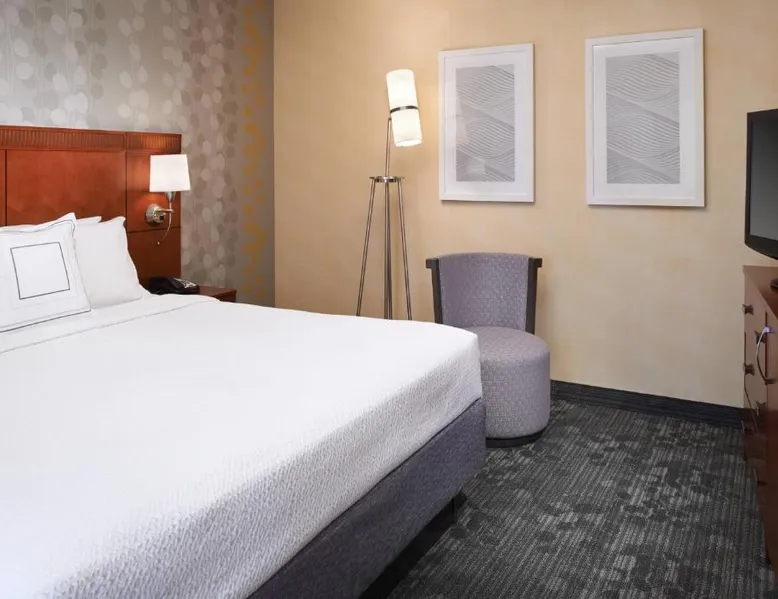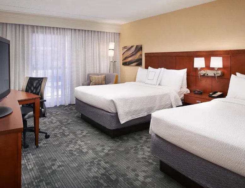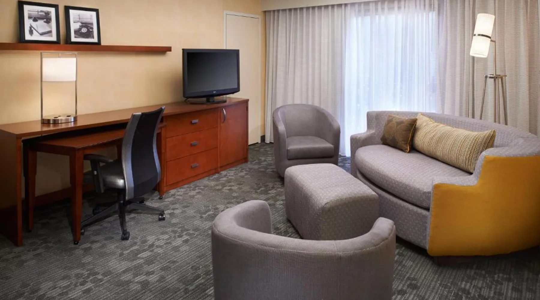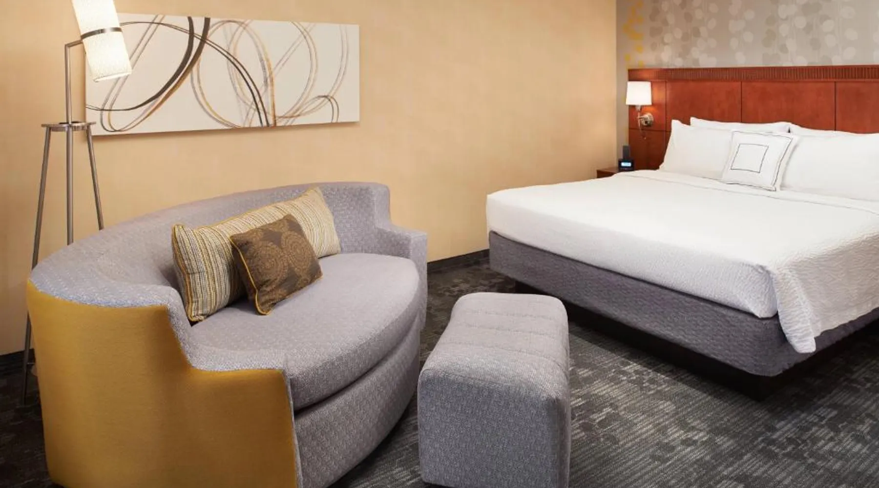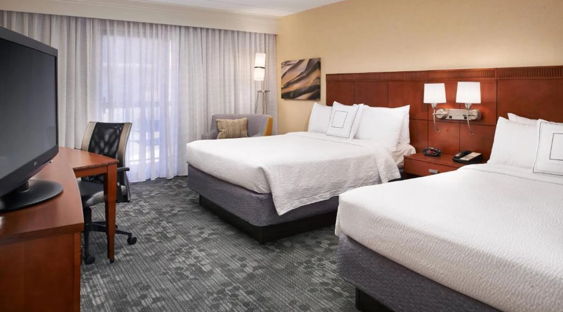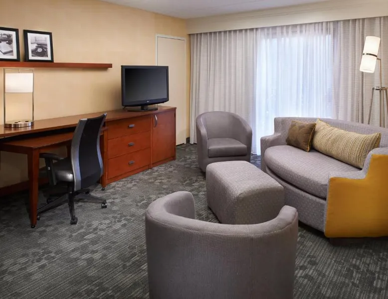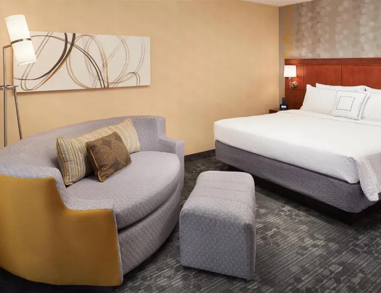 Comfortable Accommodations: Courtyard Chicago Deerfield in Deerfield offers spacious rooms with air-conditioning, private bathrooms, and modern amenities. Each room includes a work desk, sofa bed, and free WiFi, ensuring a pleasant stay. Dining and Leisure: Guests can enjoy an American breakfast, dinner at the family-friendly restaurant, and relax at the bar. The hotel features a sun terrace, garden, indoor swimming pool, and fitness room, providing ample leisure options. Convenient Location: Located 16 mi from Chicago O'Hare International Airport, the hotel is close to attractions such as Chicago Botanic Garden (3.7 mi) and Ravinia Pavilion (4.3 mi). Free on-site private parking and a 24-hour front desk enhance the guest experience. Boasting free Wi-Fi and a TV with cable channels, this room is equipped tea and coffee-making facilities. Complimentary bottled water is provided. Please note that the room rate is based on 4 guests. Maximum occupancy is 4 guests (see Hotel Policies).