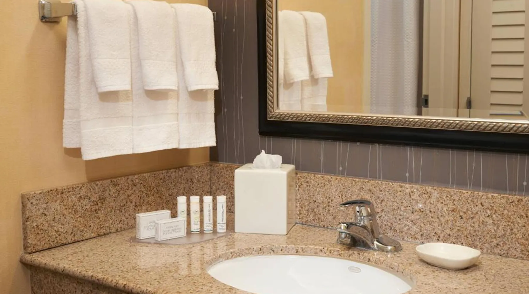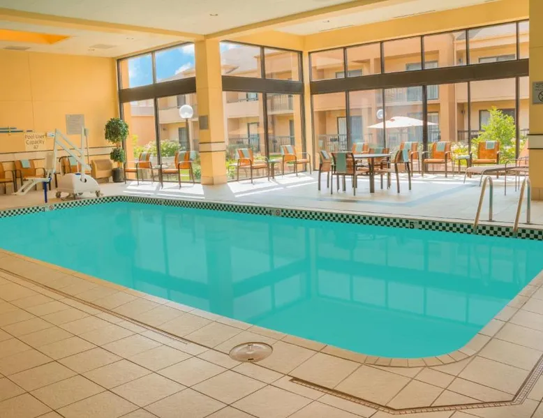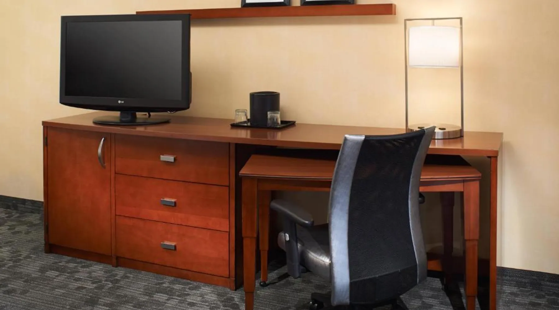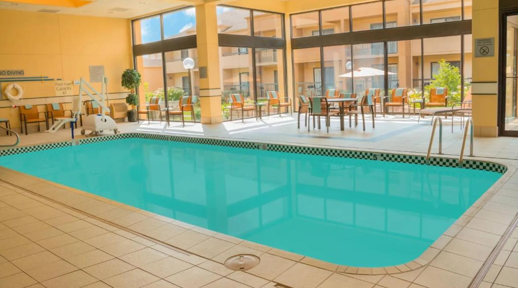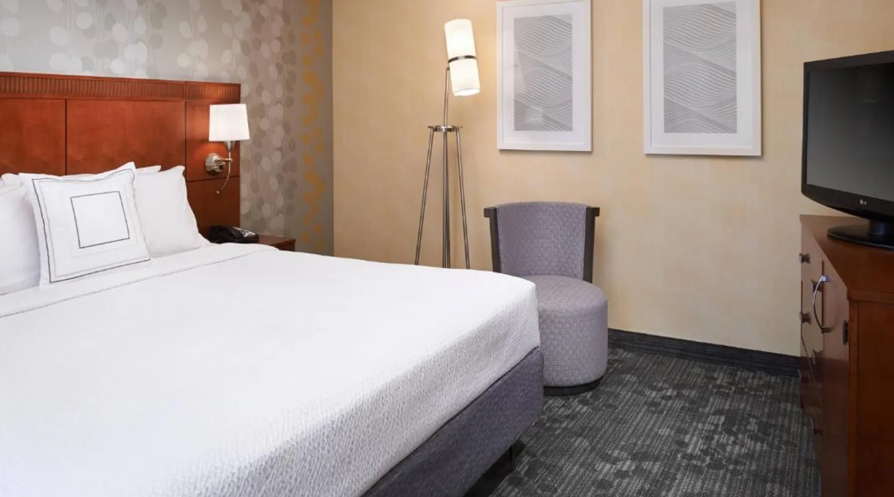 Comfortable Accommodations: Courtyard Chicago Deerfield in Deerfield offers spacious rooms with air-conditioning, private bathrooms, and modern amenities. Each room includes a work desk, sofa bed, and free WiFi, ensuring a pleasant stay. Dining and Leisure: Guests can enjoy an American breakfast, dinner at the family-friendly restaurant, and relax at the bar. The hotel features a sun terrace, garden, indoor swimming pool, and fitness room, providing ample leisure options. Convenient Location: Located 16 mi from Chicago O'Hare International Airport, the hotel is close to attractions such as Chicago Botanic Garden (3.7 mi) and Ravinia Pavilion (4.3 mi). Free on-site private parking and a 24-hour front desk enhance the guest experience. Boasting free Wi-Fi and a TV with cable channels, this room is equipped tea and coffee-making facilities. Complimentary bottled water is provided. Please note that the room rate is based on 4 guests. Maximum occupancy is 4 guests (see Hotel Policies).