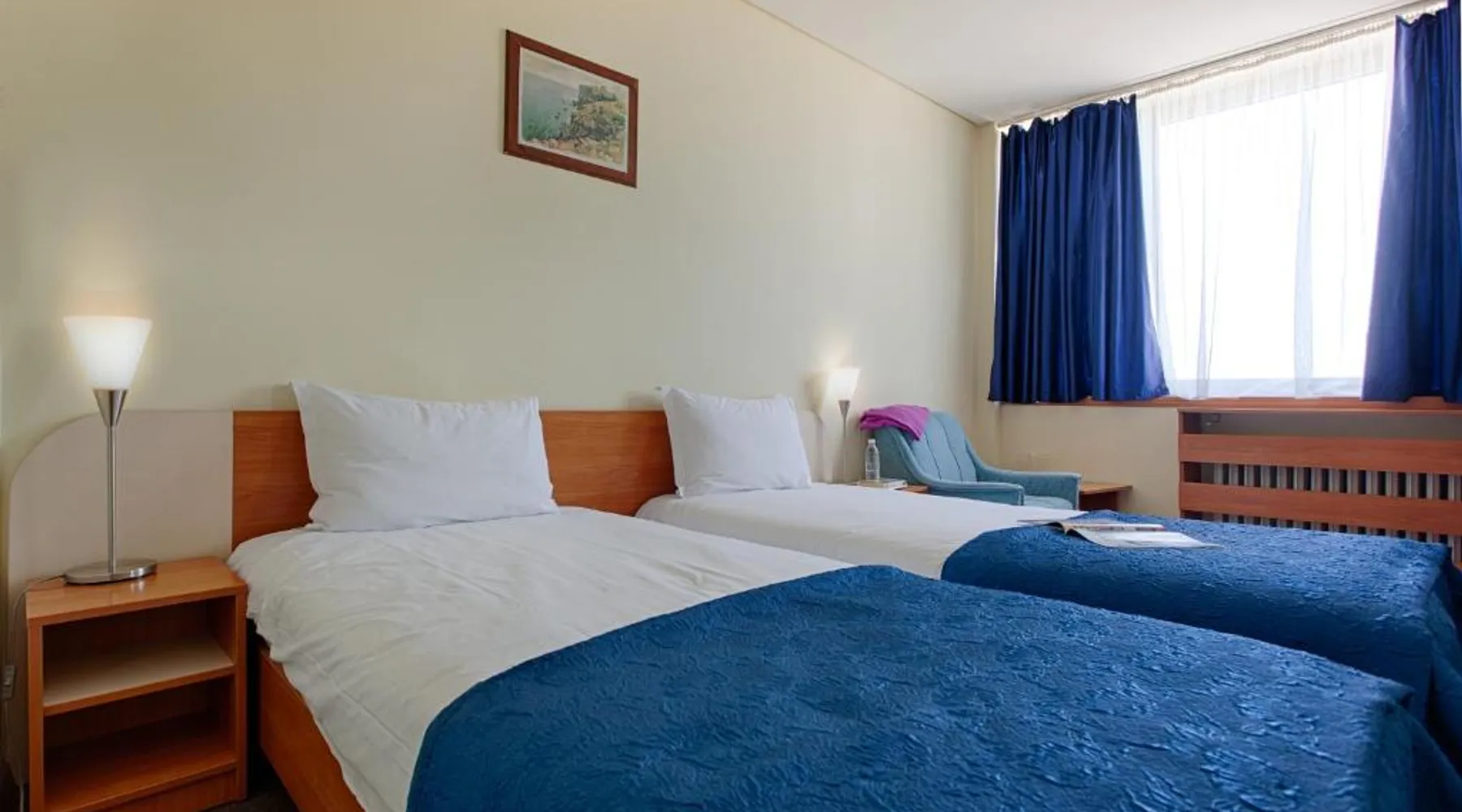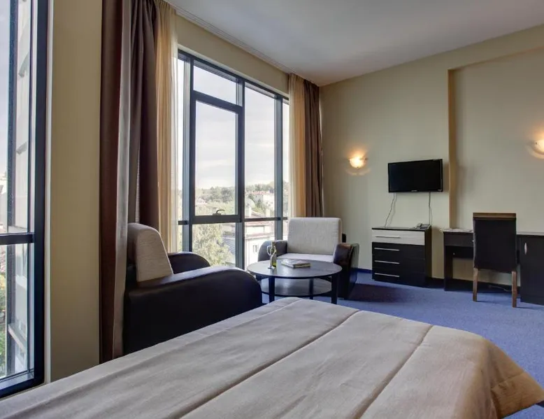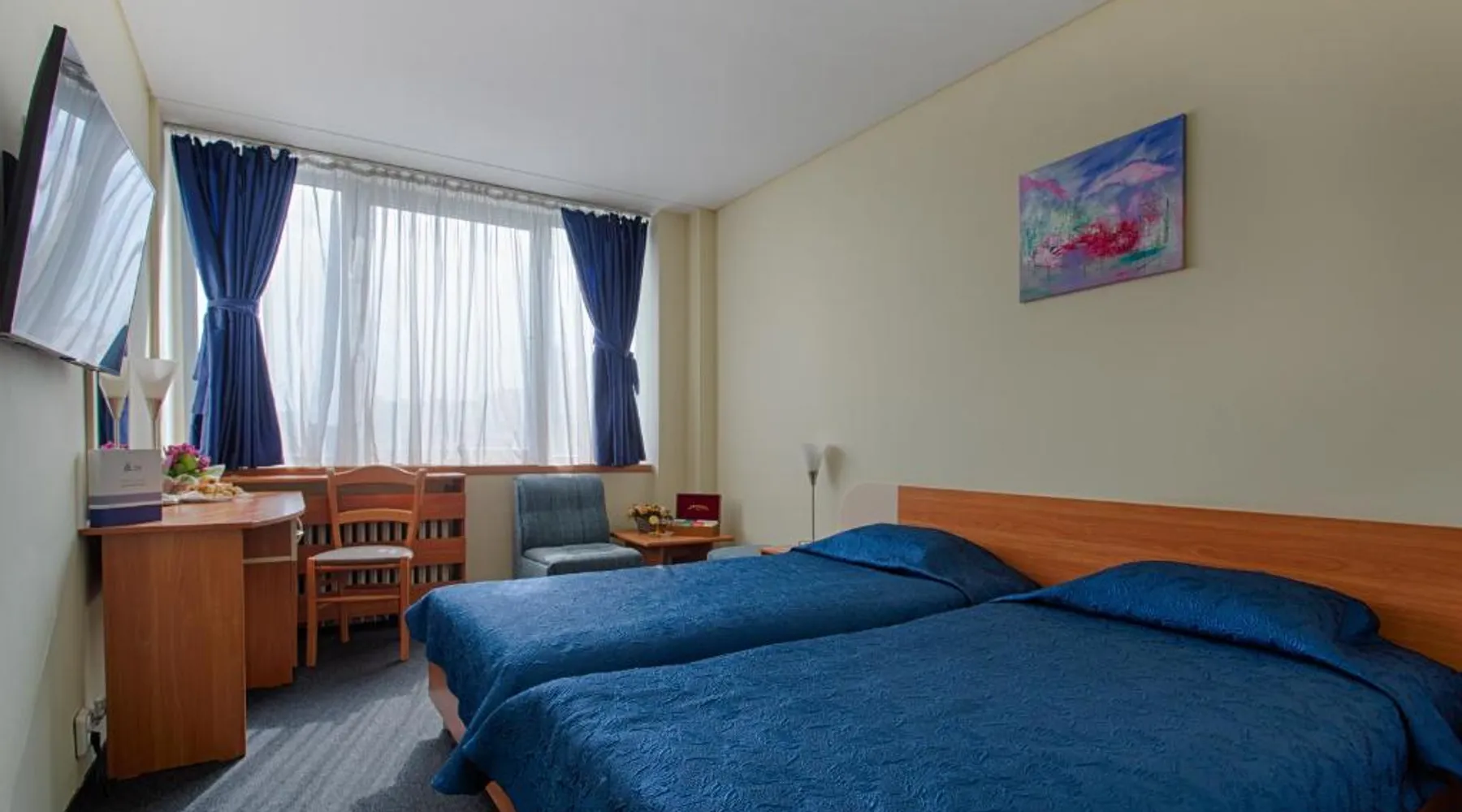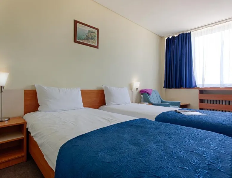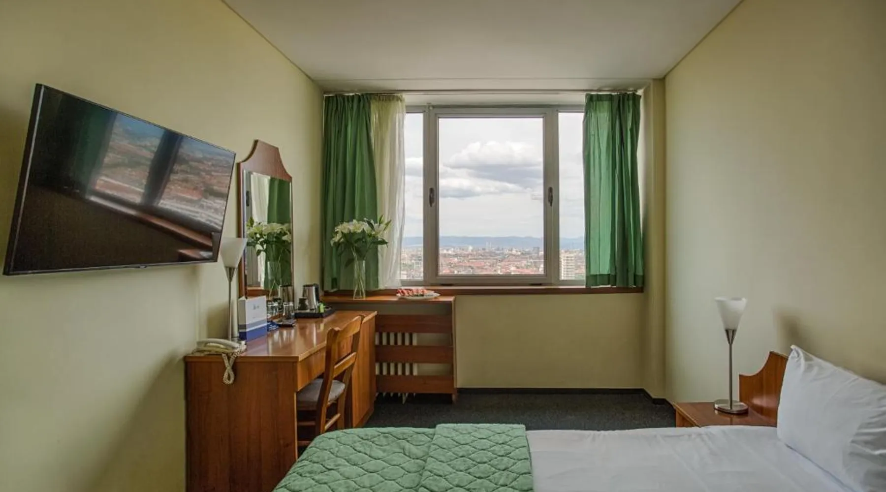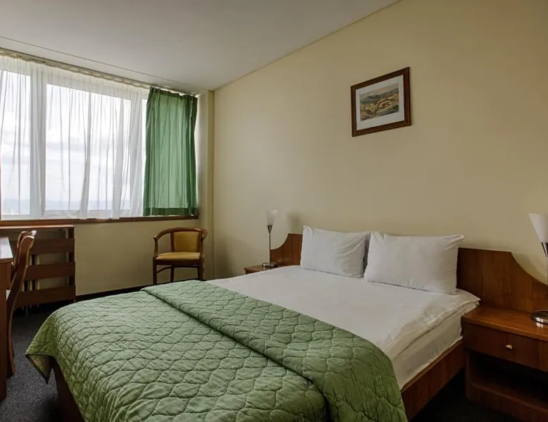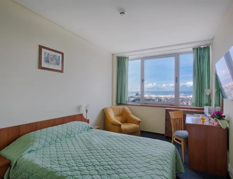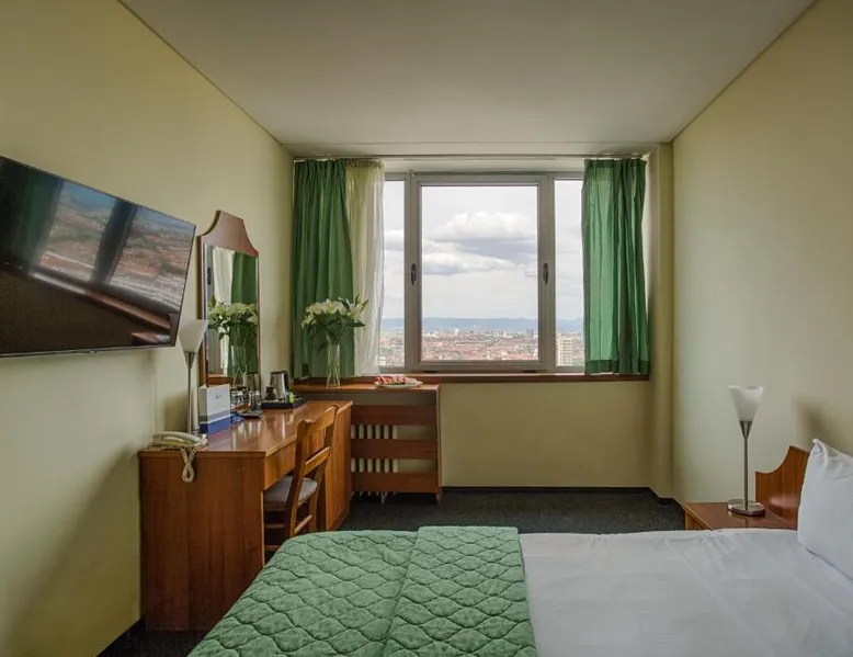 Located opposite the City Center Sofia shopping center, Hotel Hemus provides elegant rooms with mini-bars at a surcharge, cable TV and free internet access. Each of the rooms features individually-controlled air conditioning. The elegantly decorated restaurant serves international cuisine and local dishes. An on-site casino and a night club, as well as conference rooms are provided in the 2 buildings of the Hemus Hotel. Parking in the guarded garage parking is possible for an additional charge at the Hemus Hotel Sofia. The European Union Metro Station is located next to the hotel. Hotel Hemus is within easy walking distance to the National Palace of Culture and Alexander Nevski Cathedral. The popular Vitosha Boulevard with many shopping possibilities is 2297 feet away. This double room has a cable TV. Please note that some units are with 2 adjacent single beds and some are with 1 double bed.