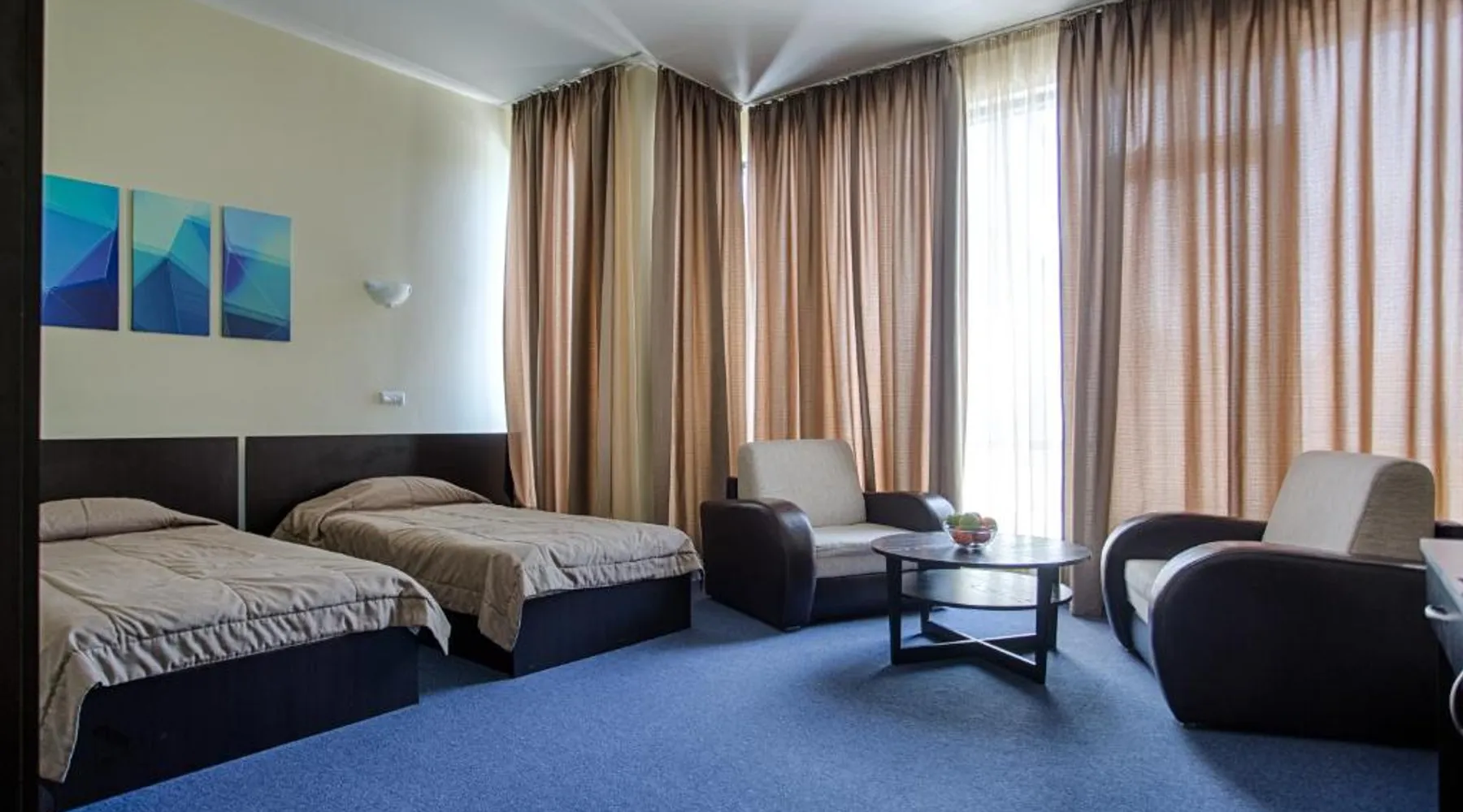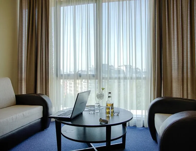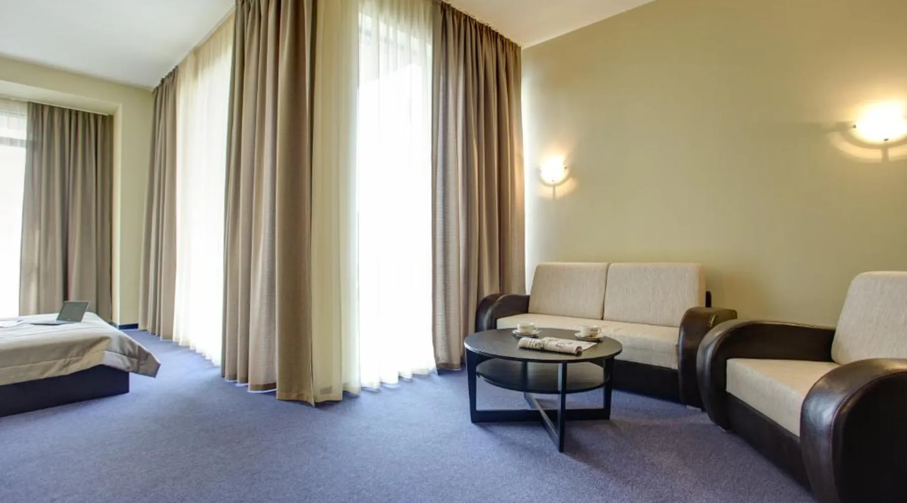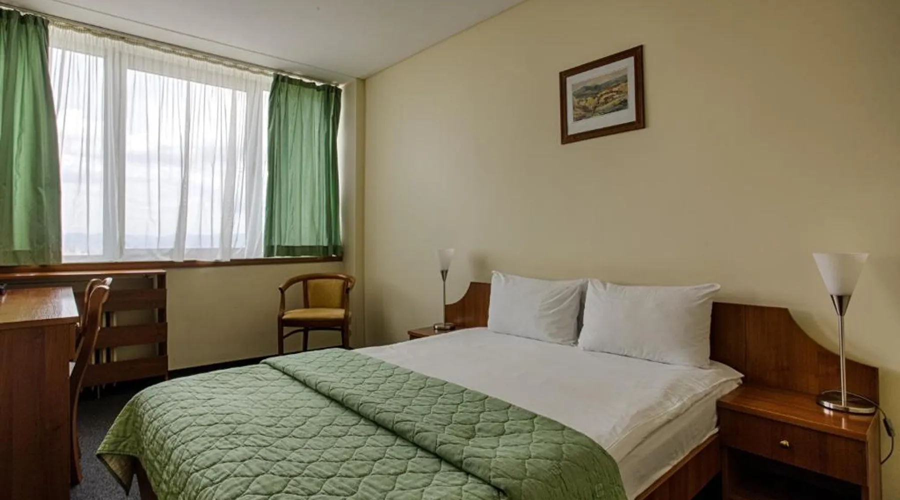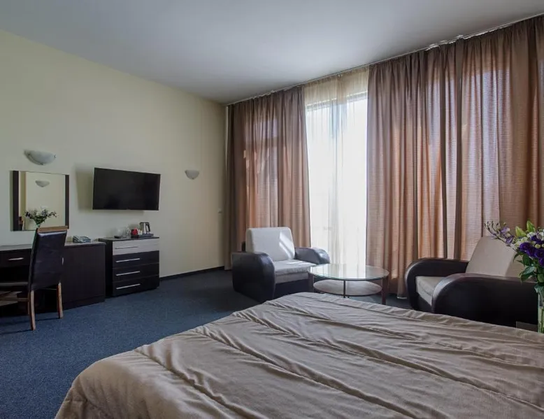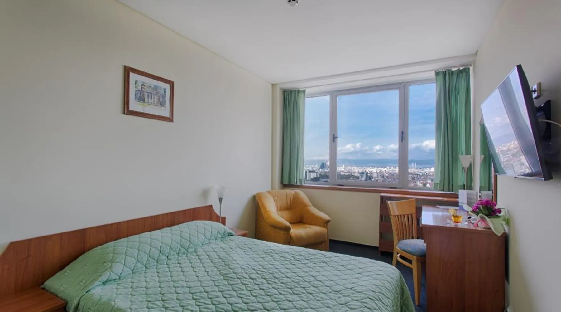 Located opposite the City Center Sofia shopping center, Hotel Hemus provides elegant rooms with mini-bars at a surcharge, cable TV and free internet access. Each of the rooms features individually-controlled air conditioning. The elegantly decorated restaurant serves international cuisine and local dishes. An on-site casino and a night club, as well as conference rooms are provided in the 2 buildings of the Hemus Hotel. Parking in the guarded garage parking is possible for an additional charge at the Hemus Hotel Sofia. The European Union Metro Station is located next to the hotel. Hotel Hemus is within easy walking distance to the National Palace of Culture and Alexander Nevski Cathedral. The popular Vitosha Boulevard with many shopping possibilities is 2297 feet away. This double room has a cable TV. Please note that some units are with 2 adjacent single beds and some are with 1 double bed.