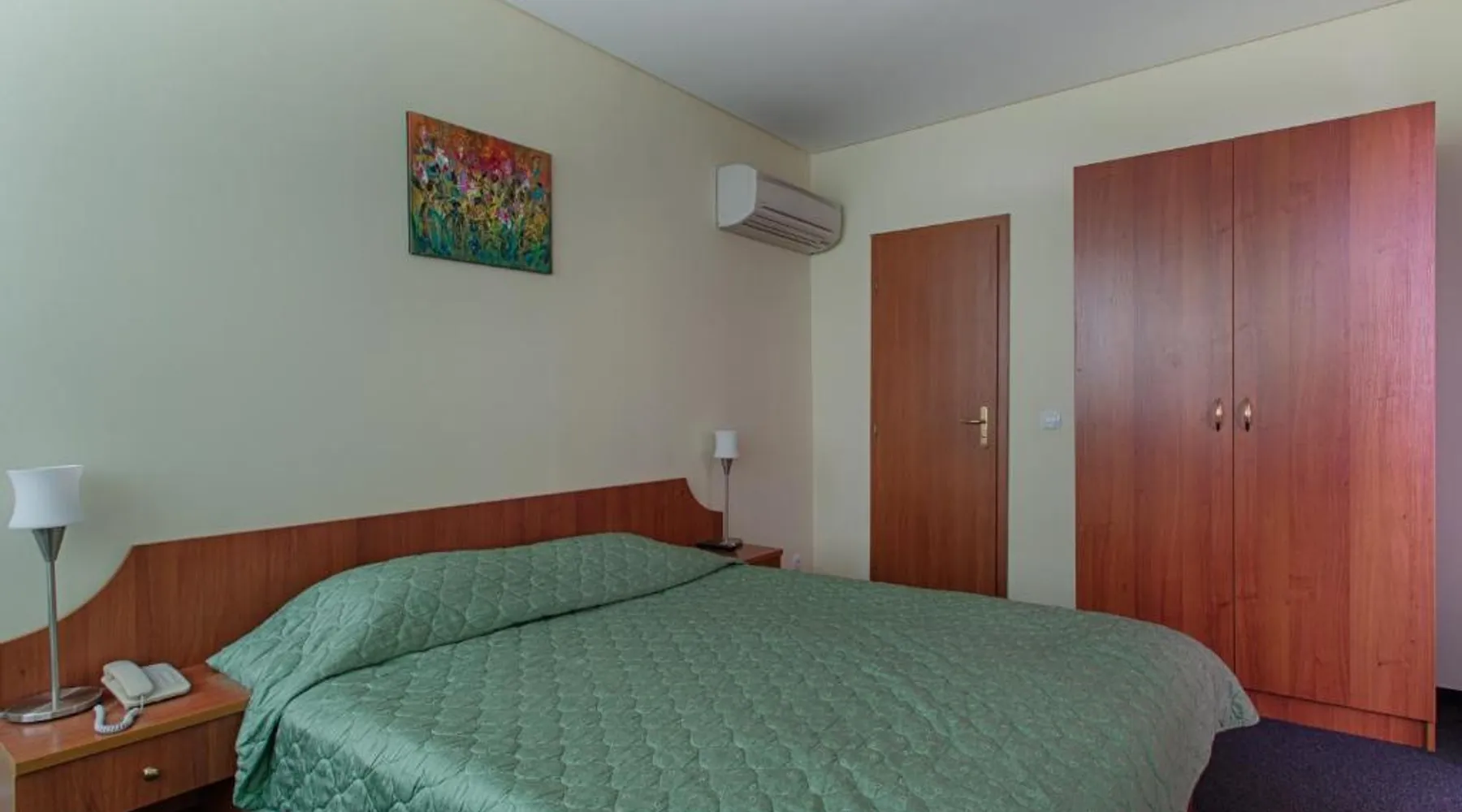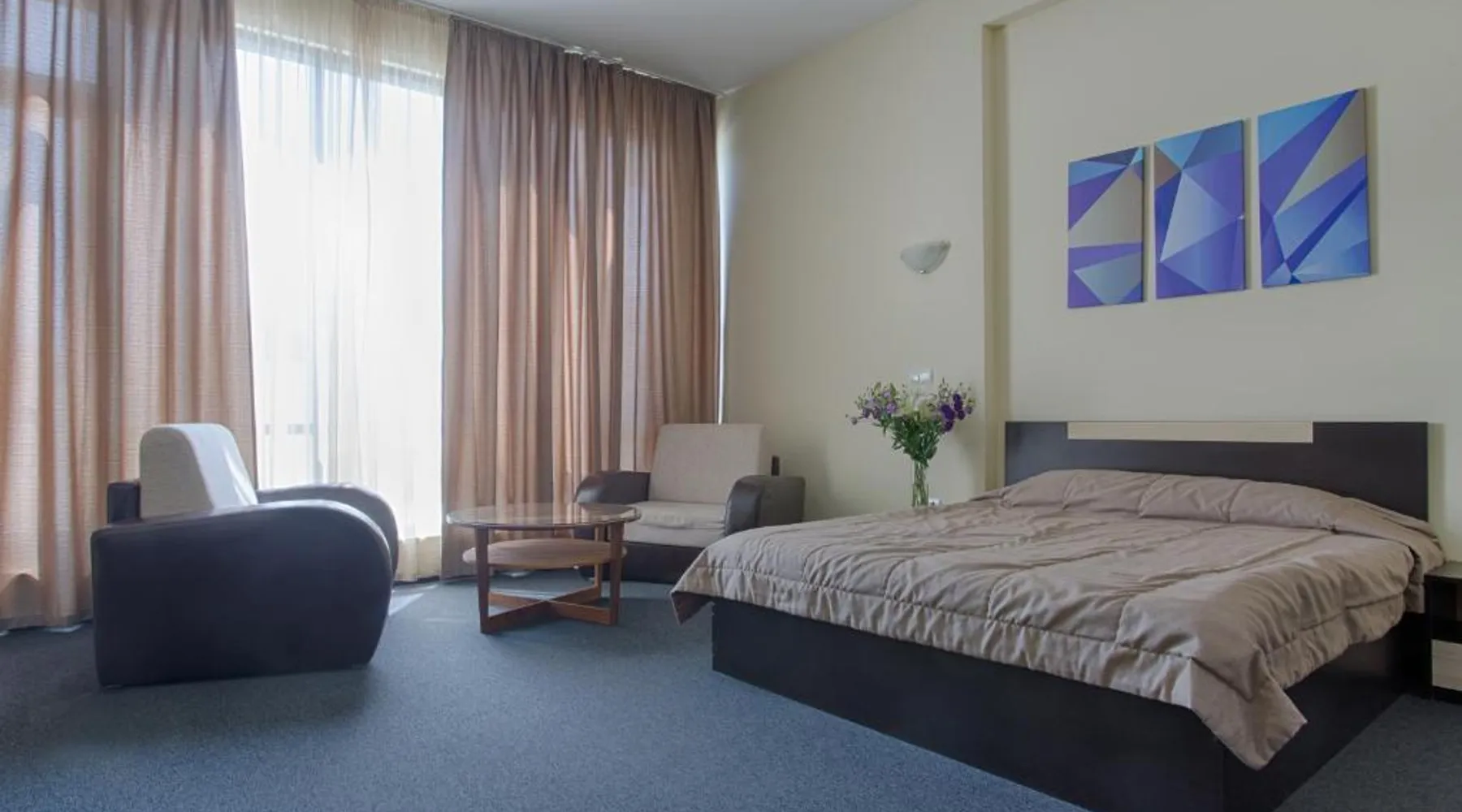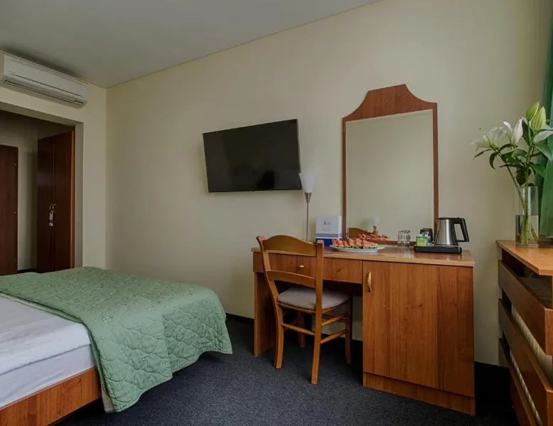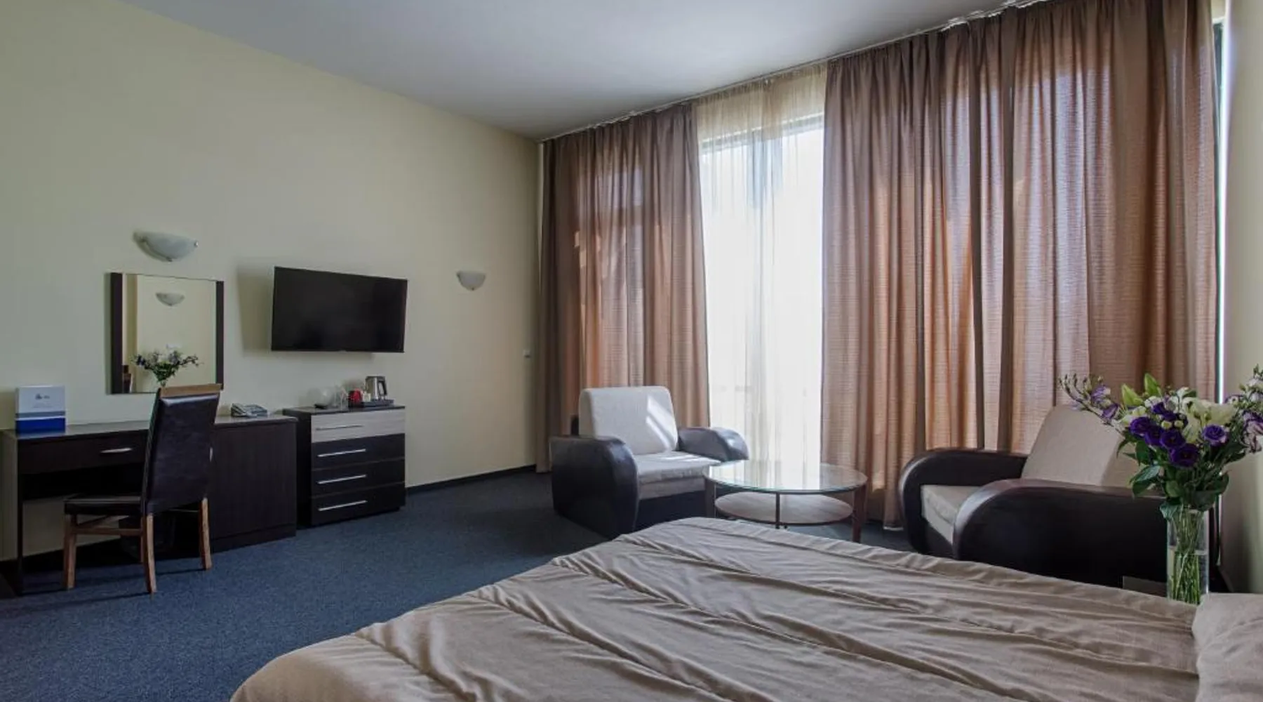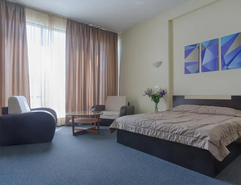 Located opposite the City Center Sofia shopping center, Hotel Hemus provides elegant rooms with mini-bars at a surcharge, cable TV and free internet access. Each of the rooms features individually-controlled air conditioning. The elegantly decorated restaurant serves international cuisine and local dishes. An on-site casino and a night club, as well as conference rooms are provided in the 2 buildings of the Hemus Hotel. Parking in the guarded garage parking is possible for an additional charge at the Hemus Hotel Sofia. The European Union Metro Station is located next to the hotel. Hotel Hemus is within easy walking distance to the National Palace of Culture and Alexander Nevski Cathedral. The popular Vitosha Boulevard with many shopping possibilities is 2297 feet away. This double room has a cable TV. Please note that some units are with 2 adjacent single beds and some are with 1 double bed.
