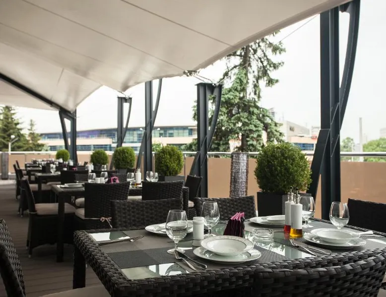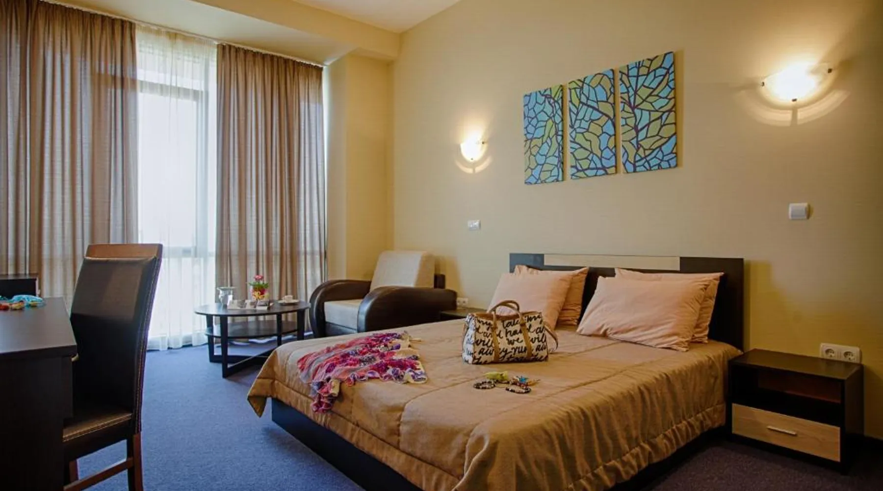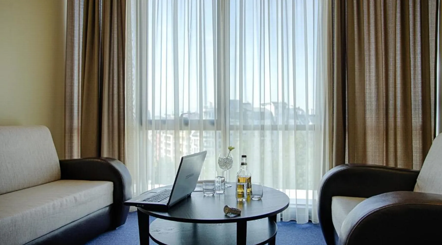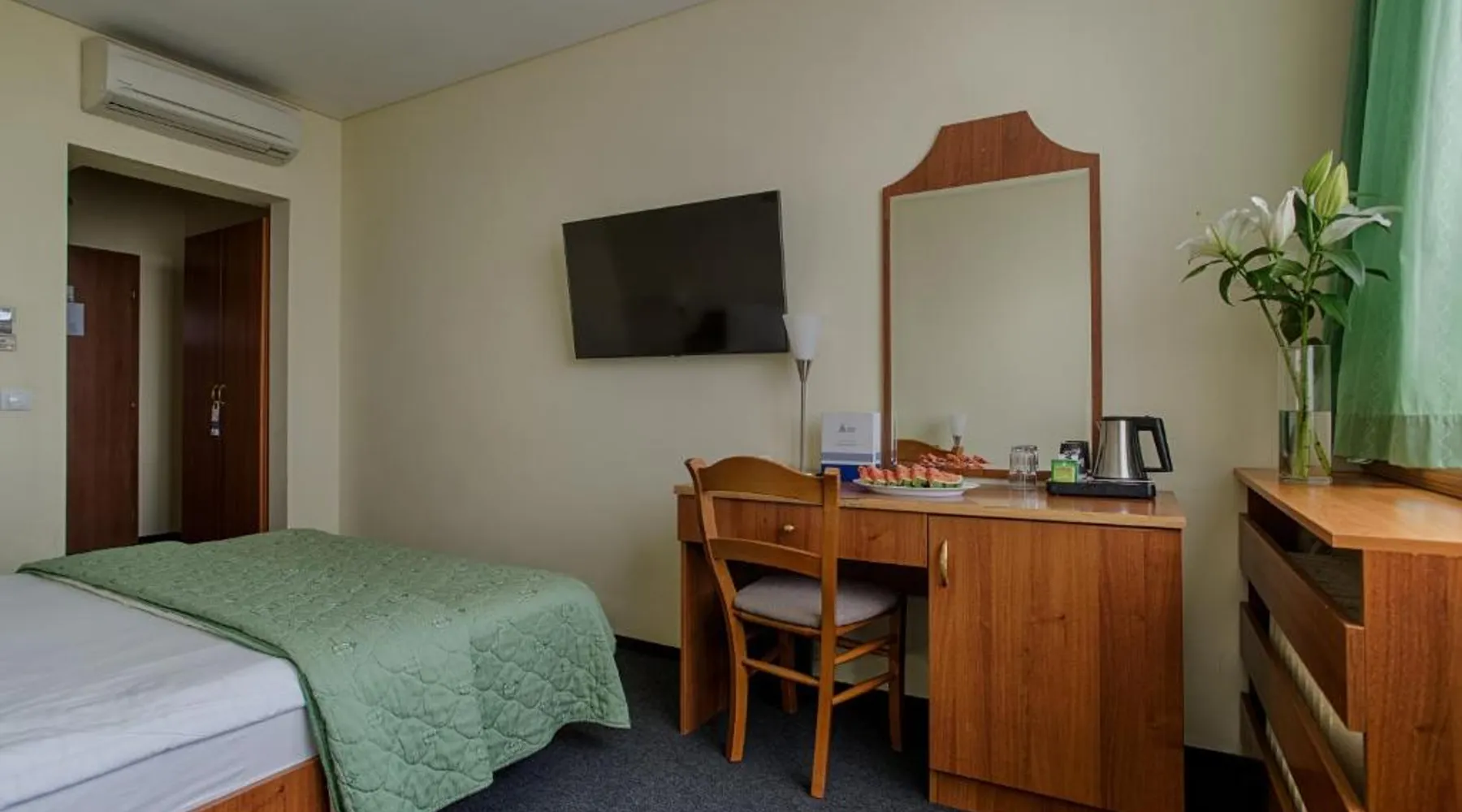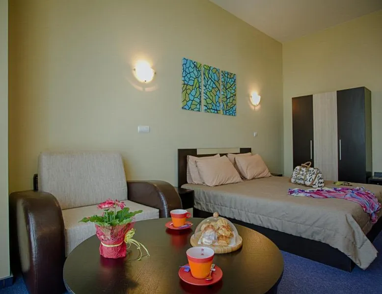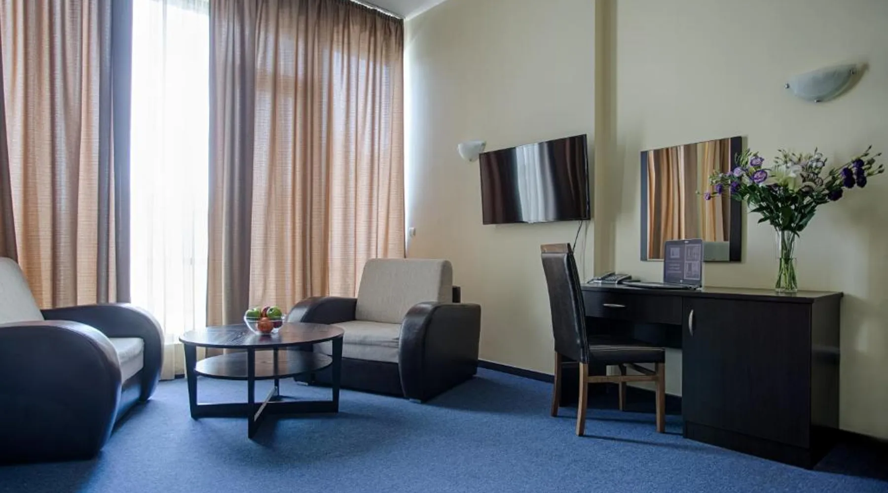 Located opposite the City Center Sofia shopping center, Hotel Hemus provides elegant rooms with mini-bars at a surcharge, cable TV and free internet access. Each of the rooms features individually-controlled air conditioning. The elegantly decorated restaurant serves international cuisine and local dishes. An on-site casino and a night club, as well as conference rooms are provided in the 2 buildings of the Hemus Hotel. Parking in the guarded garage parking is possible for an additional charge at the Hemus Hotel Sofia. The European Union Metro Station is located next to the hotel. Hotel Hemus is within easy walking distance to the National Palace of Culture and Alexander Nevski Cathedral. The popular Vitosha Boulevard with many shopping possibilities is 2297 feet away. This double room has a cable TV. Please note that some units are with 2 adjacent single beds and some are with 1 double bed.