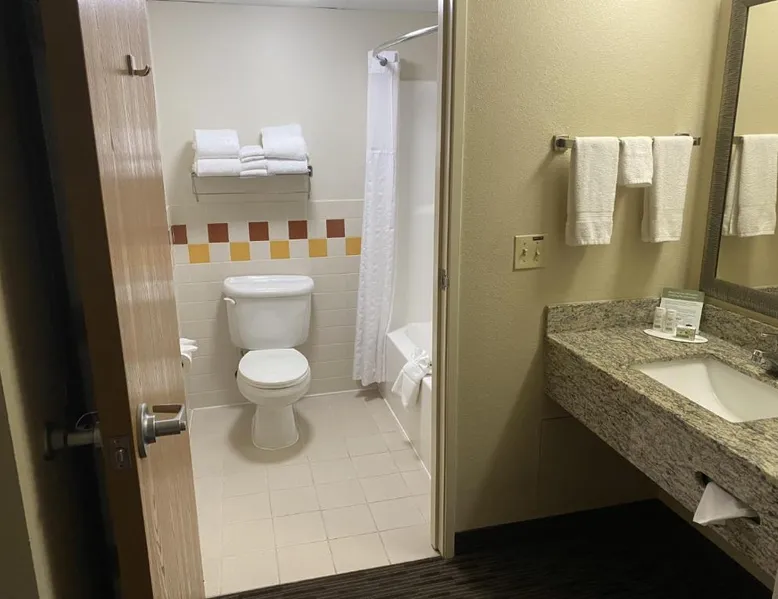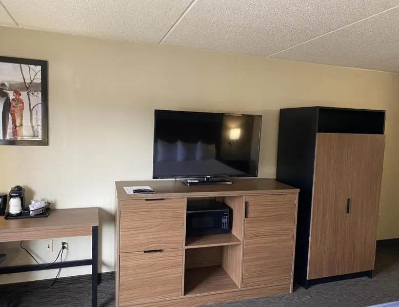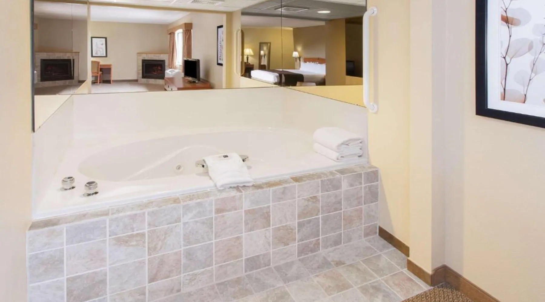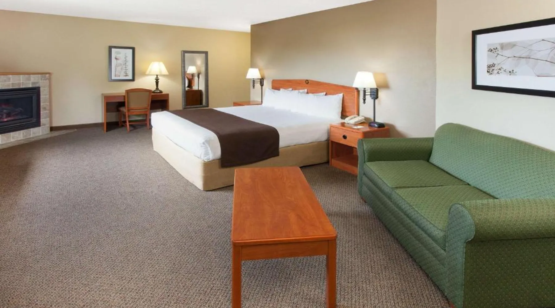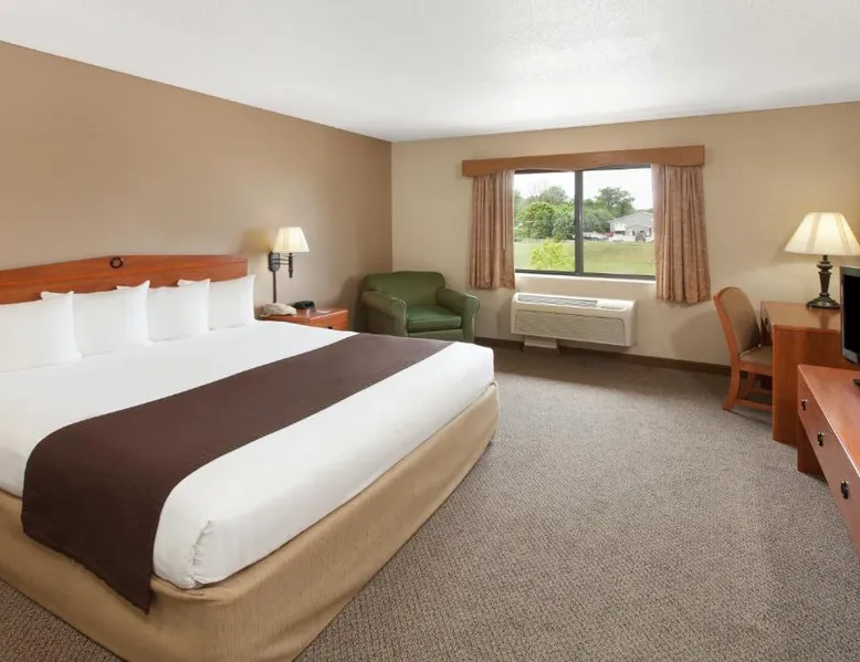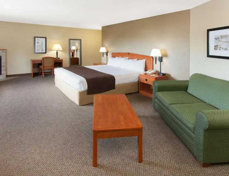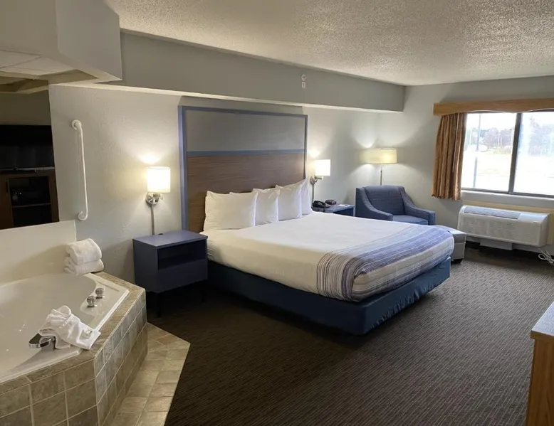 Comfortable Rooms: AmericInn by Wyndham Greenville offers comfortable rooms with air-conditioning, private bathrooms, and free WiFi. Each room includes a work desk, TV, and soundproofing for a pleasant stay. Leisure Facilities: Guests can enjoy a sauna, indoor swimming pool, and hot tub. Additional amenities include a lounge, 24-hour front desk, and free on-site private parking. Convenient Location: Located 34 mi from Gerald R. Ford International Airport, the hotel is near attractions such as Pando Winter Sports Park (16 mi) and Grattan Raceway Park (11 mi). Free continental breakfast is provided by the property. The air-conditioned suite has 1 bedroom and 1 bathroom with a bath or a shower. The unit has 1 bed.