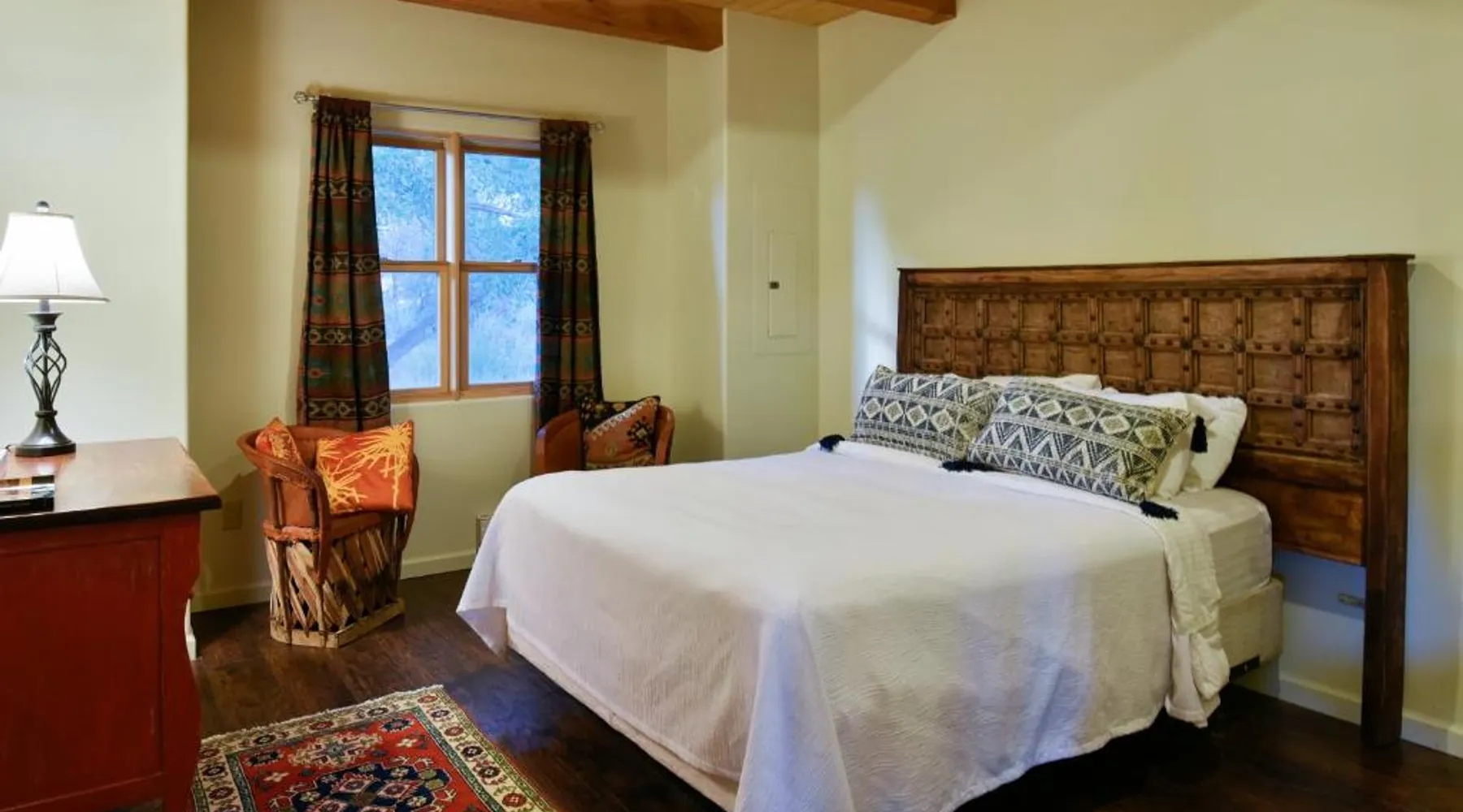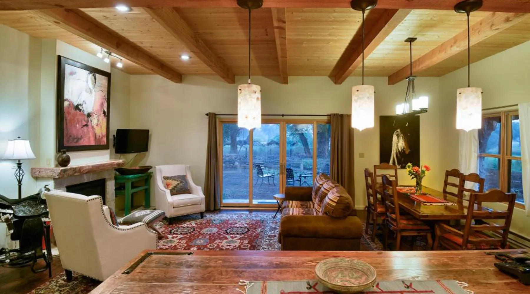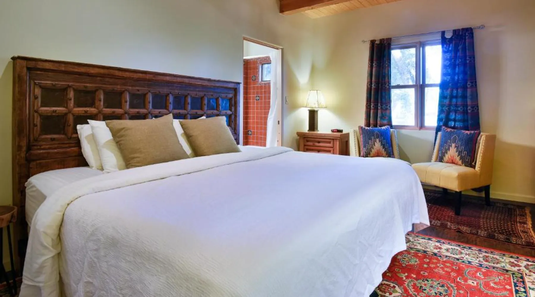 Offering an onsite restaurant, this Abiquiu inn is adjacent to the Georgia O’Keeffe Studio. Each room includes free Wi-Fi. Each air-conditioned room features a seating area, a fireplace and a cable TV at Abiquiu Inn. An private bathroom is also offered. Café Abiquiu serves Southwestern cuisine daily at Abiquiu Inn. A courtyard with a fountain is available for guests to enjoy. A gift shop featuring local artists is also provided on site. Ghost Ranch is 20 minutes’ drive from Abiquiu Inn. Plaza Blanca is 4 miles from the hotel This air-conditioned room features a seating area, a fireplace and a cable TV. An private bathroom is also included.