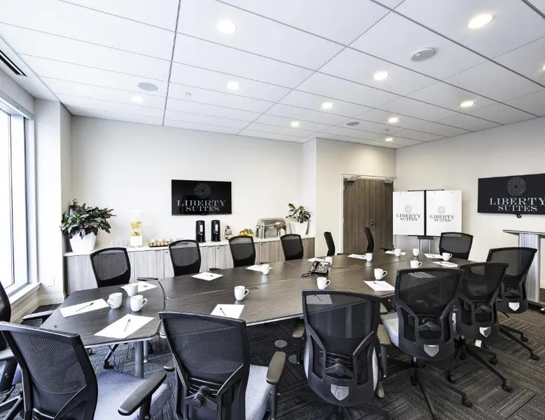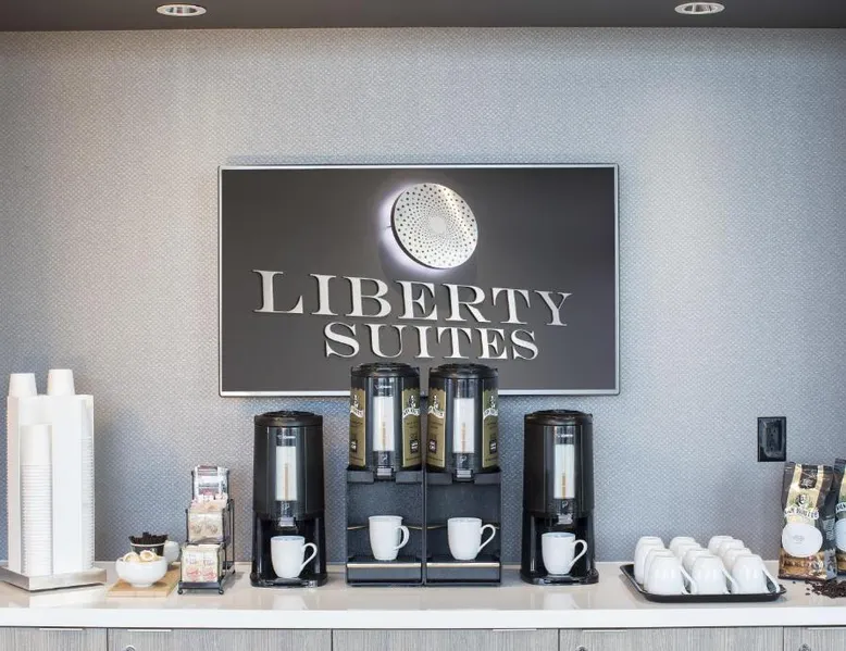 Liberty Suites is located in Thornhill, Ontario. Free WiFi access is available throughout. Each accommodations is modernly furnished. A cable TV and air conditioning are provided. The bathroom is stocked with a hairdryer and free toiletries. Guests can enjoy a complimentary hot and cold breakfast from 07:00 until 09:30 each morning. At Liberty Suites you will find a 24-hour front desk and a meeting room. Underground parking is available at the property. Toronto Pearson International Airport is 14 mi away. This corner suite offers a balcony, a separate bedroom and a seating area. Modernly furnished, it is equipped with free WiFi and a flat-screen TV with premium cable channels. A hairdryer and free toiletries can be found in the bathroom.
