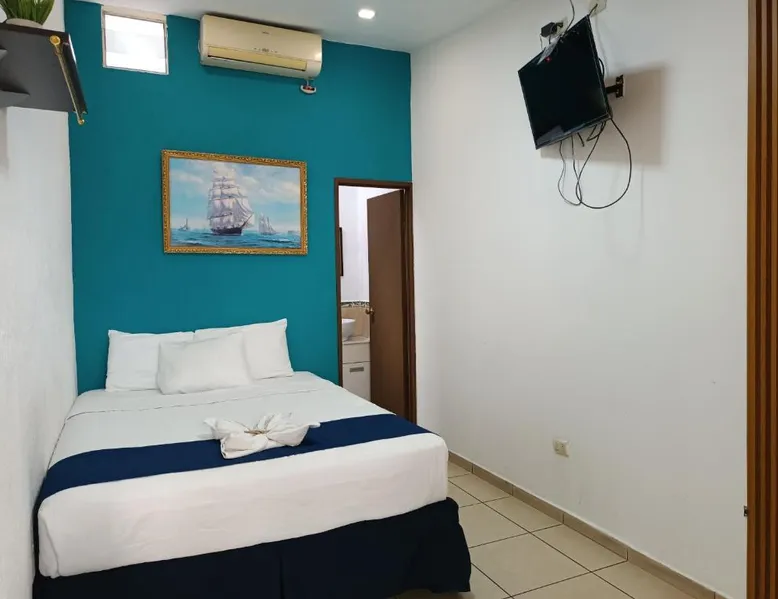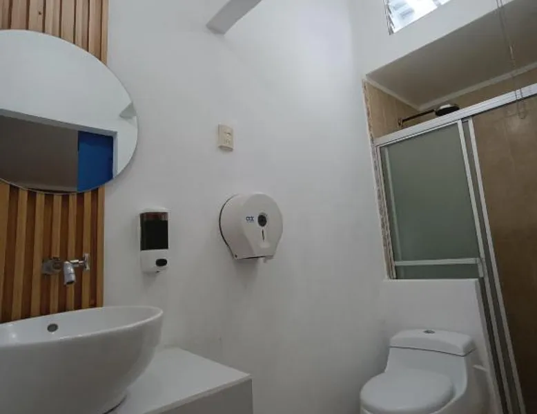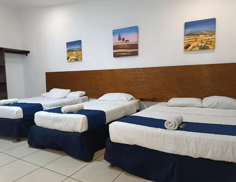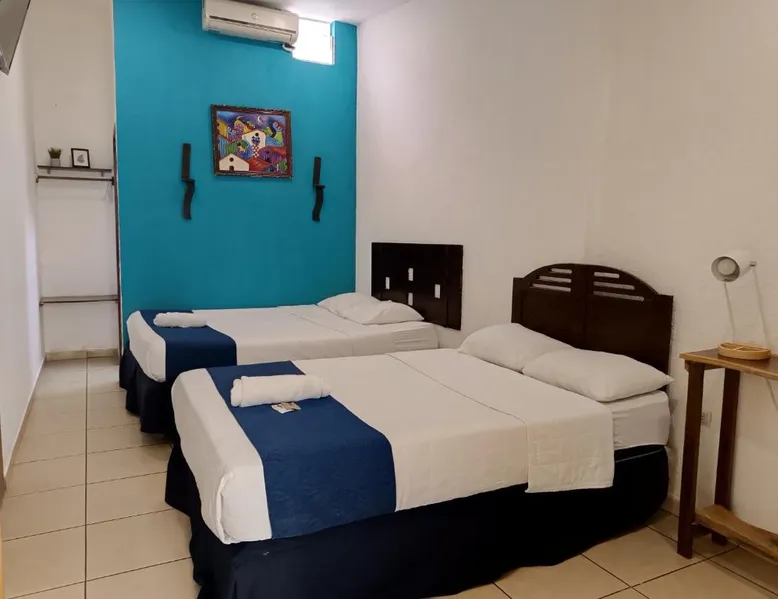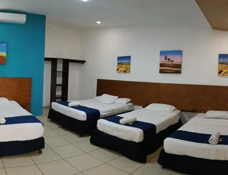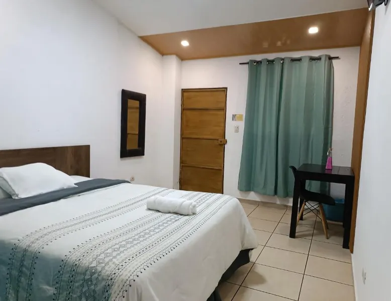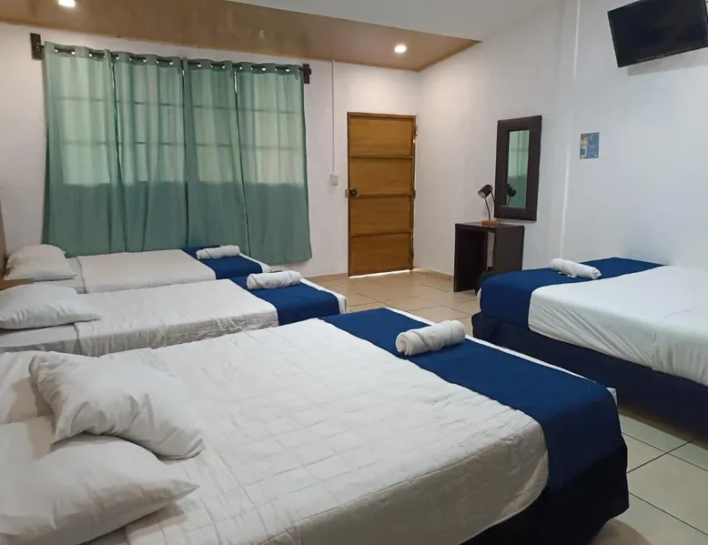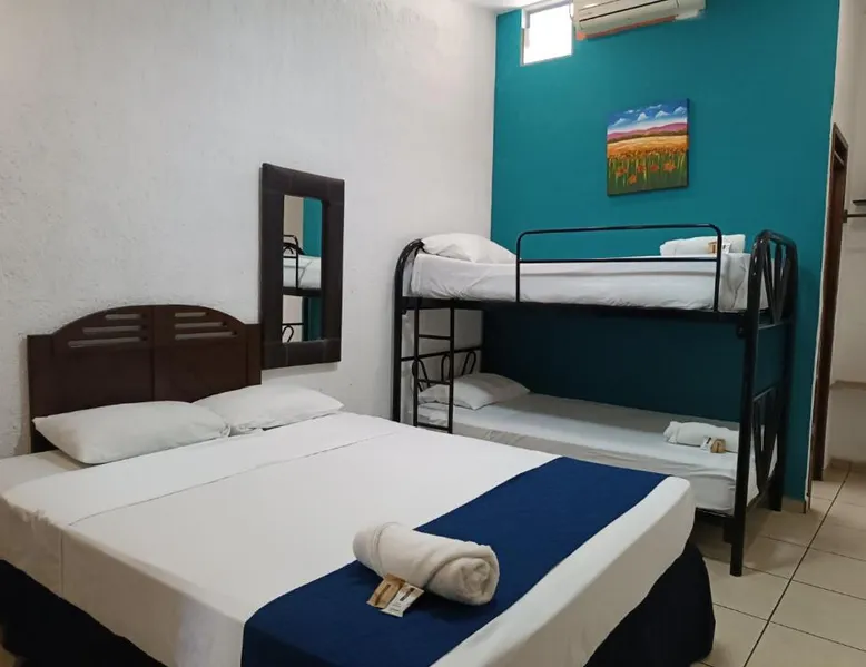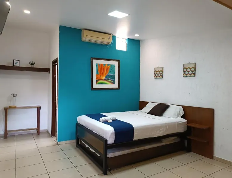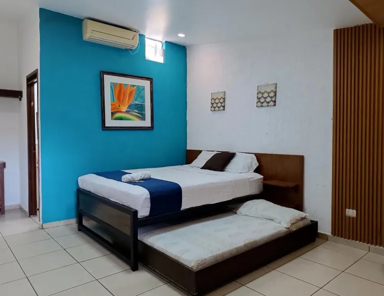 Comfortable Accommodations: El Patio de Don Moncho in Santa Tecla offers family rooms with air-conditioning, private bathrooms, and free toiletries. Each room includes a TV and private entrance, ensuring a pleasant stay. Dining and Leisure: Guests can enjoy a sun terrace, garden, and a family-friendly restaurant serving Latin American cuisine. The on-site bar provides a relaxing atmosphere, while free WiFi is available throughout the property. Convenient Location: Located 30 mi from El Salvador International Airport and 6.2 mi from San Salvador Bicentennial Park, the hotel offers easy access to local attractions. Free on-site private parking and a car park are also available. Guest Services: The hotel provides a 24-hour front desk, paid shuttle service, lounge, public bath, and yoga and fitness classes. Additional amenities include a shared kitchen, picnic area, and games room. Offering free toiletries, this family room includes a private bathroom with a shower. This family room has air conditioning, a private entrance and a flat-screen TV. The unit has 4 beds.