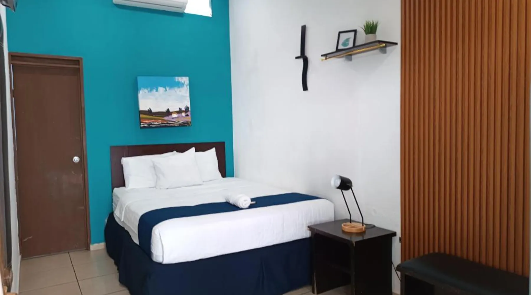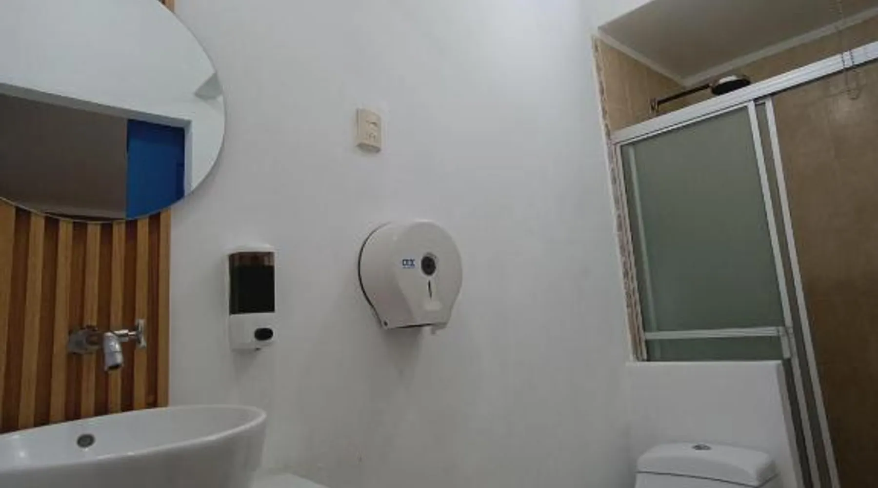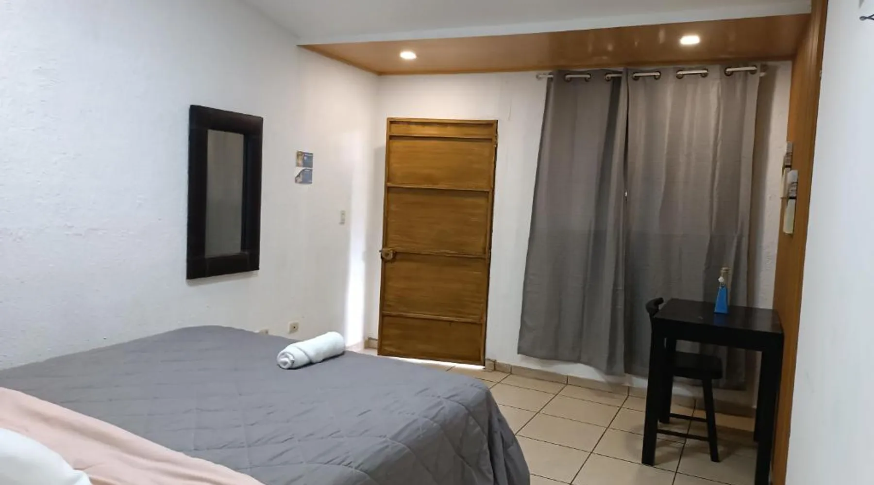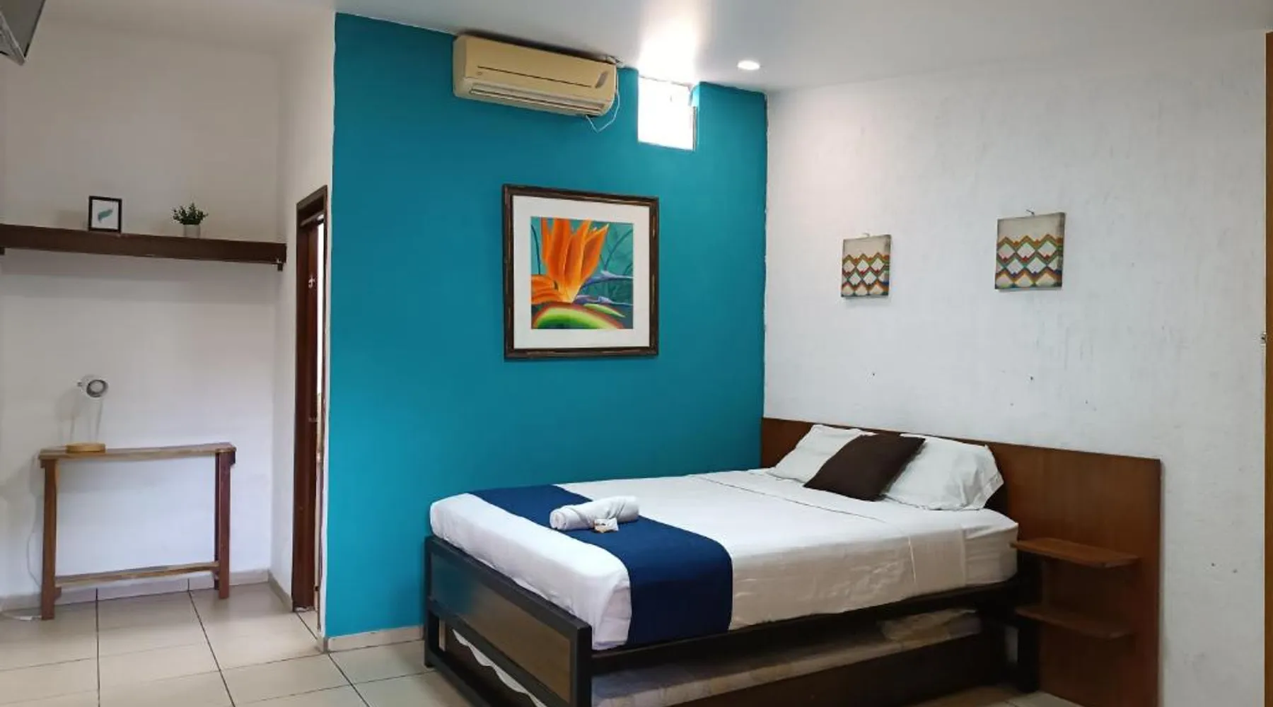 Comfortable Accommodations: El Patio de Don Moncho in Santa Tecla offers family rooms with air-conditioning, private bathrooms, and free toiletries. Each room includes a TV and private entrance, ensuring a pleasant stay. Dining and Leisure: Guests can enjoy a sun terrace, garden, and a family-friendly restaurant serving Latin American cuisine. The on-site bar provides a relaxing atmosphere, while free WiFi is available throughout the property. Convenient Location: Located 30 mi from El Salvador International Airport and 6.2 mi from San Salvador Bicentennial Park, the hotel offers easy access to local attractions. Free on-site private parking and a car park are also available. Guest Services: The hotel provides a 24-hour front desk, paid shuttle service, lounge, public bath, and yoga and fitness classes. Additional amenities include a shared kitchen, picnic area, and games room. Offering free toiletries, this family room includes a private bathroom with a shower. This family room has air conditioning, a private entrance and a flat-screen TV. The unit has 4 beds.