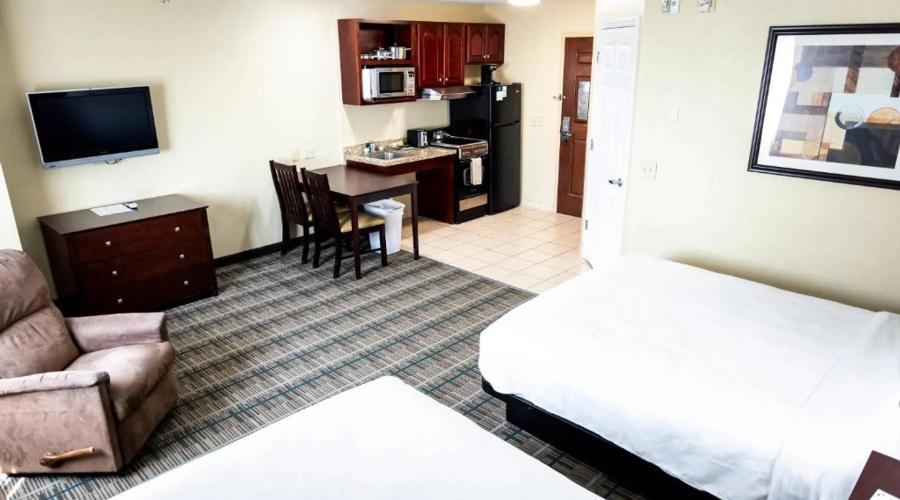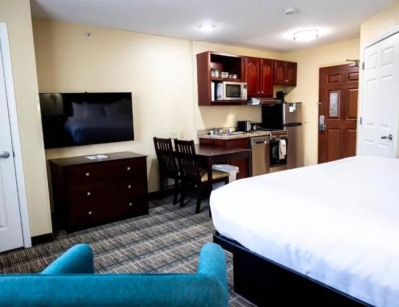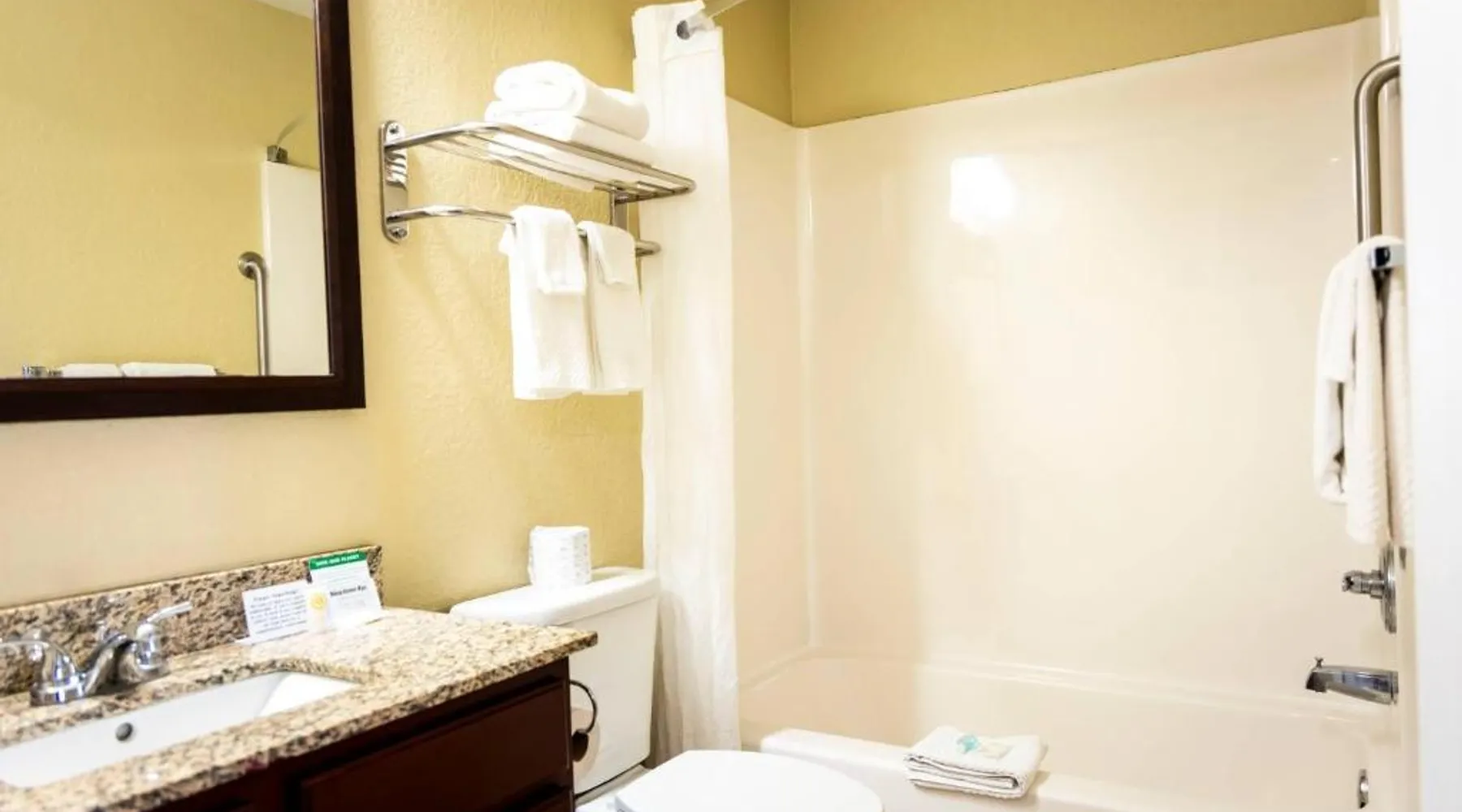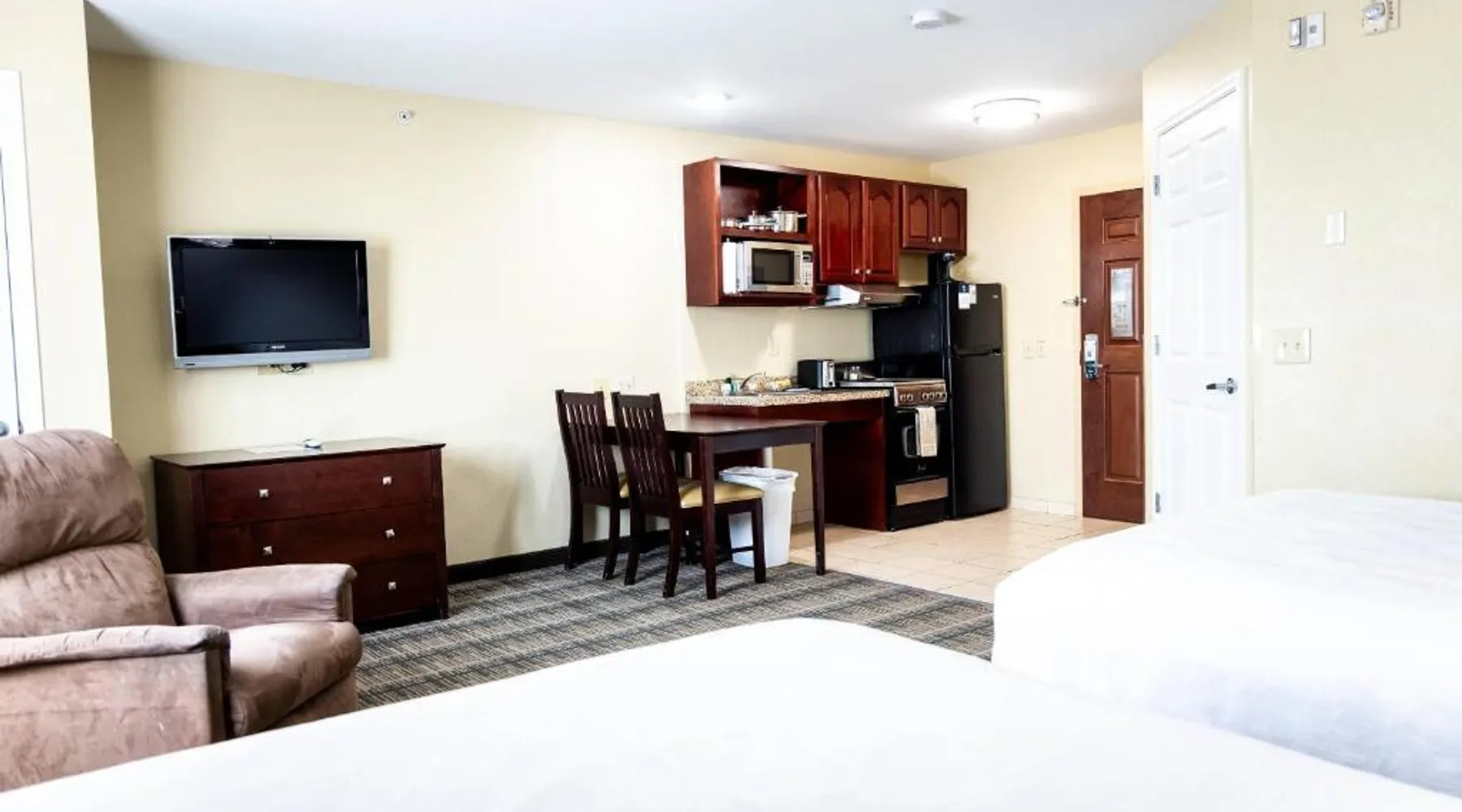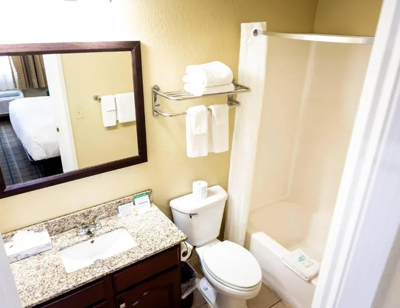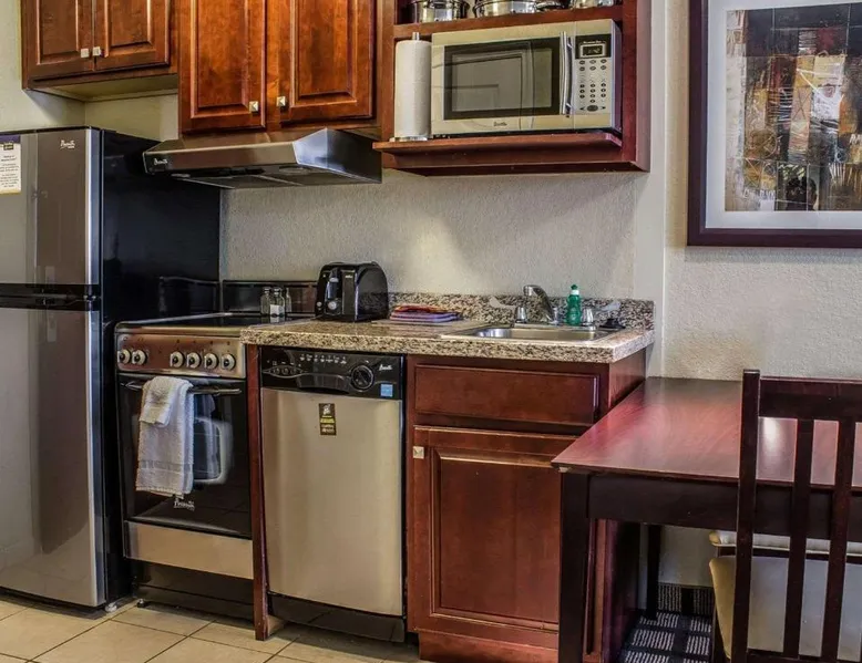 Comfortable Accommodations: MainStay Suites Coralville in Coralville offers comfortable rooms with air-conditioning, private bathrooms, and fully equipped kitchens. Each room includes a dining table, refrigerator, microwave, and free toiletries. Modern Facilities: Guests enjoy a fitness center, free WiFi, lounge, and outdoor seating area. Additional amenities include a minimarket, business area, and barbecue facilities. Free on-site private parking is available. Delicious Breakfast: A complimentary American buffet breakfast is served daily, featuring warm dishes, fresh pastries, fruits, and juice. Convenient Location: Located 17 mi from The Eastern Iowa Airport, the hotel is near attractions such as Kinnick Stadium (5 mi) and Paramount Theater (22 mi). Cycling activities are available. Offering free toiletries, this suite includes a private bathroom with a bath, a shower and a hairdryer. The well-equipped kitchen features a stovetop, a refrigerator, a dishwasher and kitchenware. The suite offers air conditioning, a tea and coffee maker, a sofa, a carpeted floor, as well as a flat-screen TV with satellite channels.