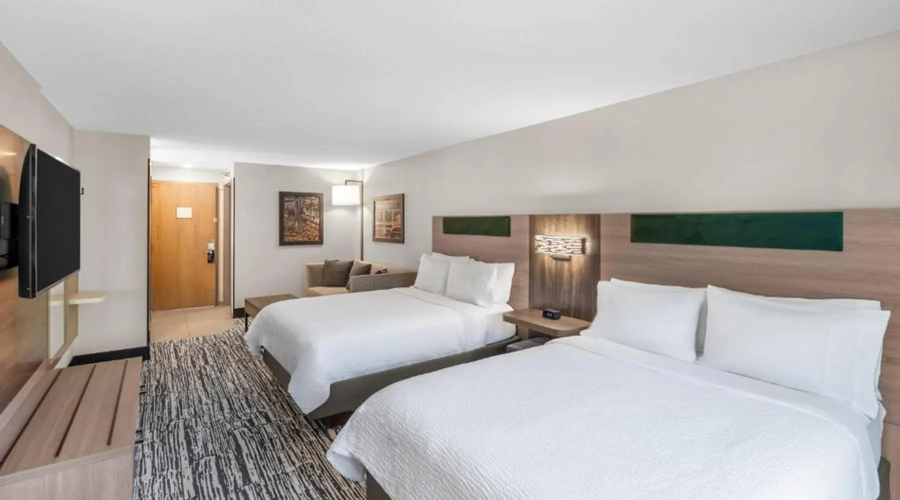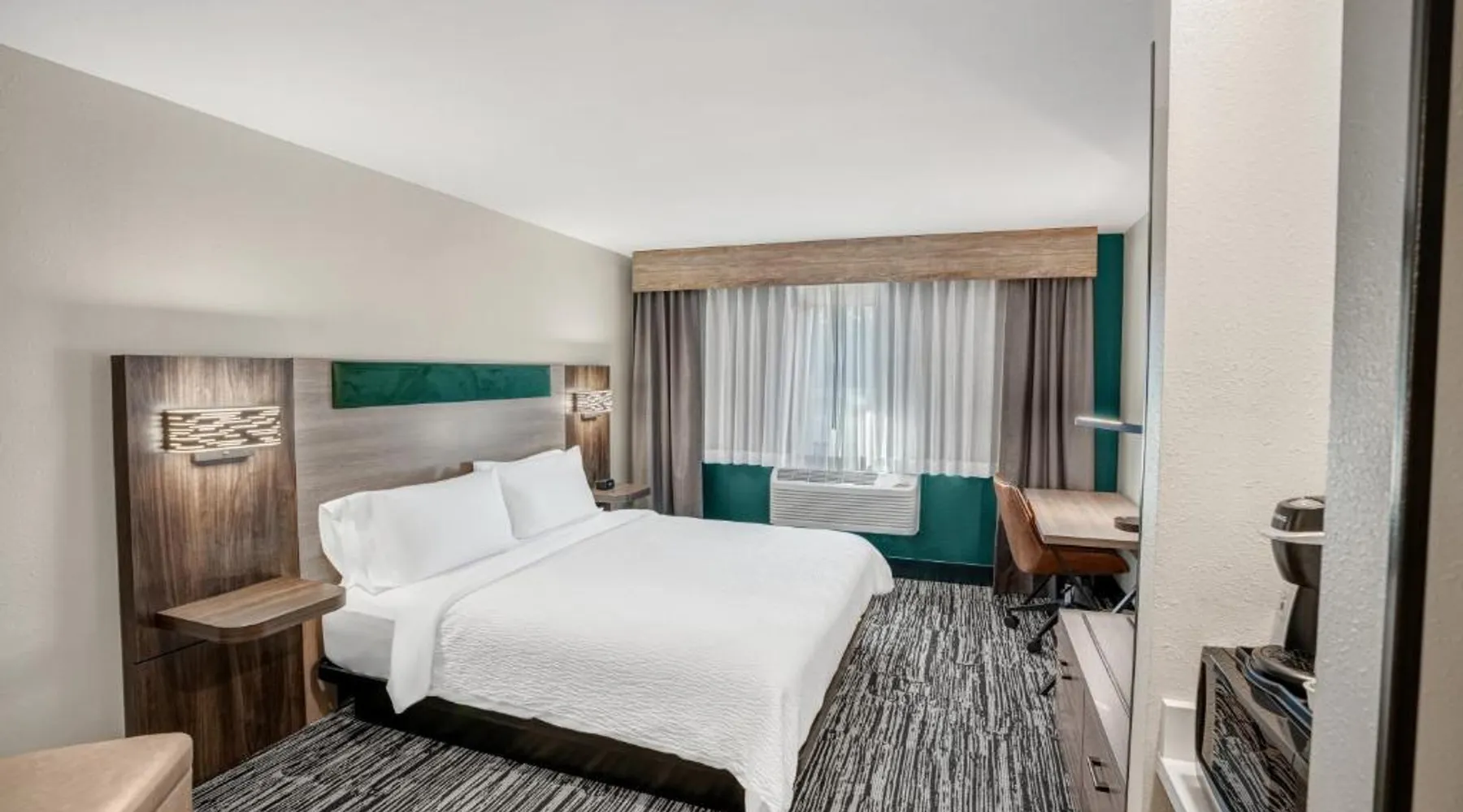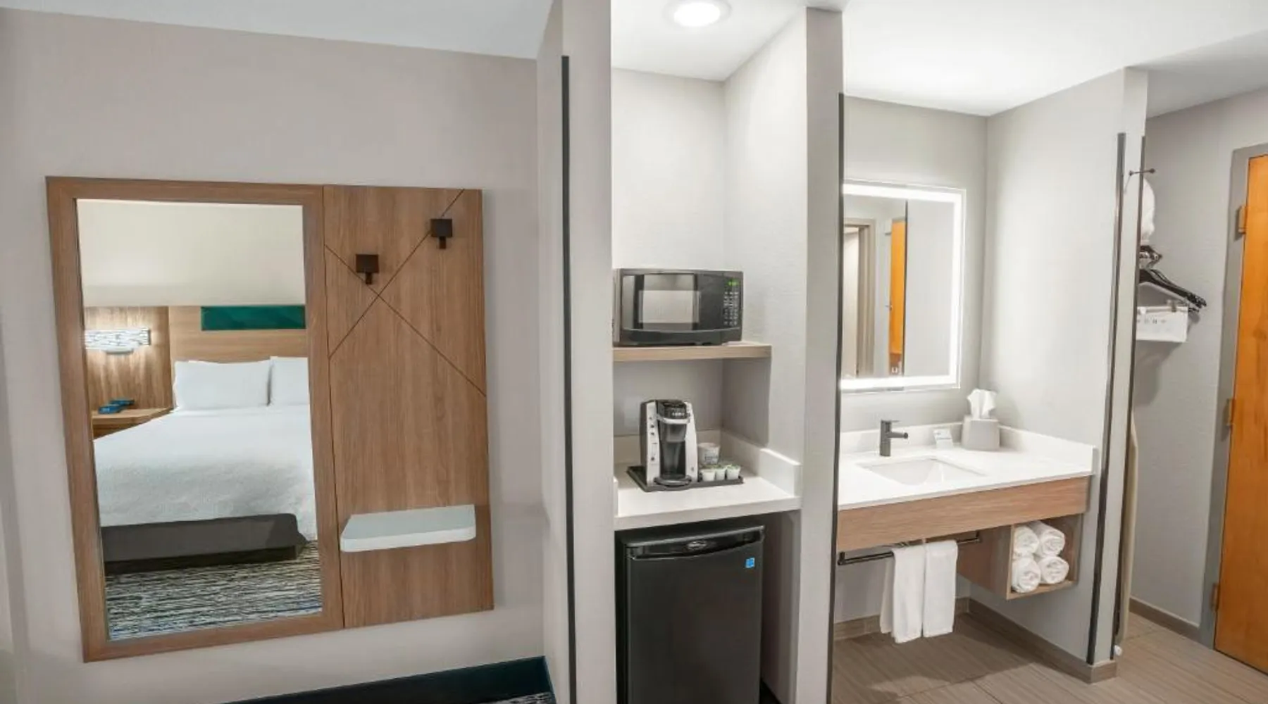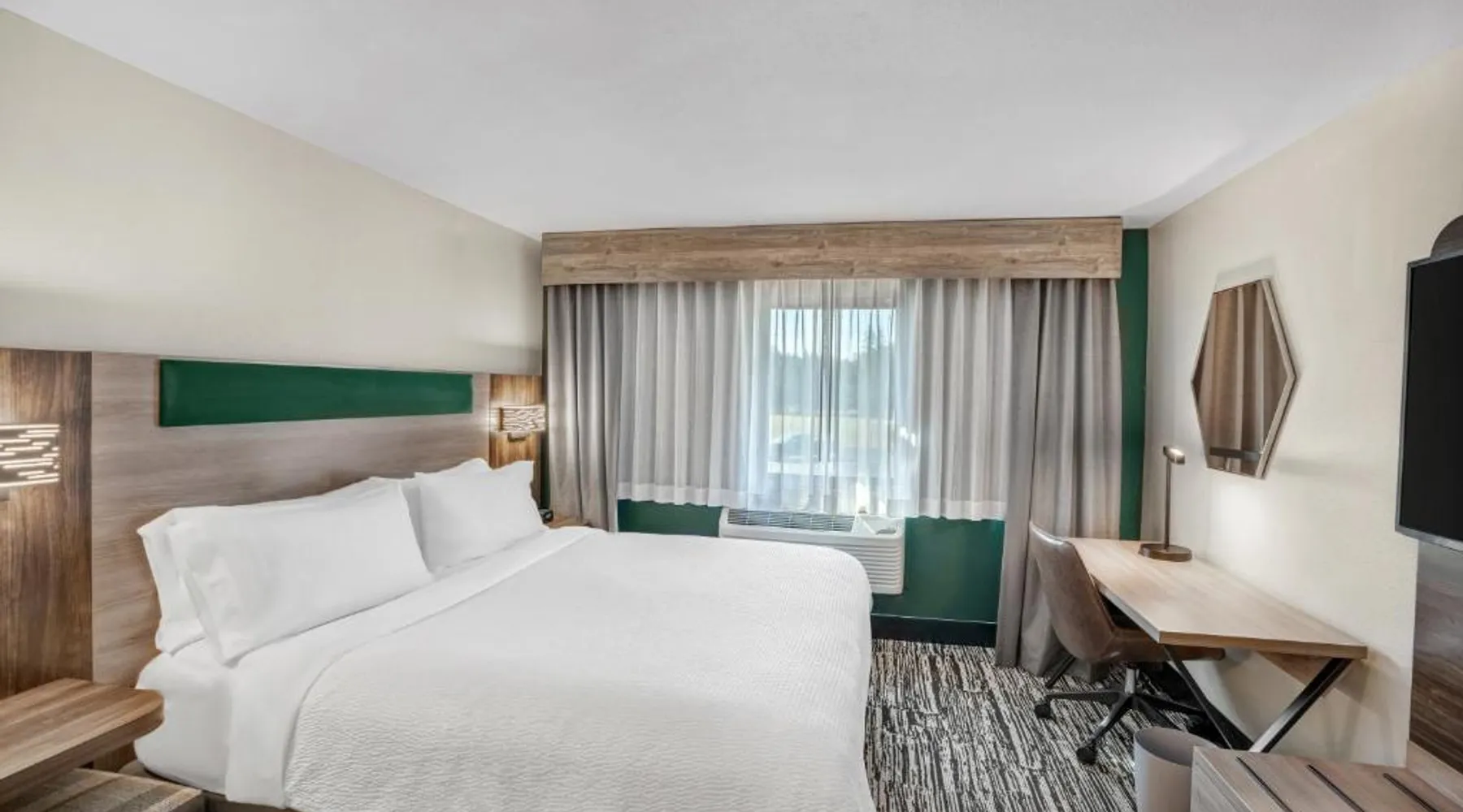 Comfortable Accommodations: Holiday Inn Express & Suites Hayward by IHG in Hayward offers air-conditioned rooms with private bathrooms, tea and coffee makers, and free toiletries. Each room includes a work desk, refrigerator, and TV. Leisure Facilities: Guests can enjoy a sauna, fitness center, sun terrace, and indoor swimming pool. Additional amenities include a hot tub, fitness room, and outdoor play area. Dining Options: A continental buffet breakfast is served daily, featuring fresh pastries and pancakes. The property also offers a minimarket and outdoor seating area. Convenient Location: Located less than 0.6 mi from the National Fresh Water Fishing Hall of Fame and 81 mi from Duluth International Airport. Highly rated for its breakfast, staff, and convenient location. The suite offers air conditioning, a tea and coffee maker, as well as a private bathroom boasting a walk-in shower and a hairdryer. The suite features a wardrobe, a sofa, a tiled floor, a carpeted floor and a flat-screen TV with cable channels. The unit has 1 bed.