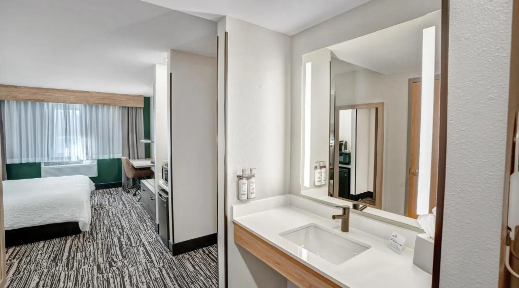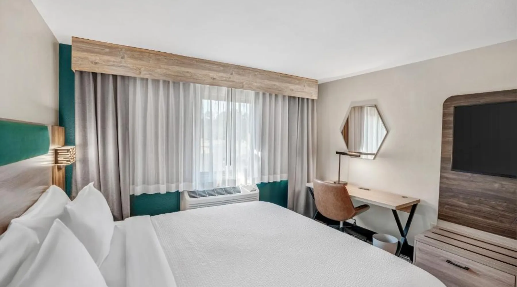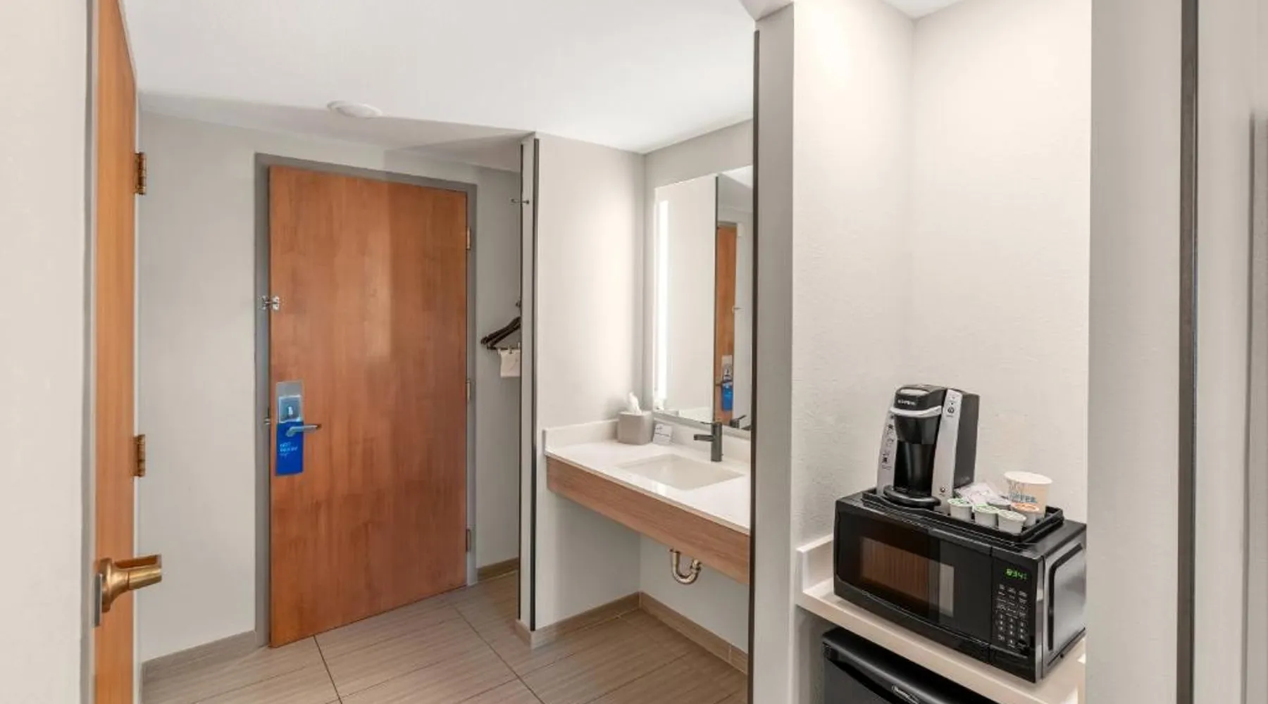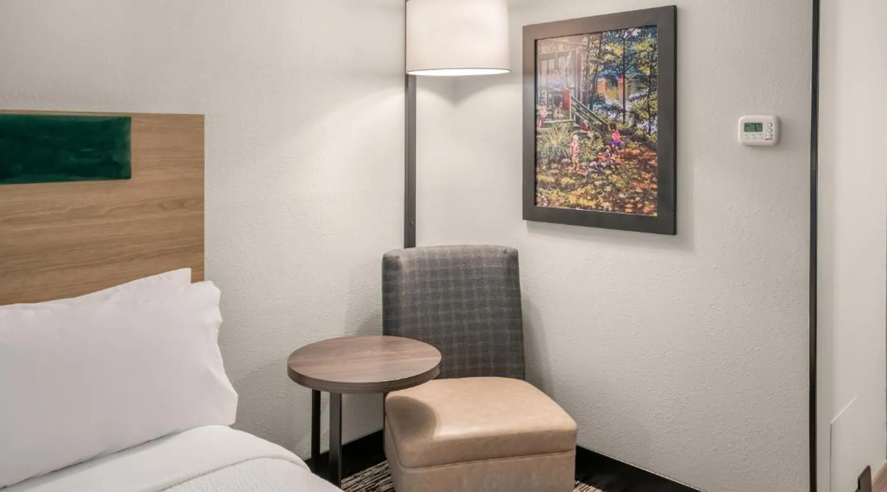 Comfortable Accommodations: Holiday Inn Express & Suites Hayward by IHG in Hayward offers air-conditioned rooms with private bathrooms, tea and coffee makers, and free toiletries. Each room includes a work desk, refrigerator, and TV. Leisure Facilities: Guests can enjoy a sauna, fitness center, sun terrace, and indoor swimming pool. Additional amenities include a hot tub, fitness room, and outdoor play area. Dining Options: A continental buffet breakfast is served daily, featuring fresh pastries and pancakes. The property also offers a minimarket and outdoor seating area. Convenient Location: Located less than 0.6 mi from the National Fresh Water Fishing Hall of Fame and 81 mi from Duluth International Airport. Highly rated for its breakfast, staff, and convenient location. The suite offers air conditioning, a tea and coffee maker, as well as a private bathroom boasting a walk-in shower and a hairdryer. The suite features a wardrobe, a sofa, a tiled floor, a carpeted floor and a flat-screen TV with cable channels. The unit has 1 bed.