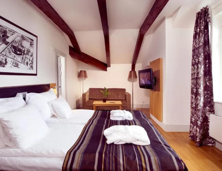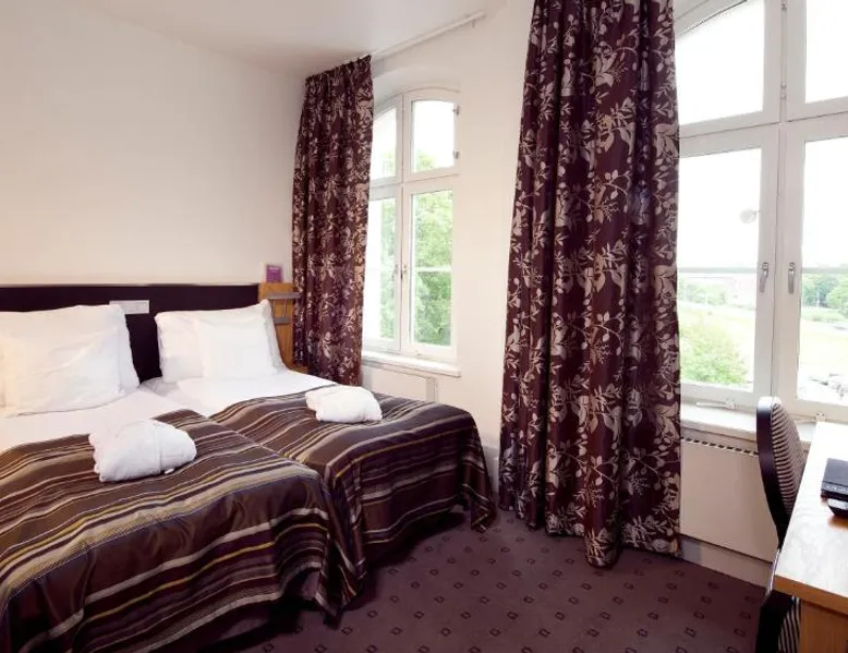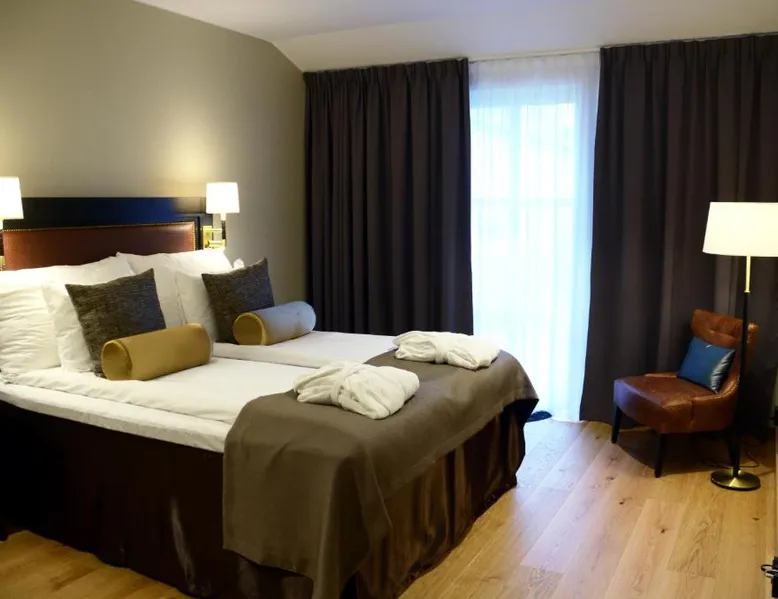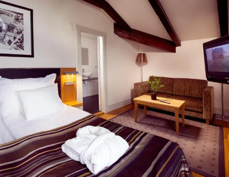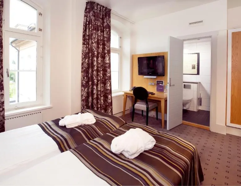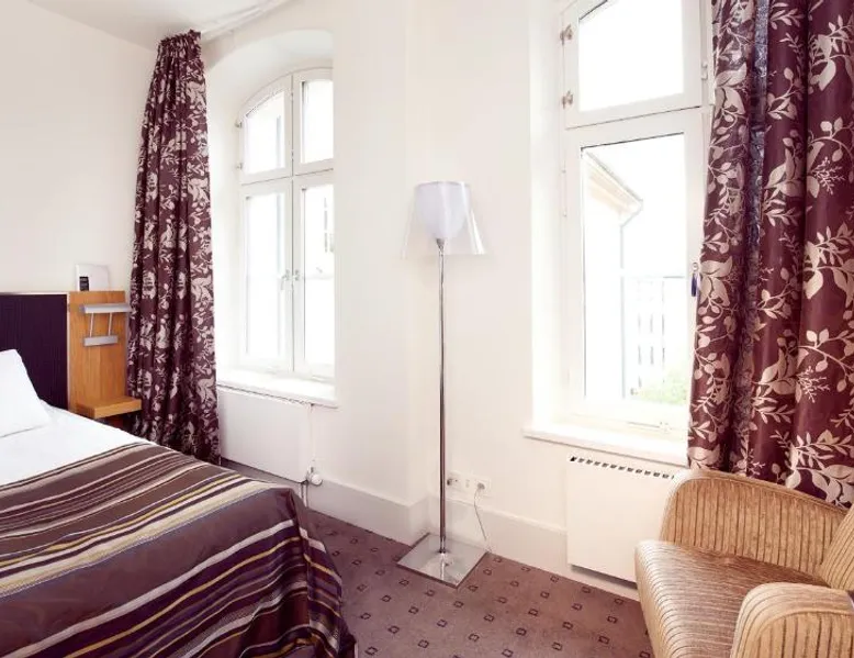 Home Hotel Bilan is housed in a former county prison, 164 feet from Drottninggatan shopping street in Karlstad. It offers a private prison museum and rooms with free WiFi. All rooms at Hotel Bilan are located in refurbished prison cells. They feature exposed beams and high ceilings. All are equipped with flat-screen cable TVs and work desks. In summer, the garden terrace is a popular meeting place for coffee and drinks. A buffet breakfast and a light evening meal are served every day. The relaxation area includes a sauna. Stora Torget Square is a 4-minute walk away. The Central Station is located 1640 feet from the hotel. This double room has a cable TV. Please note that the bed is 55 in wide. Extra beds are not possible in this room.