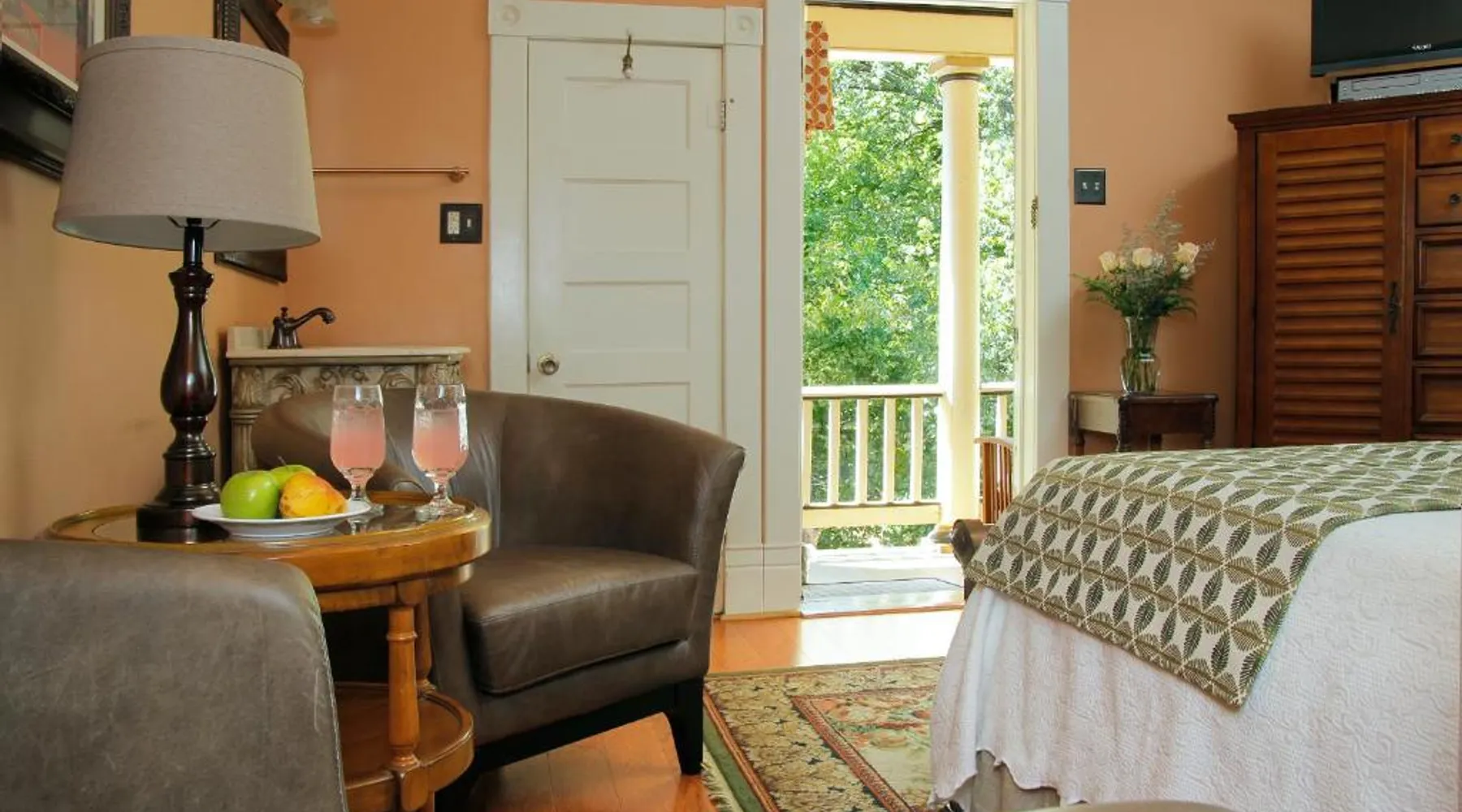 Comfortable Accommodations: Heartstone Inn in Eureka Springs offers adults-only rooms with private bathrooms, air-conditioning, and garden views. Each room includes a tea and coffee maker, hairdryer, and free toiletries. Exceptional Facilities: Guests can relax on the sun terrace or in the garden, enjoy free WiFi, and take advantage of the outdoor seating area. Private check-in and check-out services, a concierge, and free on-site parking enhance the stay. Delicious Breakfast: A hearty American breakfast is served daily, featuring champagne, local specialties, warm dishes, juice, pancakes, and fruits. Prime Location: Located 40 mi from Boone County Airport, the inn is a 13-minute walk from Eureka Springs Historic District. Nearby attractions include The Great Passion Play (3.7 mi) and Onyx Cave Park (7.5 mi). Highly rated by guests. This suite's special feature is the fireplace. Featuring a private entrance, this air-conditioned suite consists of 1 bedroom and 1 bathroom with a walk-in shower and a bath. This suite features soundproof walls, flat-screen TV with cable channels, garden views, as well as wine/champagne for guests. The unit offers 1 bed.