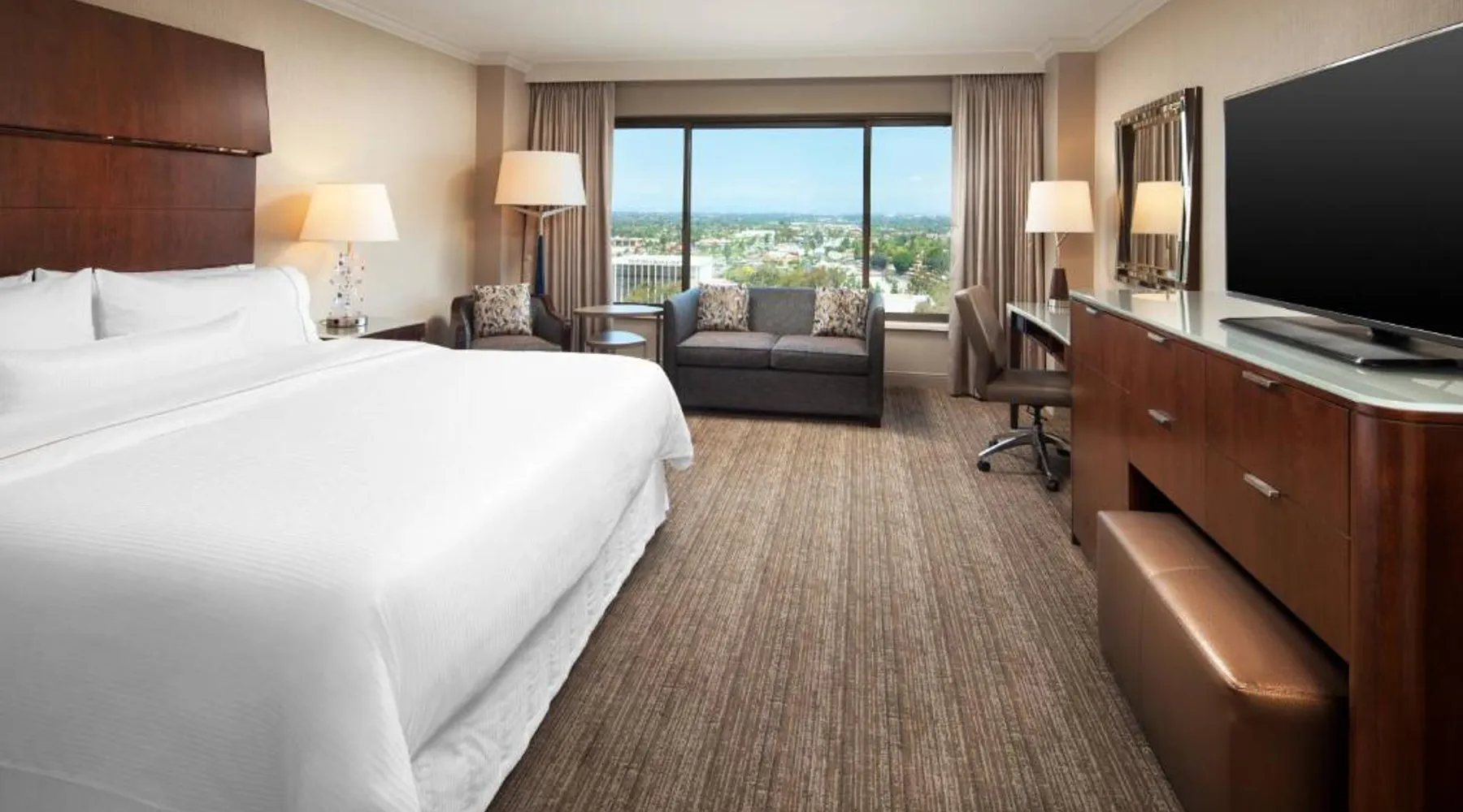 Disneyland is less than 20 minutes’ drive from this hotel, and Newport Beach is a 20 minutes’ drive away. An outdoor pool, a sun terrace, and lighted pickleball and tennis courts are available for guests. Modern guest rooms are equipped with flat-screen cable TVs, toiletries and modern amenities. A 24-hour room service is available. The Great Room serves breakfast and dinner daily. There is also a parking garage and a fitness center for guests. Accessible via a pedestrian bridge from the hotel, South Coast Plaza Shopping Center offers more than 275 boutiques, department stores, and restaurants. Angel Stadium is 15 minutes' drive away. The double room offers a carpeted floor and heating, as well as a private bathroom featuring a shower. The spacious air-conditioned double room provides a flat-screen TV with cable channels, a tea and coffee maker, a seating area and a safe deposit box. The unit offers 1 bed.