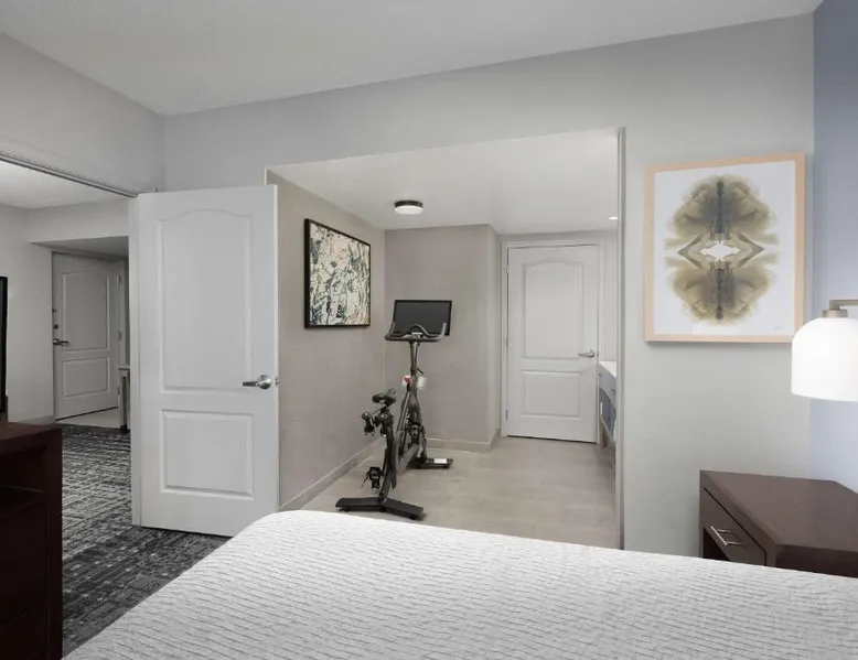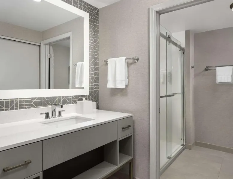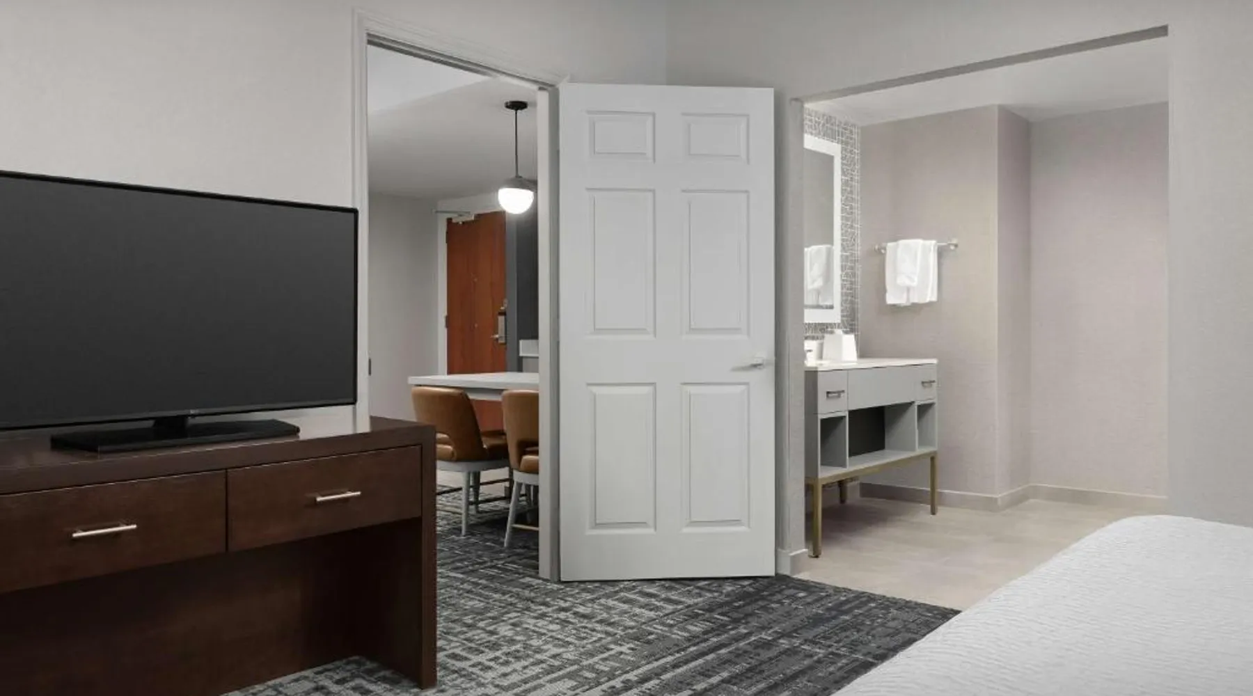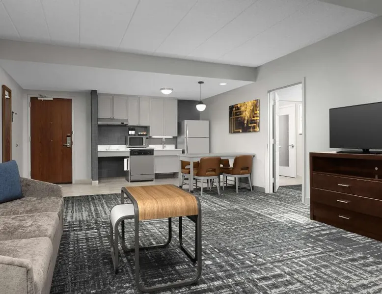 Comfortable Accommodations: Homewood Suites by Hilton Reading-Wyomissing in Wyomissing offers family rooms with air-conditioning, refrigerators, microwaves, and kitchenware. Each room includes a work desk, sofa bed, and free toiletries. Exceptional Facilities: Guests enjoy a saltwater swimming pool, fitness center, and 24-hour front desk. Additional amenities include a minimarket, coffee shop, and barbecue facilities. Convenient Location: Located 28 mi from Lancaster Airport, the hotel is a 5-minute walk from Broadcasting Square. Nearby attractions include Fox Berkshire (1.7 mi) and Berkshire Mall (2 mi). Guest Satisfaction: Highly rated for its swimming pool, attentive staff, and breakfast provided by the property. Features a separate seating area and a work desk.