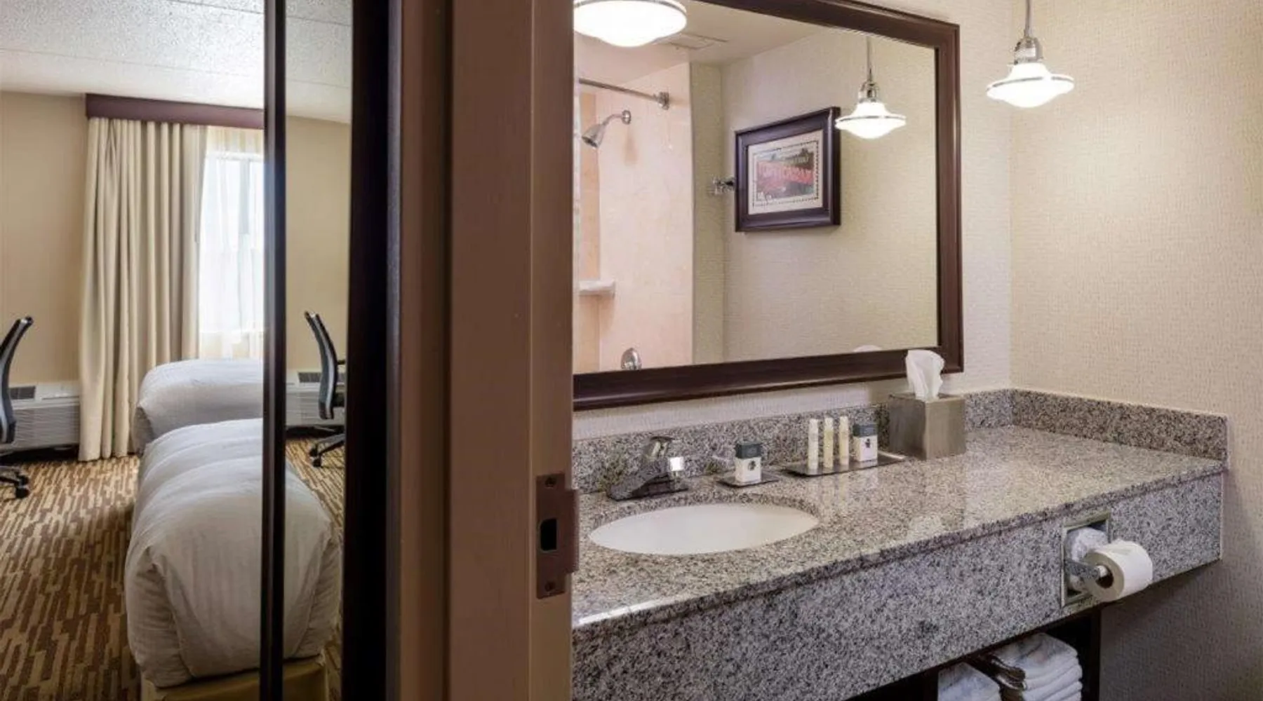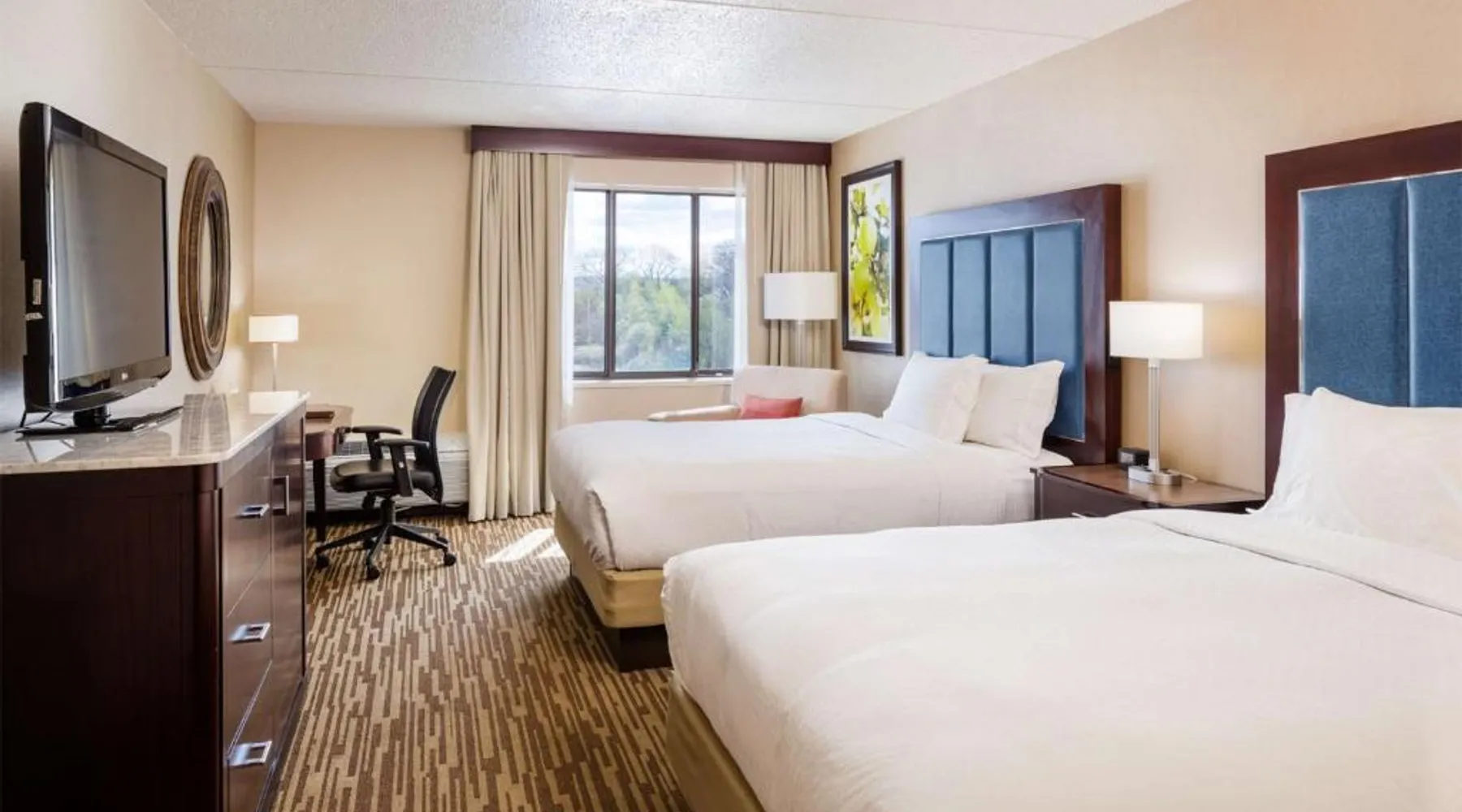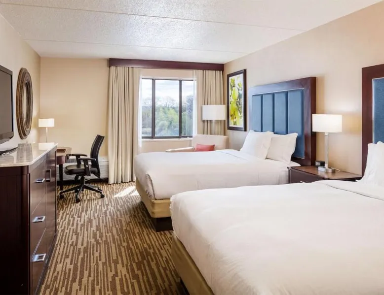Located in Leominster, Massachusetts, this hotel is 11 miles from Wachusett Mountain Ski Area and 6 miles from Fort Devens. It offers on-site dining and an indoor swimming pool. Each room at Doubletree by Hilton, Leominster includes a flat-screen cable TV and work desk with an ergonomic chair. A sofa bed is provided in most rooms. An on-site fitness center is available at the Leominster DoubleTree. The business center is located off the lobby and concierge services are available. Nectar Breakfast Restaurant serves breakfast every day. The pub-style Nectar Lounge is open in the evenings and offers meals and drinks in a casual atmosphere. Fitchburg State University is 4 miles away and the Oak Hill Country Club is 5 miles away. This room features a seating area with a sofa bed.