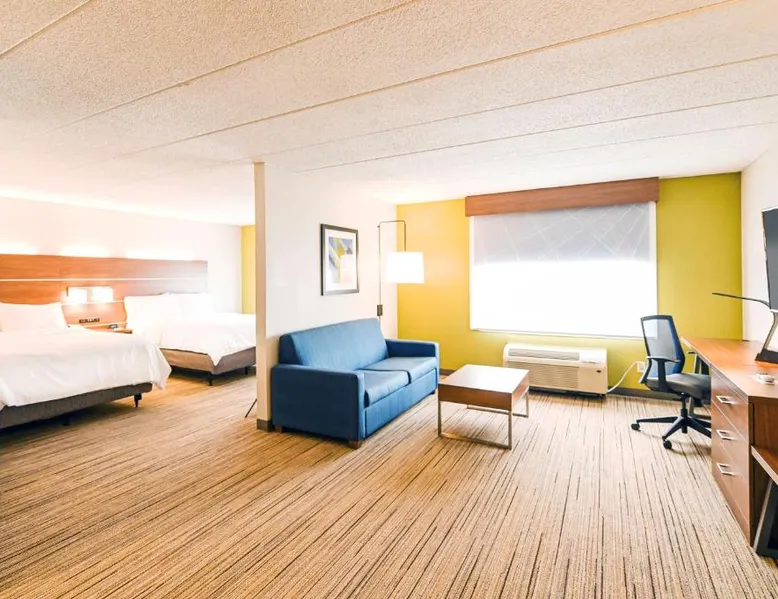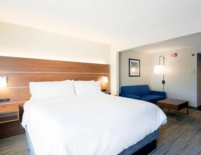Comfortable Accommodations: Holiday Inn Express Richmond Airport by IHG in Sandston offers air-conditioned rooms with private bathrooms, tea and coffee makers, and free WiFi. Each room includes a work desk, refrigerator, and TV. Exceptional Facilities: Guests enjoy an indoor swimming pool, fitness room, and free airport shuttle service. Additional amenities include a 24-hour front desk, full-day security, and free on-site parking. Convenient Location: Located 3281 feet from Richmond International Airport, the hotel is near attractions such as the Museum Of Confederacy (7.5 mi) and Kings Dominion Amusement Park (30 mi). Free WiFi is available throughout the property. Guest Satisfaction: Highly rated for its breakfast, attentive staff, and clean rooms, the hotel ensures a pleasant stay for all visitors. This room includes a flat-screen cable TV and a refrigerator.