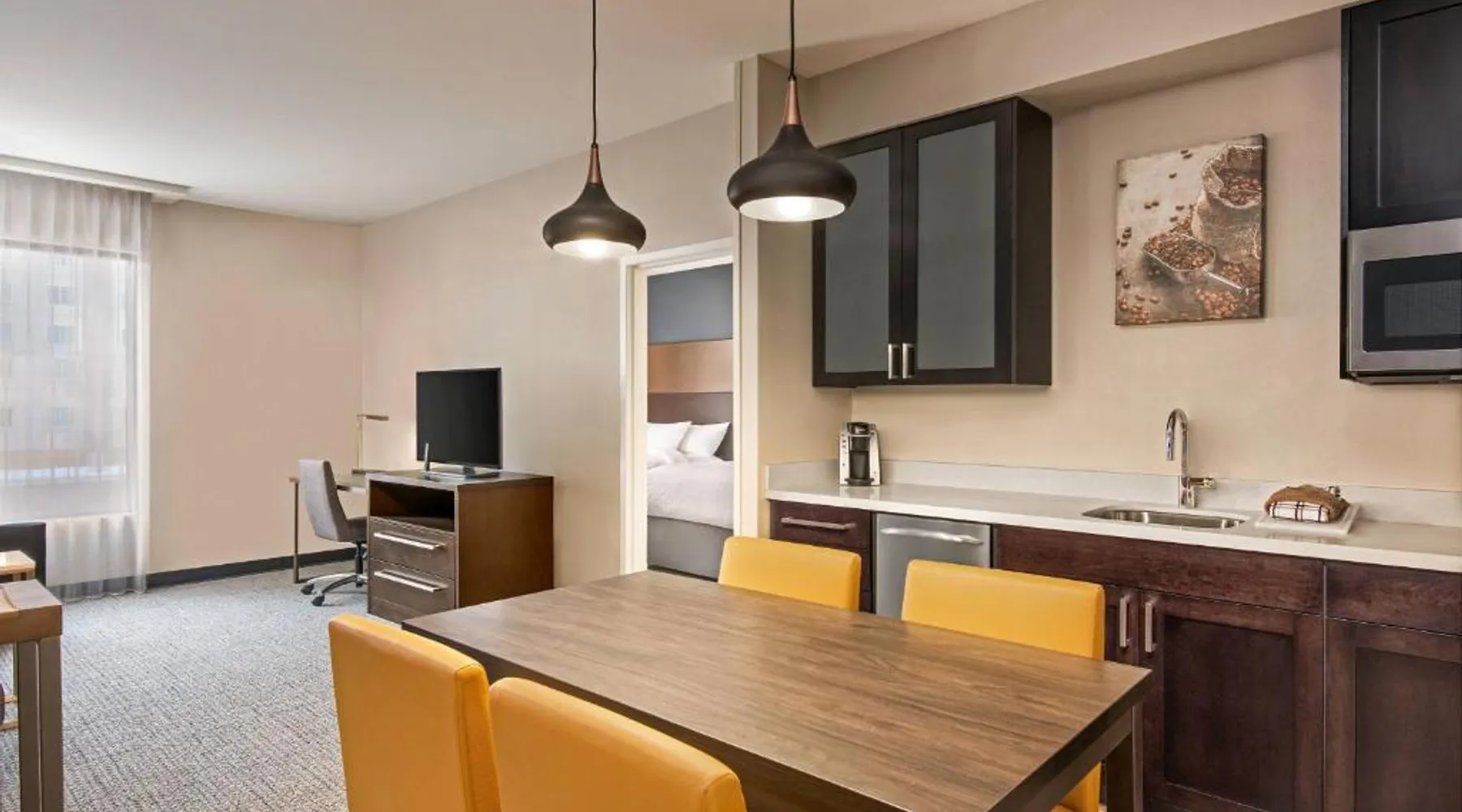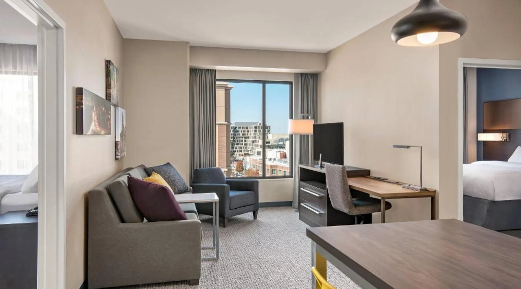 Comfortable Accommodations: Residence Inn by Marriott Boise Downtown City Center in Boise offers air-conditioned rooms with city views, walk-in showers, sofas, and TVs. Each room includes a bath or shower, ensuring a pleasant stay. Exceptional Facilities: Guests can enjoy an indoor swimming pool, fitness center, terrace, restaurant, and bar. Additional amenities include a hot tub, 24-hour front desk, minimarket, business area, coffee shop, live music, and barbecue facilities. Dining Experience: The modern, family-friendly restaurant serves American cuisine for dinner. A variety of breakfast options are available, including continental, American, and buffet. Prime Location: Located 3.7 mi from Boise Airport, the hotel is near attractions such as Extramile Arena (19-minute walk), Boise Art Museum (4-minute walk), and Zoo Boise (1969 feet). Guests appreciate the attentive staff and convenient location. This suite features air conditioning, a sofa, a flat-screen TV with streaming services and city views. The unit offers 1 bed.