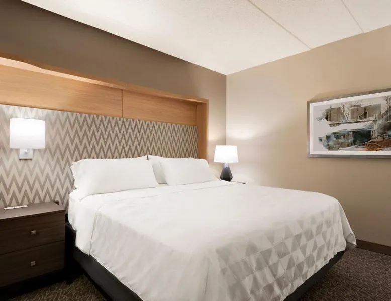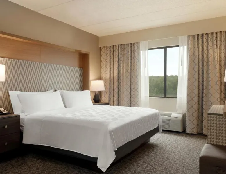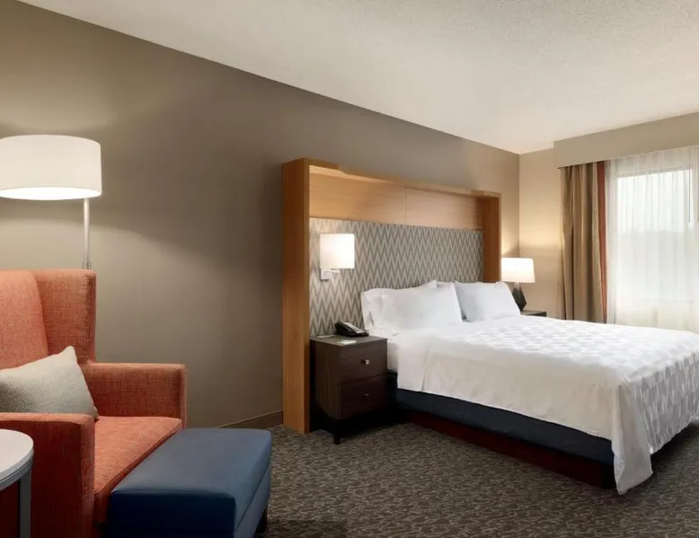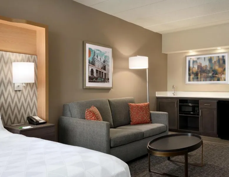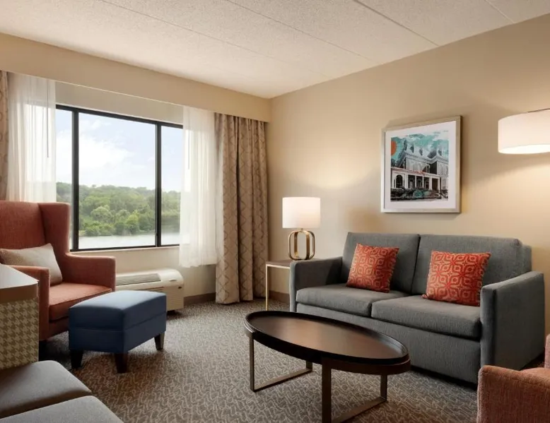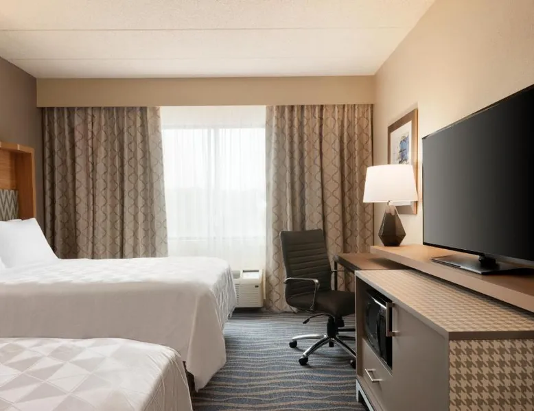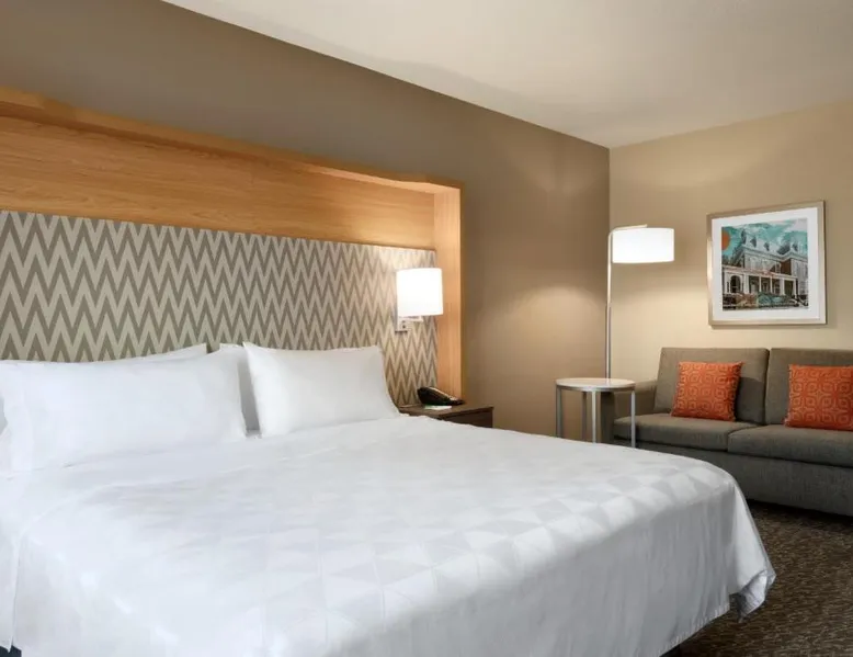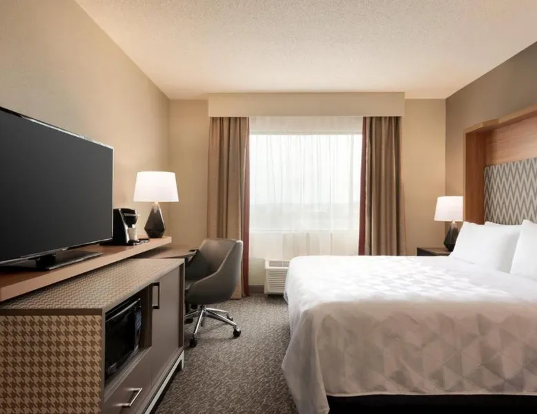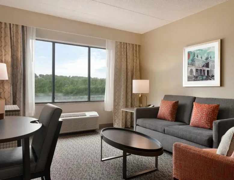 Overlooking the Missouri River, this Council Bluffs, Iowa hotel features on-site dining and a fitness center. Airfield Airport is 4.3 mi away. Free WiFi is available throughout the property, A 37-inch flat-screen cable TV is provided in every room at Holiday Inn Hotel & Suites Council Bluffs. For added convenience, a microwave, fridge, and coffeemaker are included. Private bathrooms also come with a hairdryer and free toiletries. Amerisports Bar and Casino is on site and features table games, live entertainment, and serves lunch and dinner. A daily hot breakfast is served daily. An indoor swimming pool is offered at Council Bluffs Holiday Inn Hotel & Suites. The property offers free parking and a mini market with snacks and drinks for purchase. The Mid-America Convention Center is 1.9 mi away. Central Omaha can be reached in 11 minutes’ drive. Featuring a 37-inch flat-screen cable TV and a sofa bed, this room also offers a microwave, refrigerator, and coffeemaker.