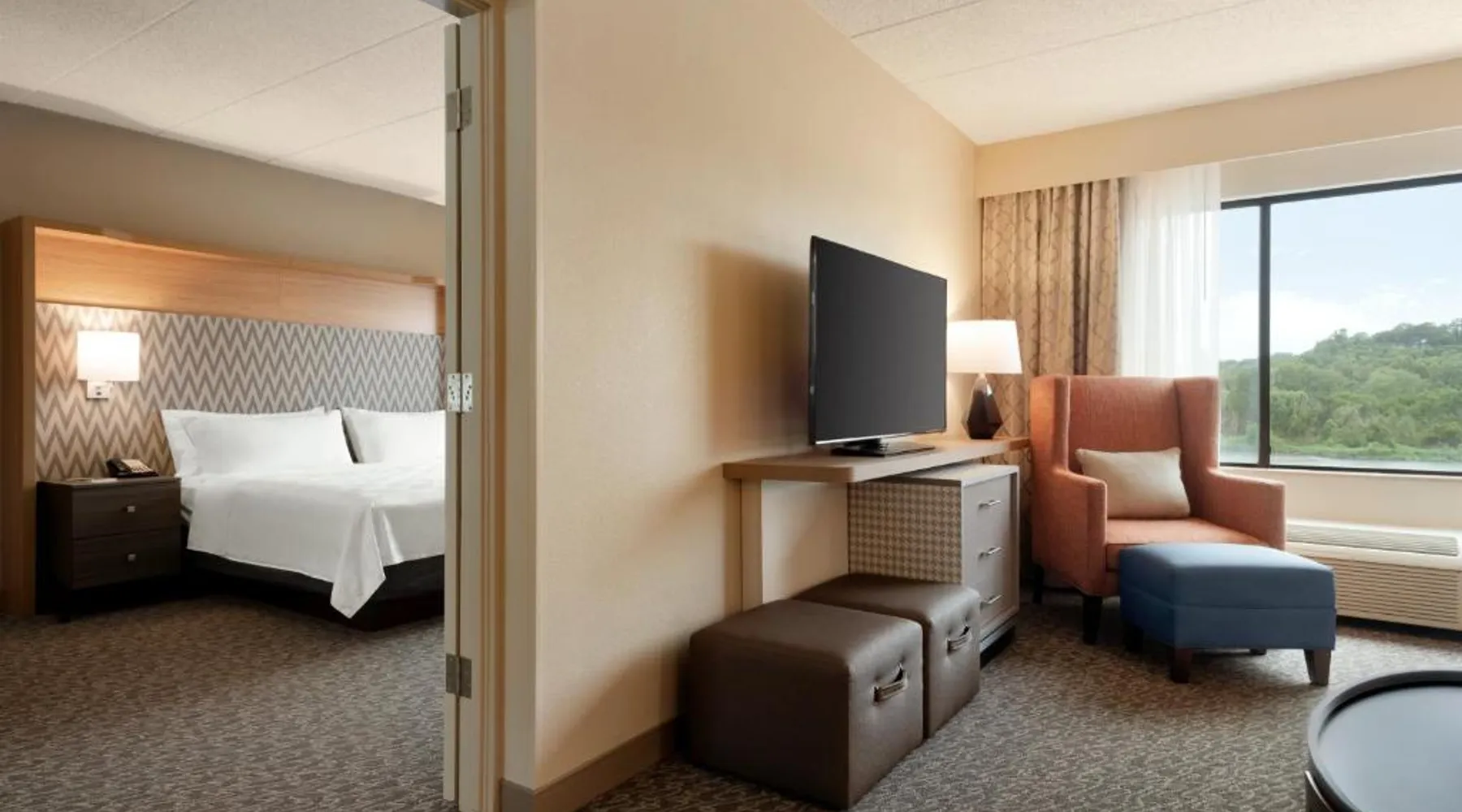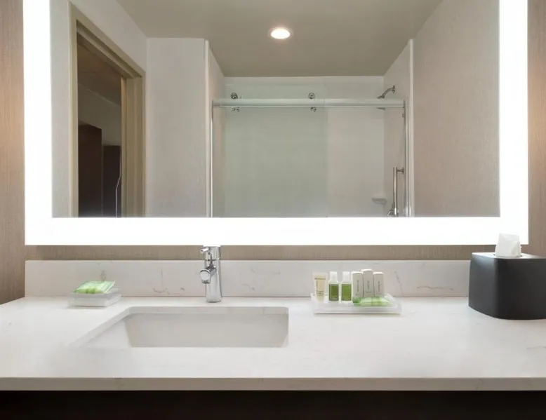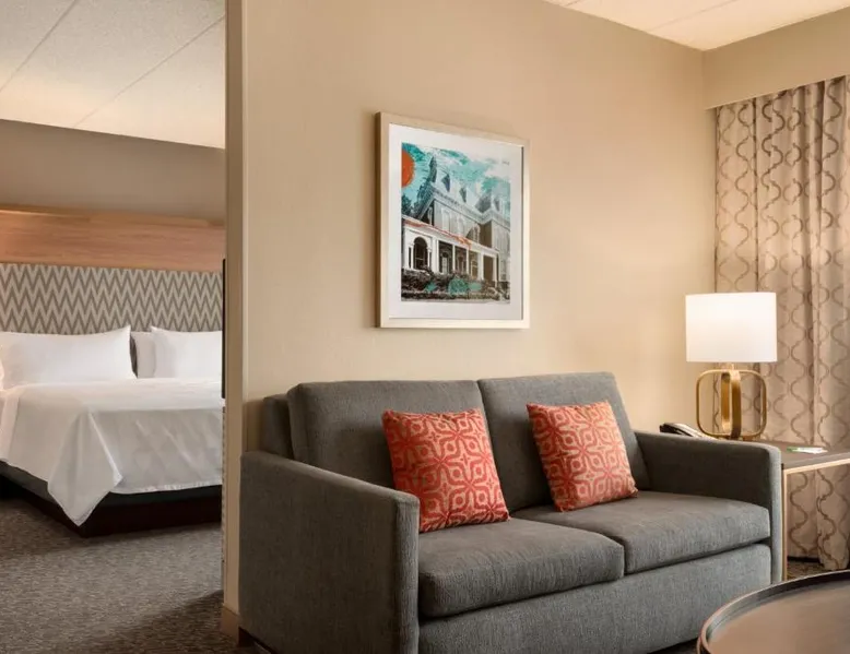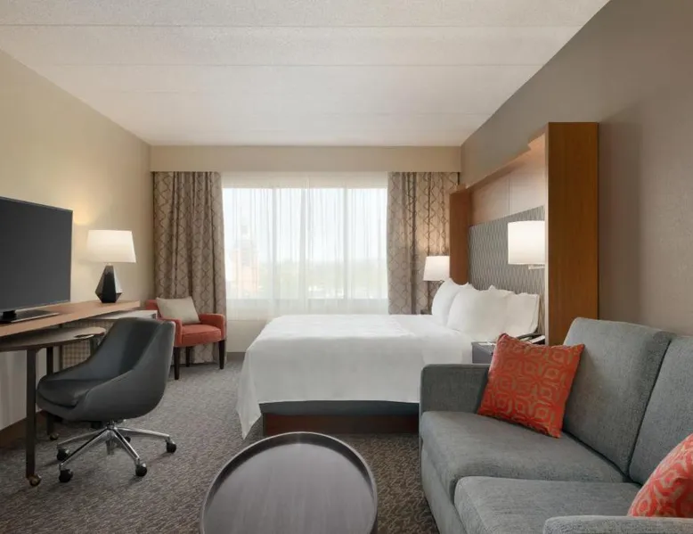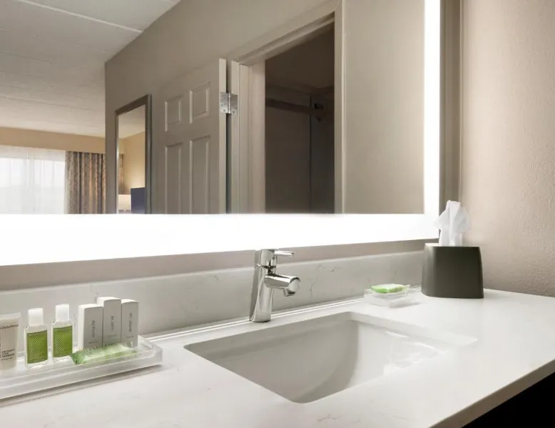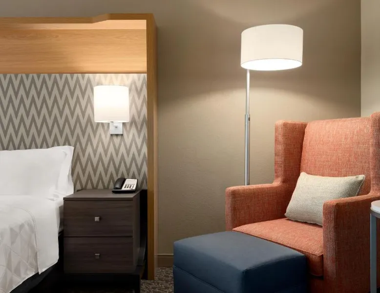 Overlooking the Missouri River, this Council Bluffs, Iowa hotel features on-site dining and a fitness center. Airfield Airport is 4.3 mi away. Free WiFi is available throughout the property, A 37-inch flat-screen cable TV is provided in every room at Holiday Inn Hotel & Suites Council Bluffs. For added convenience, a microwave, fridge, and coffeemaker are included. Private bathrooms also come with a hairdryer and free toiletries. Amerisports Bar and Casino is on site and features table games, live entertainment, and serves lunch and dinner. A daily hot breakfast is served daily. An indoor swimming pool is offered at Council Bluffs Holiday Inn Hotel & Suites. The property offers free parking and a mini market with snacks and drinks for purchase. The Mid-America Convention Center is 1.9 mi away. Central Omaha can be reached in 11 minutes’ drive. Featuring a 37-inch flat-screen cable TV and a sofa bed, this room also offers a microwave, refrigerator, and coffeemaker.