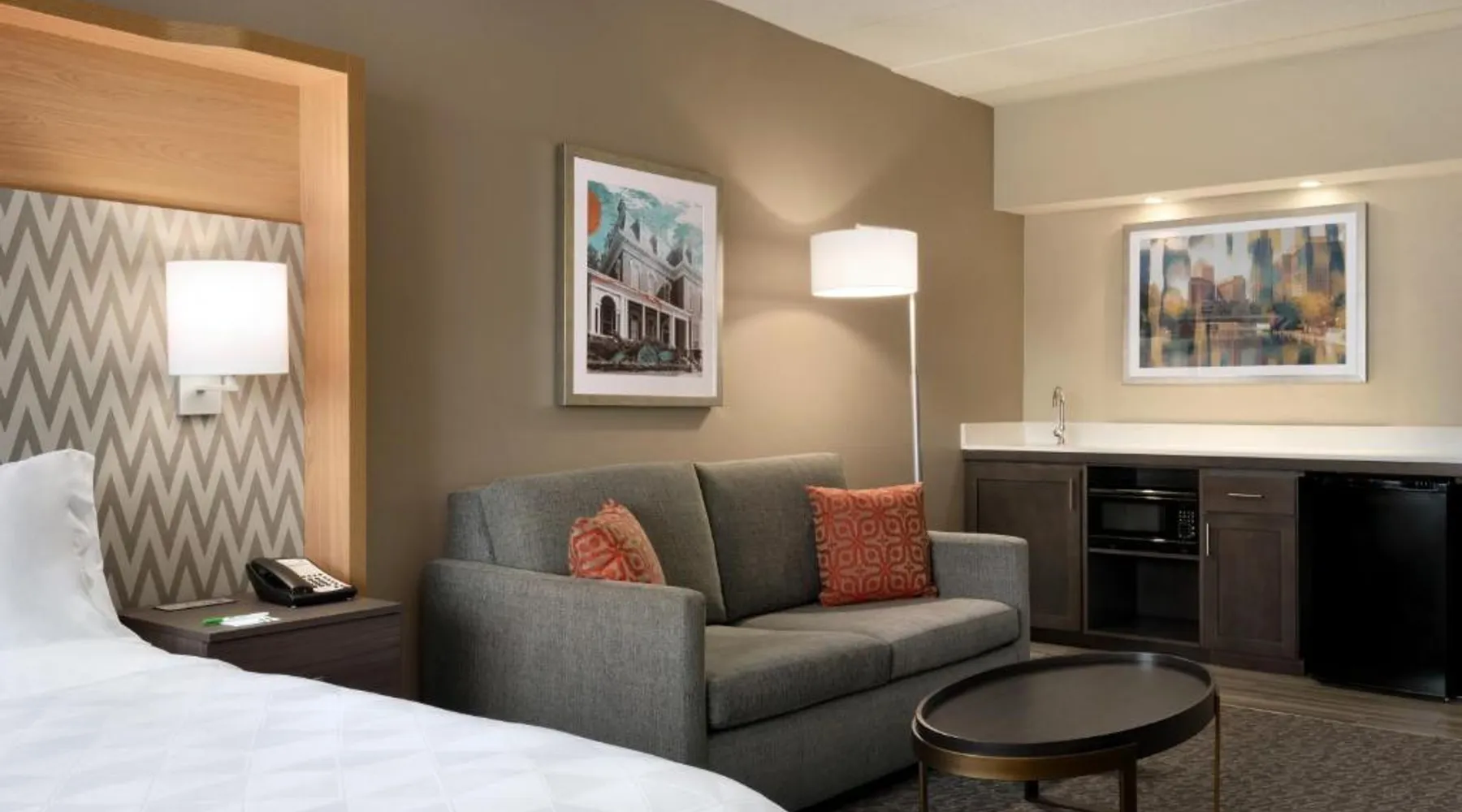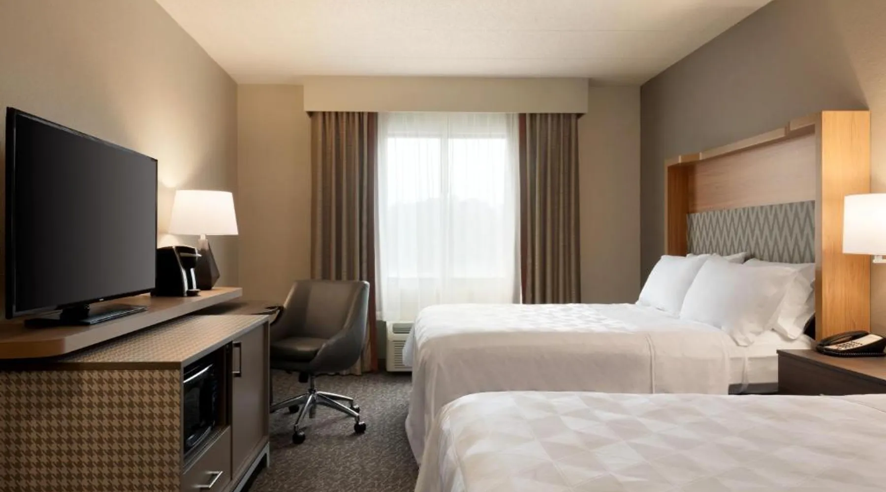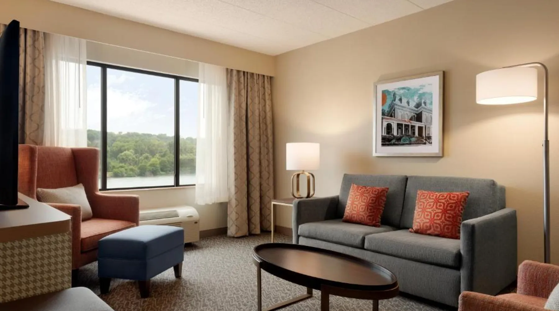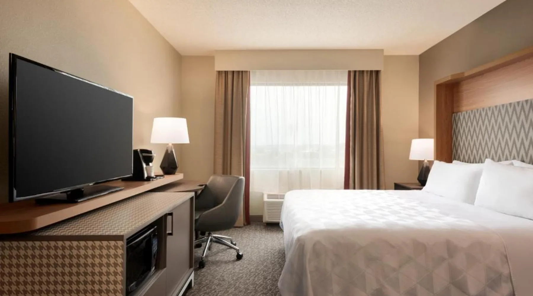 Overlooking the Missouri River, this Council Bluffs, Iowa hotel features on-site dining and a fitness center. Airfield Airport is 4.3 mi away. Free WiFi is available throughout the property, A 37-inch flat-screen cable TV is provided in every room at Holiday Inn Hotel & Suites Council Bluffs. For added convenience, a microwave, fridge, and coffeemaker are included. Private bathrooms also come with a hairdryer and free toiletries. Amerisports Bar and Casino is on site and features table games, live entertainment, and serves lunch and dinner. A daily hot breakfast is served daily. An indoor swimming pool is offered at Council Bluffs Holiday Inn Hotel & Suites. The property offers free parking and a mini market with snacks and drinks for purchase. The Mid-America Convention Center is 1.9 mi away. Central Omaha can be reached in 11 minutes’ drive. Featuring a 37-inch flat-screen cable TV and a sofa bed, this room also offers a microwave, refrigerator, and coffeemaker.