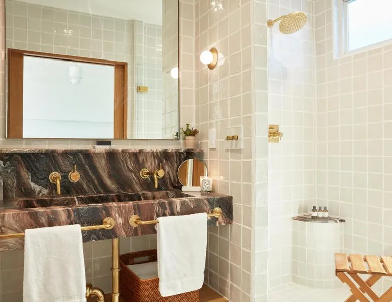 Hotel Joaquin in Laguna Beach features an outdoor swimming pool and a garden. The property features a bar, as well as a restaurant serving Mediterranean inspired cuisine. Saline Restaurant and Bar are open daily to guest staying with us at the property. Wake up each morning to Coffee in our living room, access to our adventure outpost, Wi-Fi, or take a dip in our heated pool. While certain rooms here will provide you with an ocean view, others offer garden and mountain view. Staff at the reception can assist guests at any time of the day. Treasure Island Park Laguna Beach is 3.1 mi from Hotel Joaquin, while Aliso Beach is 3.7 mi from the property. Laguna Art Museum is 2953 feet from the hotel and Top of the World Laguna Beach is 2.2 mi away. The nearest airport is John Wayne Airport, 9.9 mi from the hotel. This room features a view of the northern rocks of Shaw’s Cove. It includes a sliding glass door with an ocean view, stone-clad bathtub, double vanity, hand-painted tile shower and vaulted ceilings.