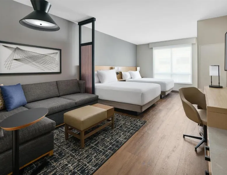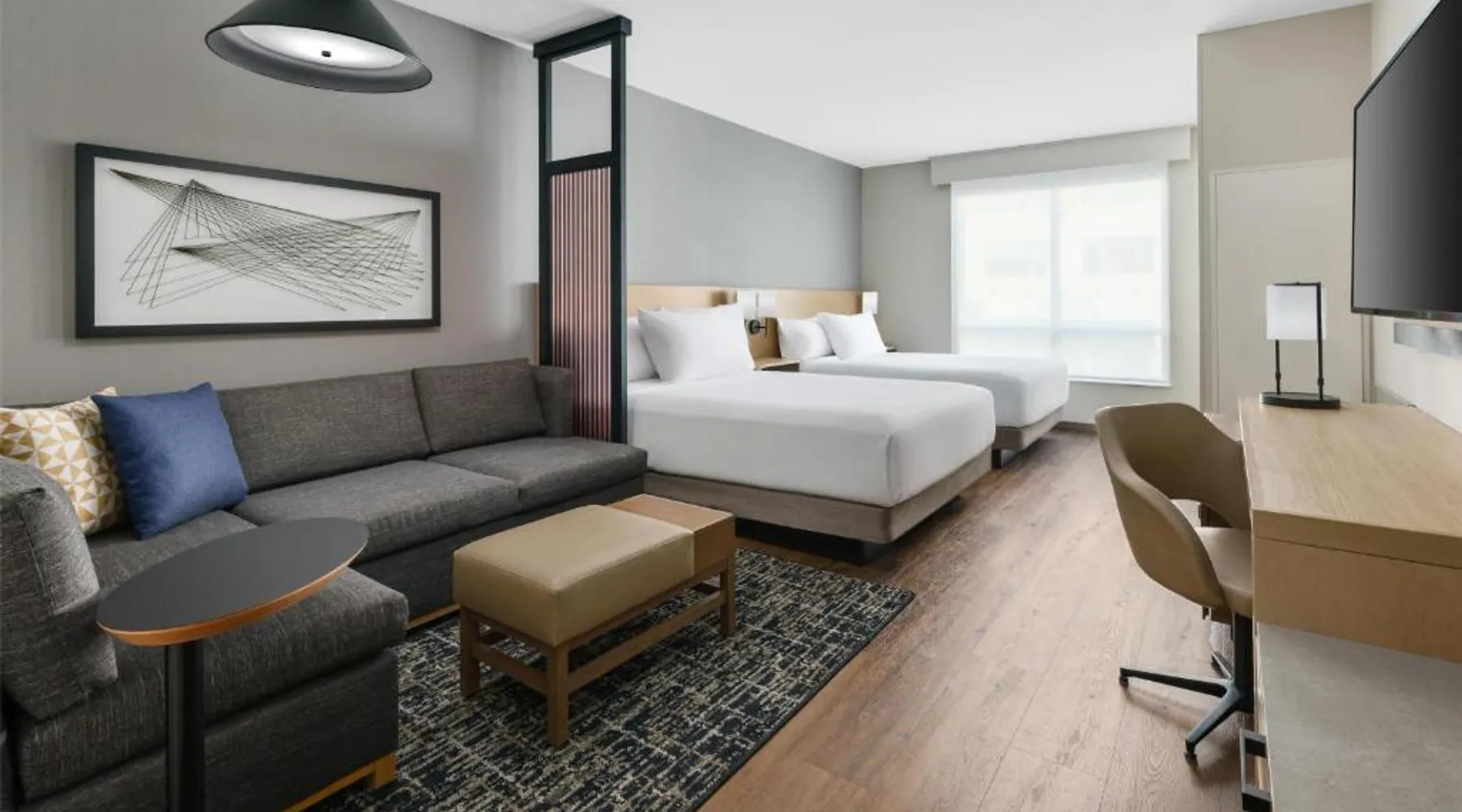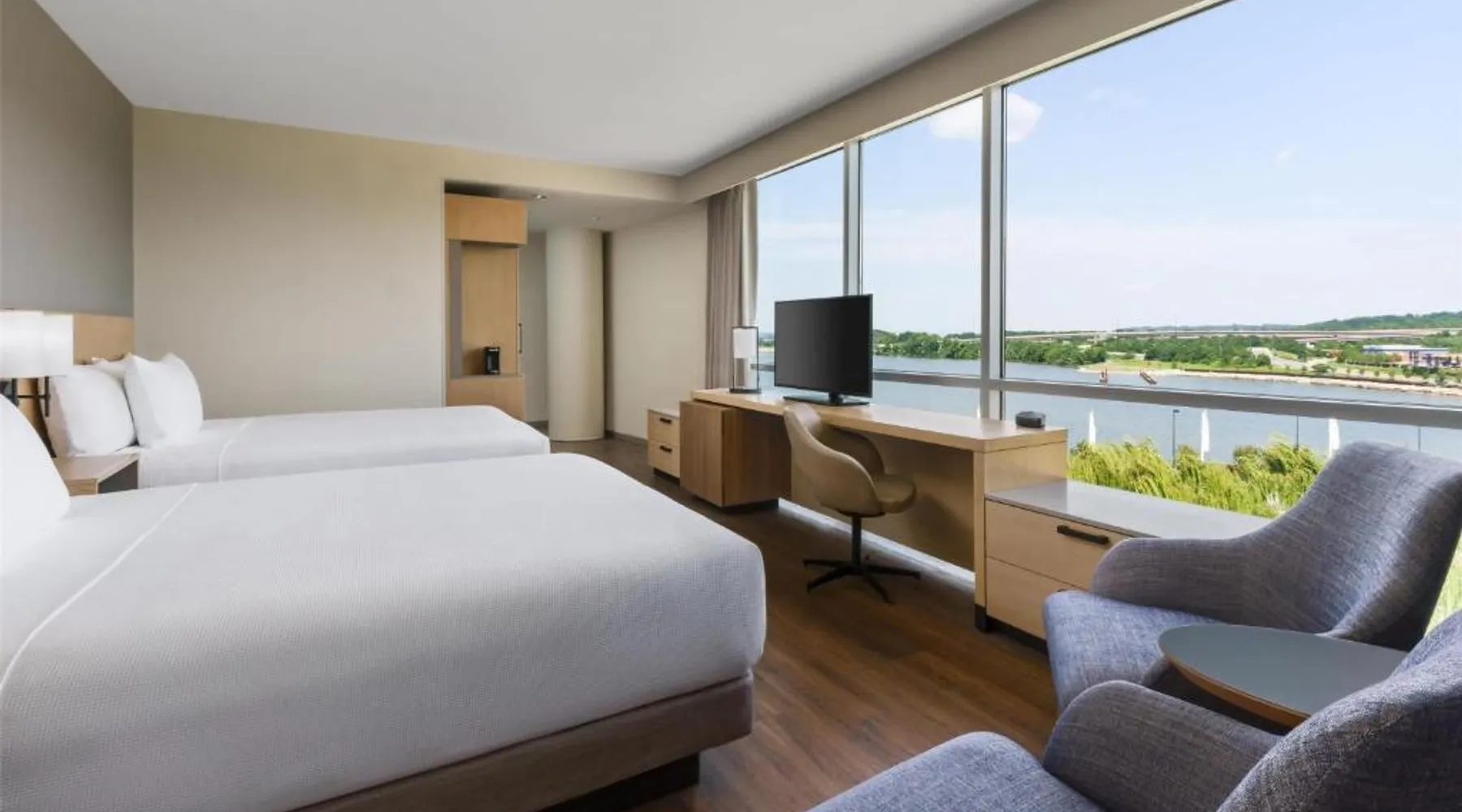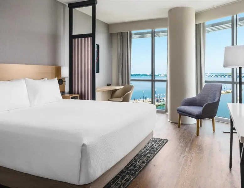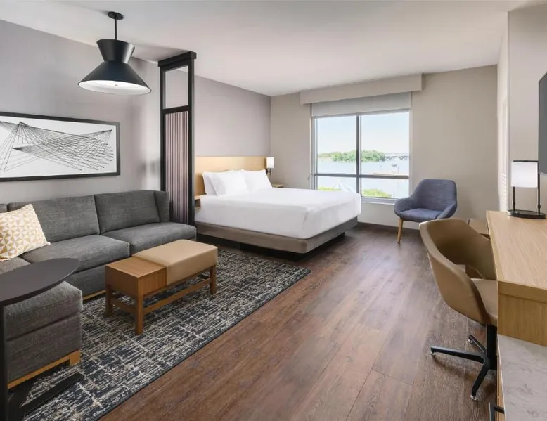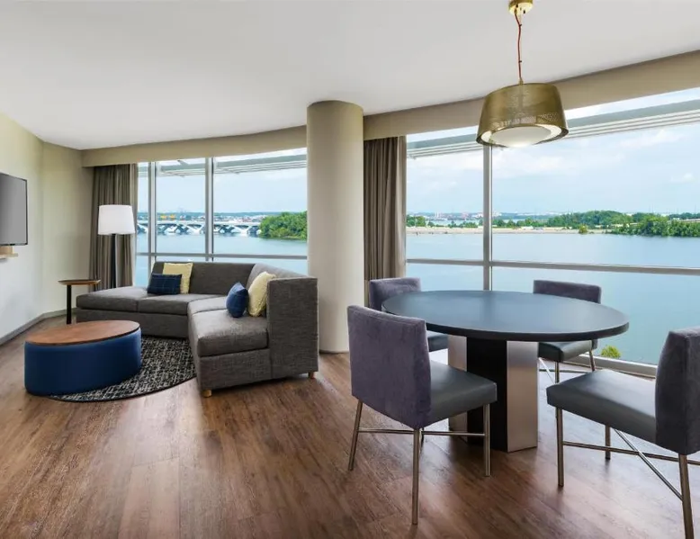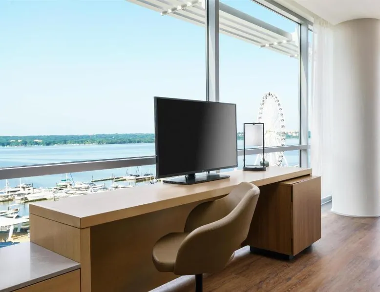 Comfortable Accommodations: Hyatt Place National Harbor in National Harbor offers family rooms with air-conditioning, private bathrooms, and modern amenities. Each room includes a tea and coffee maker, hairdryer, refrigerator, and free toiletries. Dining and Leisure: The hotel features a fitness center, terrace, restaurant, and bar. Guests can enjoy American and seafood cuisines in a family-friendly, traditional, modern, or romantic ambiance. Breakfast is served as an American buffet. Convenient Location: Located 8.1 mi from Ronald Reagan Washington National Airport, the hotel is a 1-minute walk from National Harbor. Nearby attractions include Alexandria's Christ Church (3.7 mi) and Nationals Park (6.8 mi). Guests appreciate the attentive staff and excellent service. This air-conditioned family room includes a flat-screen TV with cable channels and a private bathroom. The unit offers 3 beds.