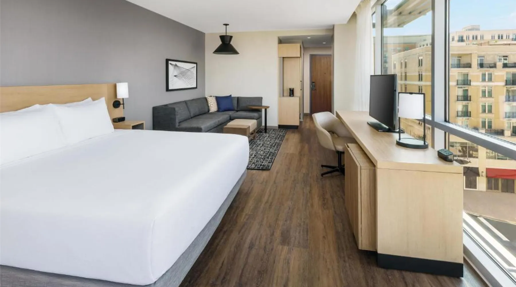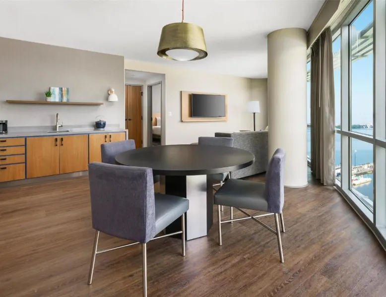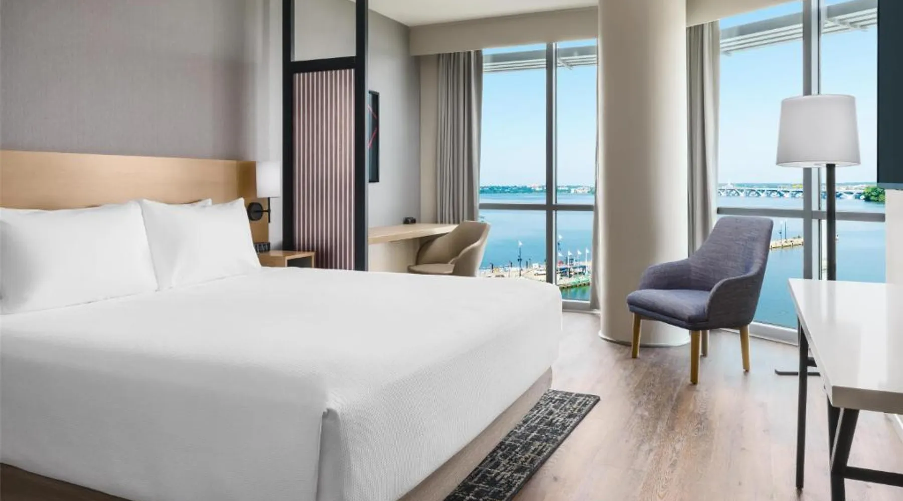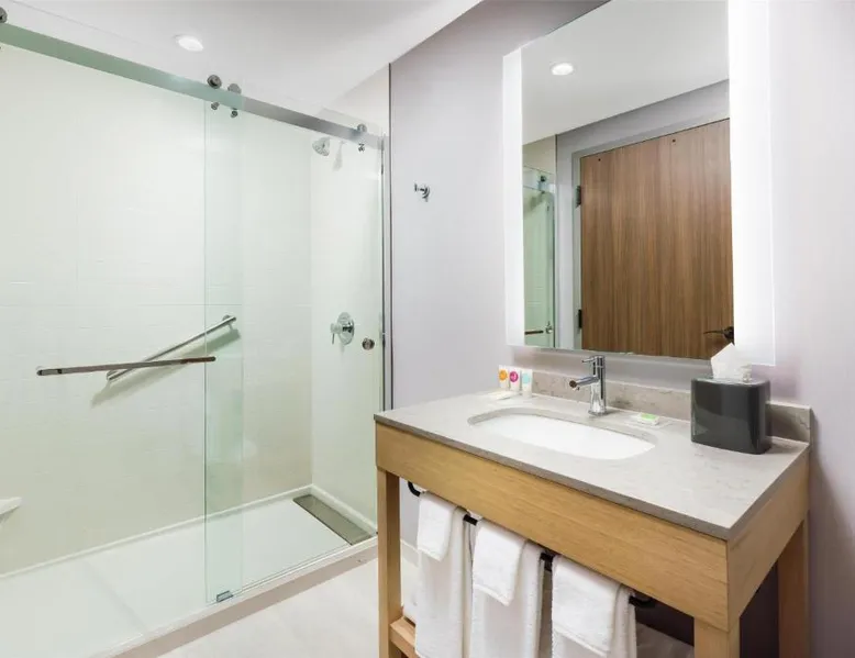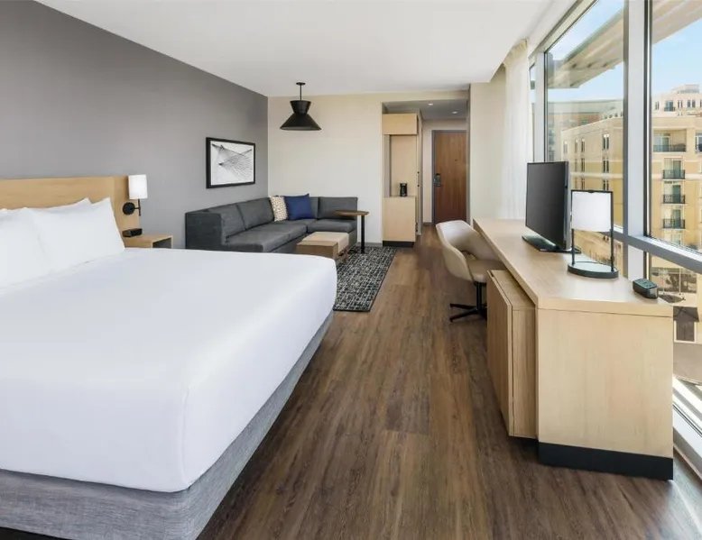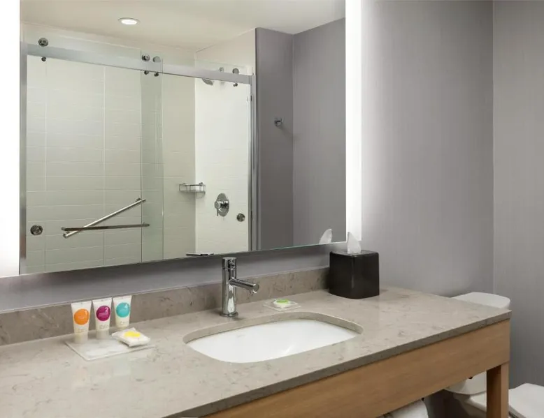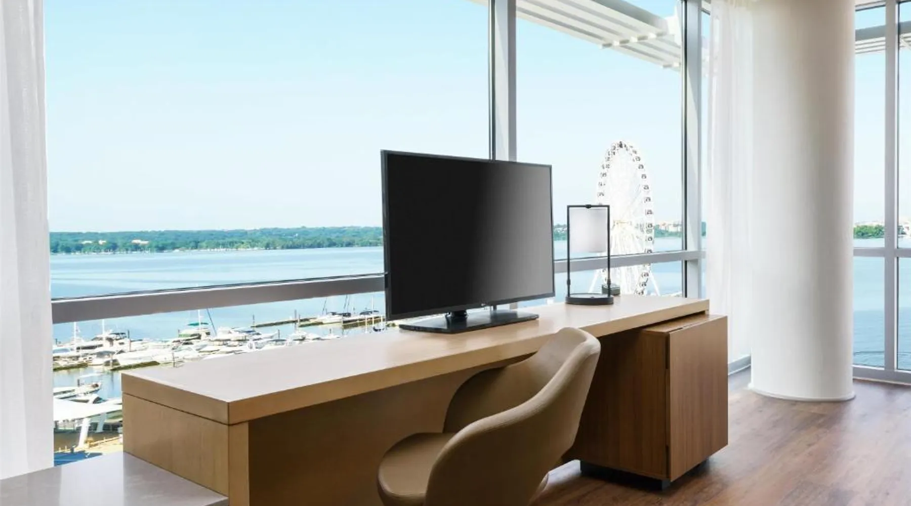 Comfortable Accommodations: Hyatt Place National Harbor in National Harbor offers family rooms with air-conditioning, private bathrooms, and modern amenities. Each room includes a tea and coffee maker, hairdryer, refrigerator, and free toiletries. Dining and Leisure: The hotel features a fitness center, terrace, restaurant, and bar. Guests can enjoy American and seafood cuisines in a family-friendly, traditional, modern, or romantic ambiance. Breakfast is served as an American buffet. Convenient Location: Located 8.1 mi from Ronald Reagan Washington National Airport, the hotel is a 1-minute walk from National Harbor. Nearby attractions include Alexandria's Christ Church (3.7 mi) and Nationals Park (6.8 mi). Guests appreciate the attentive staff and excellent service. This air-conditioned family room includes a flat-screen TV with cable channels and a private bathroom. The unit offers 3 beds.