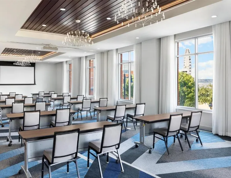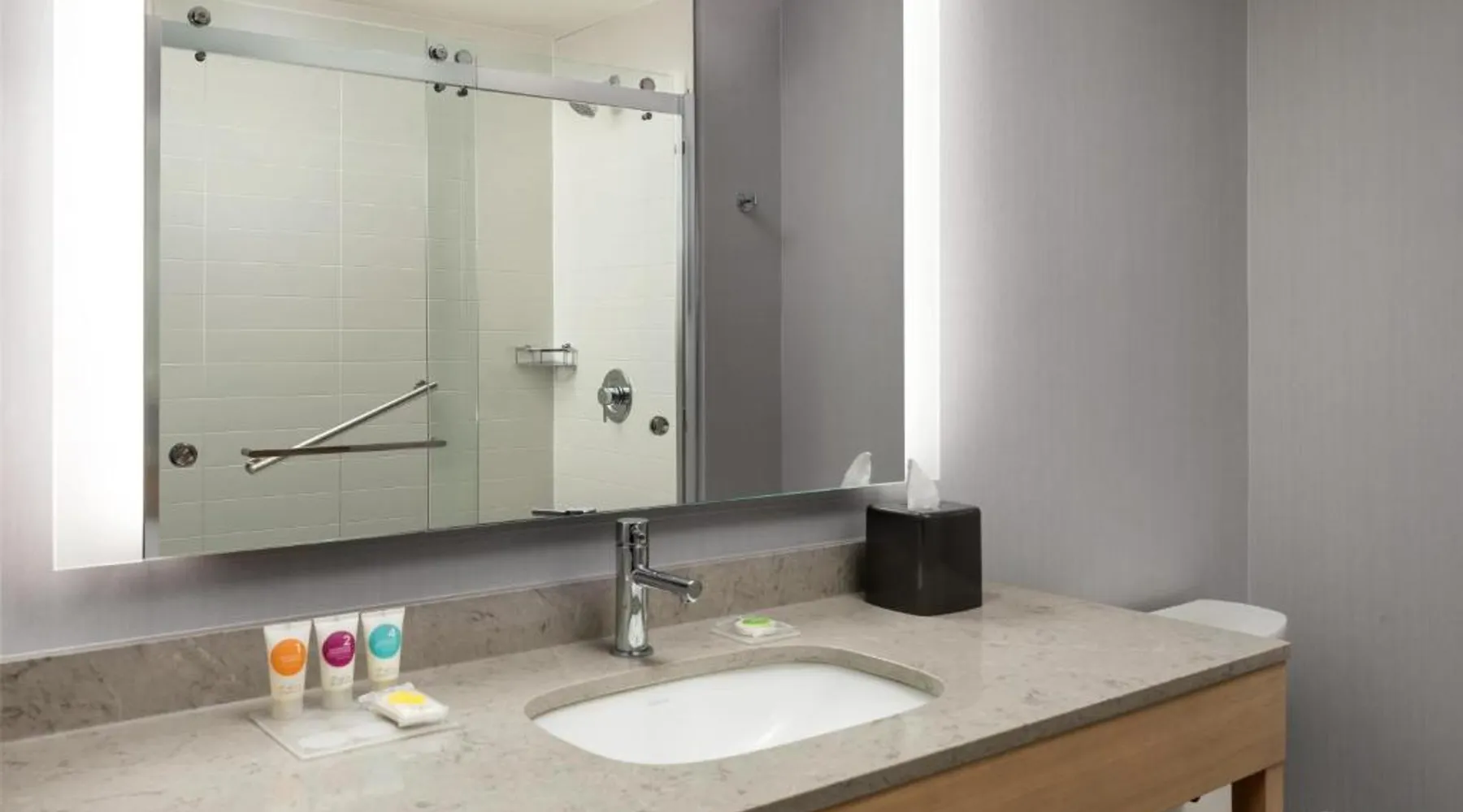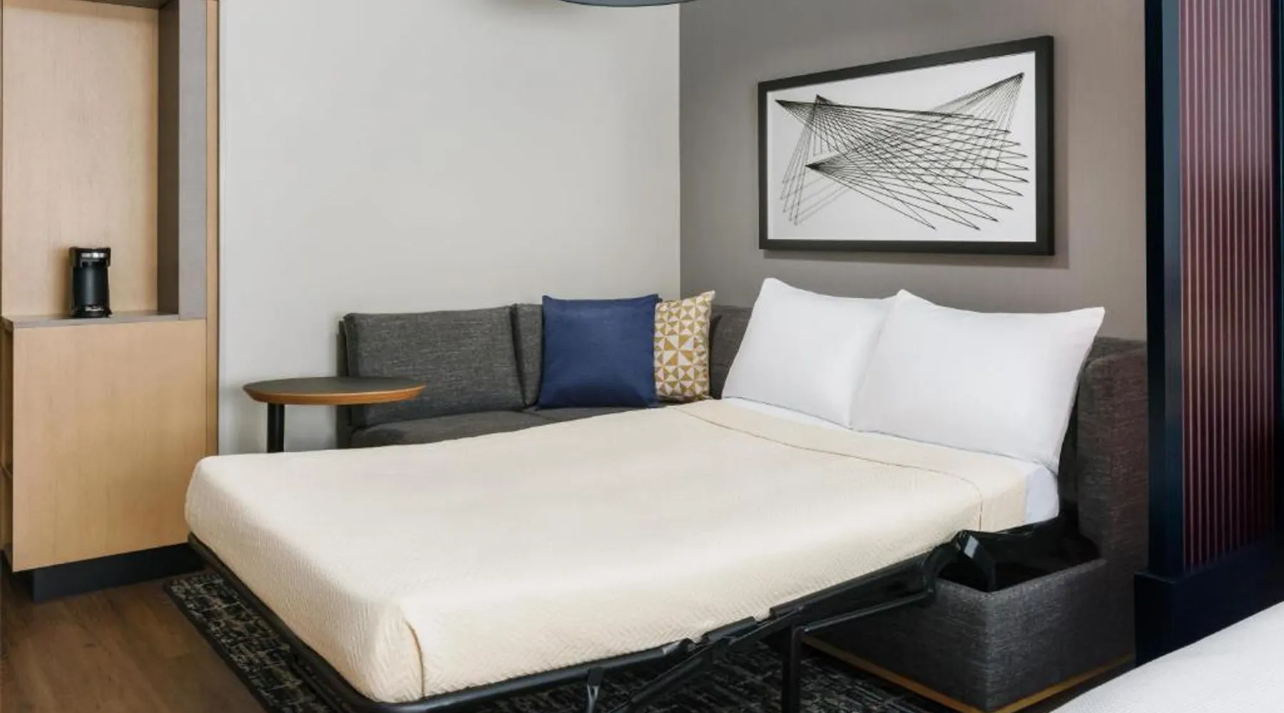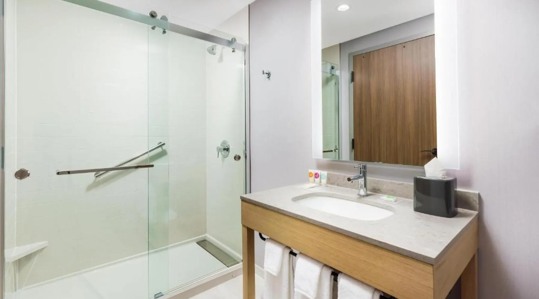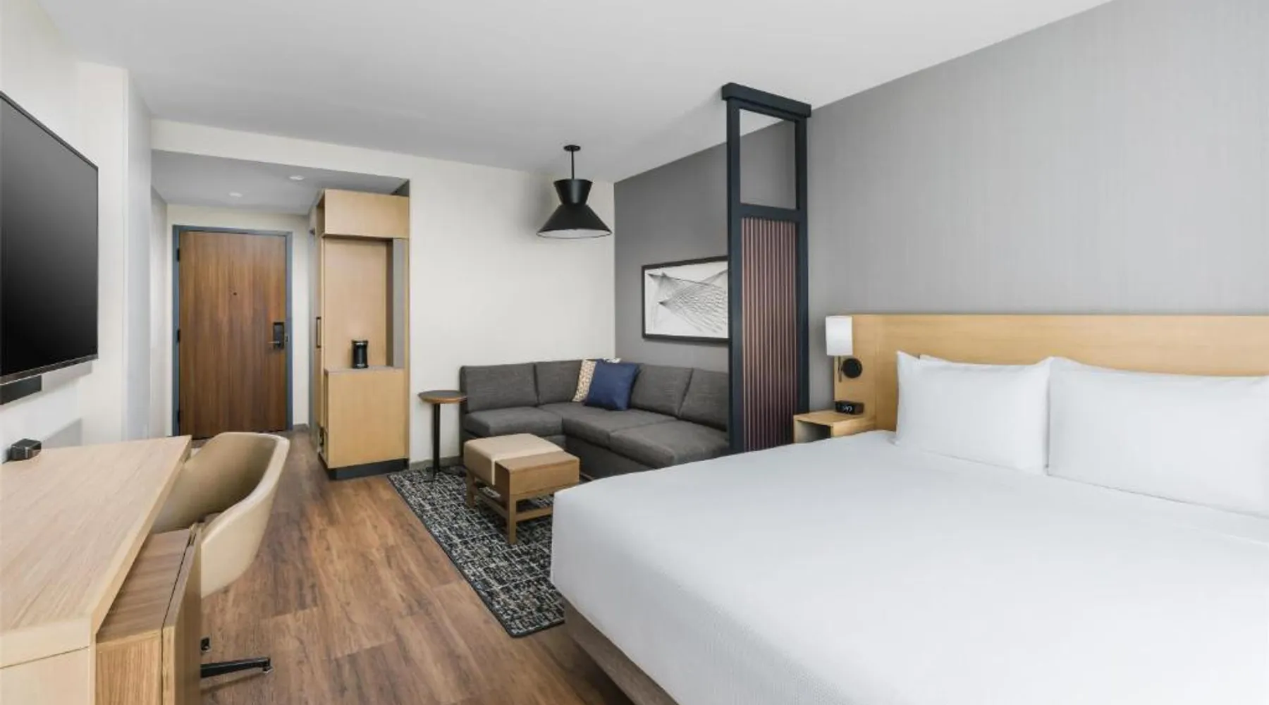 Comfortable Accommodations: Hyatt Place National Harbor in National Harbor offers family rooms with air-conditioning, private bathrooms, and modern amenities. Each room includes a tea and coffee maker, hairdryer, refrigerator, and free toiletries. Dining and Leisure: The hotel features a fitness center, terrace, restaurant, and bar. Guests can enjoy American and seafood cuisines in a family-friendly, traditional, modern, or romantic ambiance. Breakfast is served as an American buffet. Convenient Location: Located 8.1 mi from Ronald Reagan Washington National Airport, the hotel is a 1-minute walk from National Harbor. Nearby attractions include Alexandria's Christ Church (3.7 mi) and Nationals Park (6.8 mi). Guests appreciate the attentive staff and excellent service. This air-conditioned family room includes a flat-screen TV with cable channels and a private bathroom. The unit offers 3 beds.