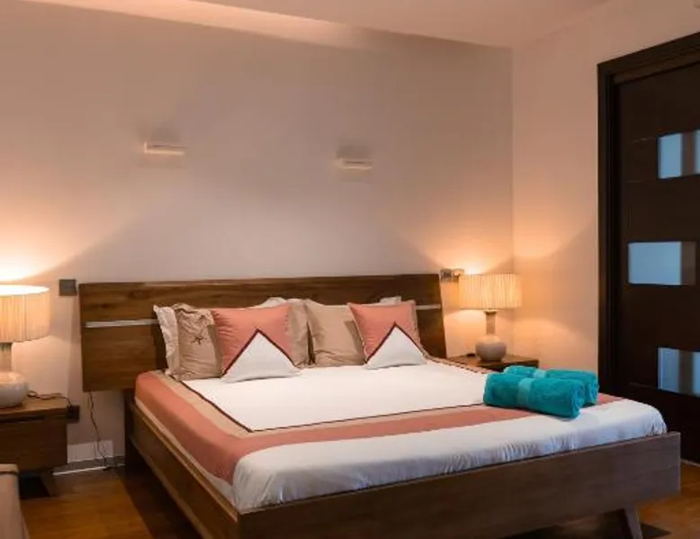 Beachfront Location: Villa Jessivia Beach in Moorea offers direct beachfront access with a private beach area. Guests enjoy sea views and a serene setting with an infinity swimming pool and sun terrace. Spacious Accommodations: The villa features four bedrooms and five bathrooms, including a living room. Recently renovated, it provides a comfortable and spacious environment with modern amenities. Leisure Facilities: Amenities include a games room, outdoor seating area, and a coffee shop. Free WiFi is available throughout the property, ensuring connectivity for all guests. Convenient Services: The property offers a paid airport shuttle service, concierge, and tour desk. Additional services include bike and car hire, allowing guests to explore the surroundings. This villa features king-size beds.