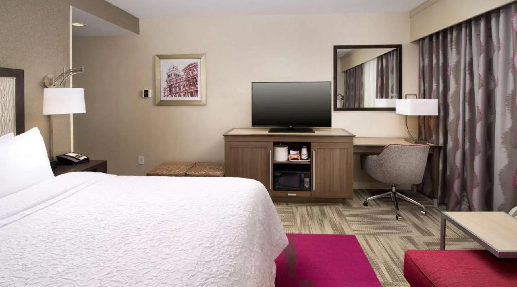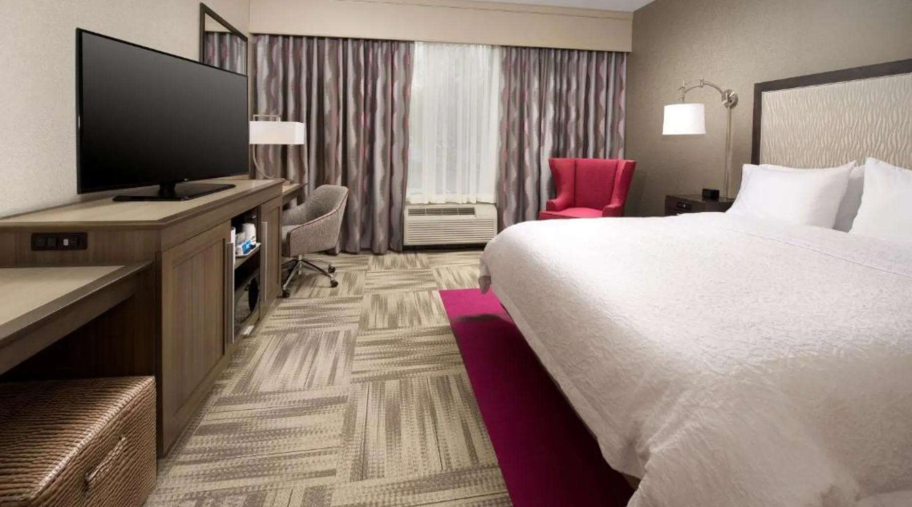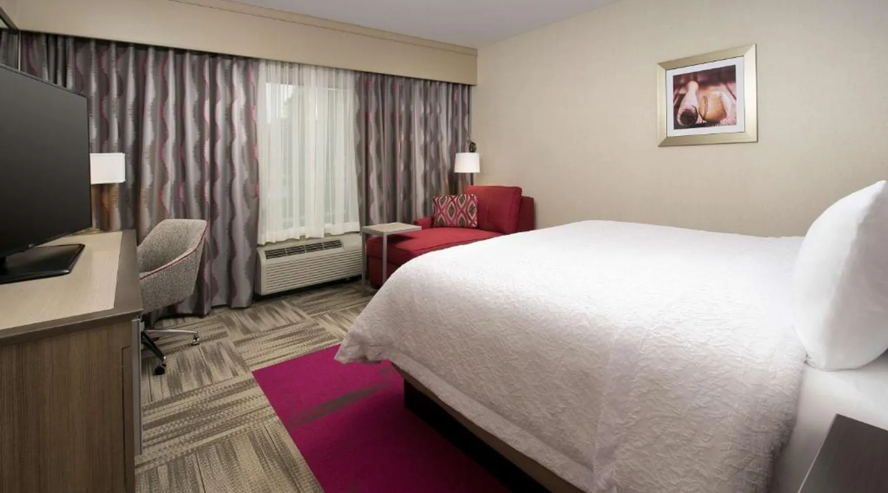Comfortable Accommodations: Hampton Inn Huntsville/Village of Providence in Huntsville offers family rooms with free WiFi, a fitness center, and a lounge. Guests enjoy amenities such as a minimarket, electric vehicle charging station, and free on-site parking. Delicious Breakfast: A continental buffet breakfast is served daily, featuring warm dishes, fresh pastries, pancakes, fruits, and juice. The hotel ensures a pleasant start to the day with a variety of options. Convenient Location: Located 11 mi from Huntsville International Airport, the hotel is near attractions like Southern Adventures (8.7 mi) and Oakwood University (2.7 mi). Guests appreciate the room cleanliness and the hotel’s suitability for city trips. This double room offers a tea and coffee maker and a flat-screen TV. The unit offers 1 bed.