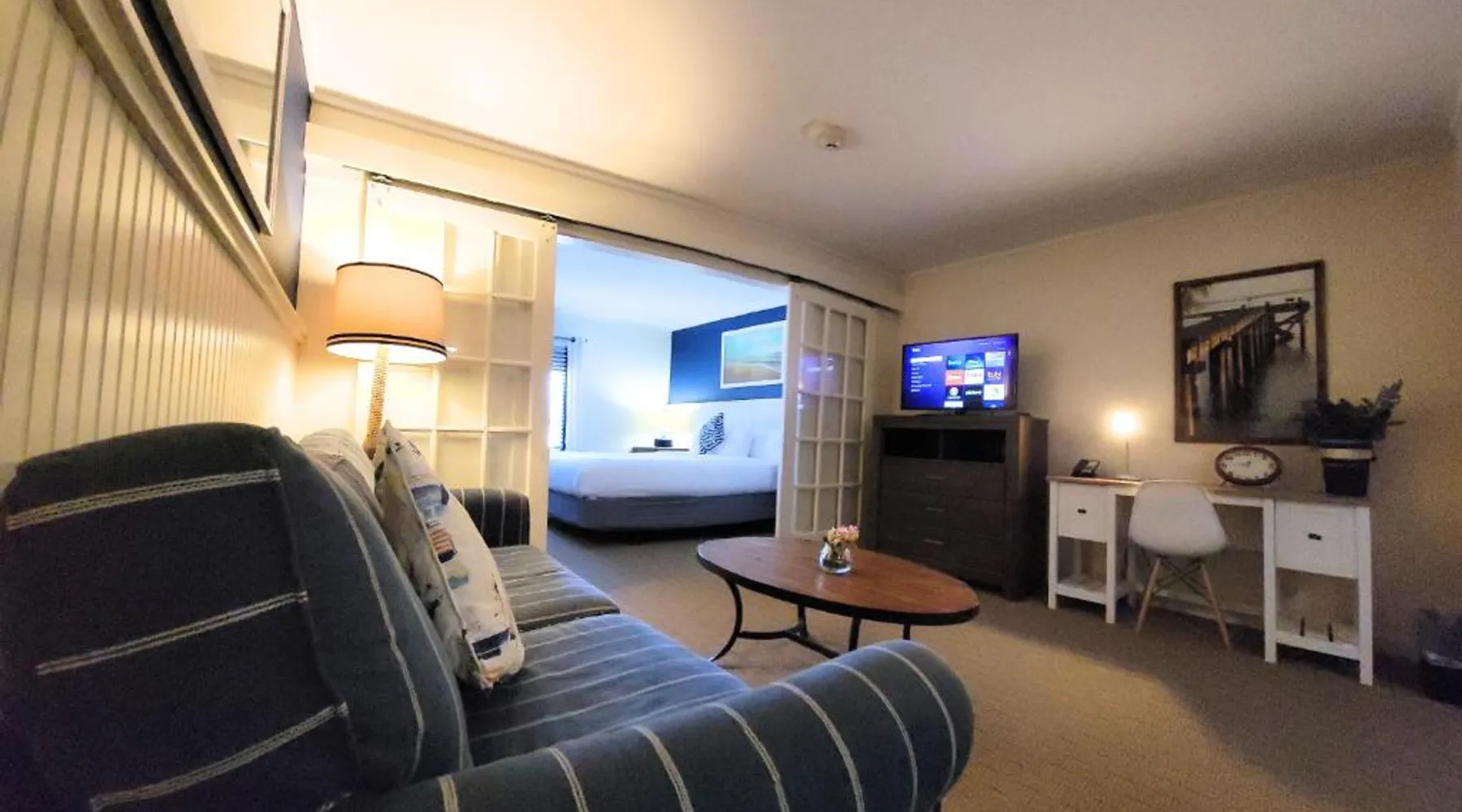 The Circle Hotel Fairfield offers visitors the charm and historic character of a New England hotel. The hotel features ADA compliant rooms and facilities. Circle Hotel Fairfield offers amenities including in-room WiFi, Roku Streaming Services, mini-refrigerators, and an outdoor terrace. Business travelers appreciate the convenience of free high-speed Internet access, two private meeting rooms (subject to availability) and access to copy and fax services. The Circle Hotel Fairfield is located on the Post Road at the Circle, in the heart of Fairfield – minutes from Interstate 95 and Metro North train station, and convenient to local beaches, golf courses, shops, and parks. In addition to housing the Circle Diner on-site, there are a variety of fine restaurants in the area. This suite has features air conditioning and a seating area.
