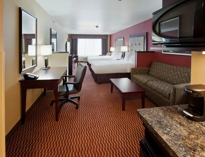 Located 5 miles from the Charles M. Russell Museum in Great Falls, Montana, this hotel offers an indoor pool complete with a 140-foot waterslide and a gym. Free Wi-Fi is available in all guest rooms. Featuring a flat-screen TV with cable, all rooms at the Holiday Inn Express and Suites Great Falls come with tea and coffee making facilities. Each warmly decorated room includes a desk. A 24-hour front desk is available at the Great Falls Holiday Inn Express and Suites. There is also business center with fax and photocopying services. Laundry facilities are on site. Showcasing the rich history of the United States’ westward expansion, the Lewis & Clark National Historic Trail Interpretive Center is 7.5 miles from this hotel. The Paris Gibson Square Museum of Art is 5 miles away. The spacious double room offers air conditioning, a tea and coffee maker, as well as a private bathroom featuring a bath and a shower. The double room provides a wardrobe, a carpeted floor, heating, as well as a flat-screen TV with satellite channels. The unit offers 2 beds.