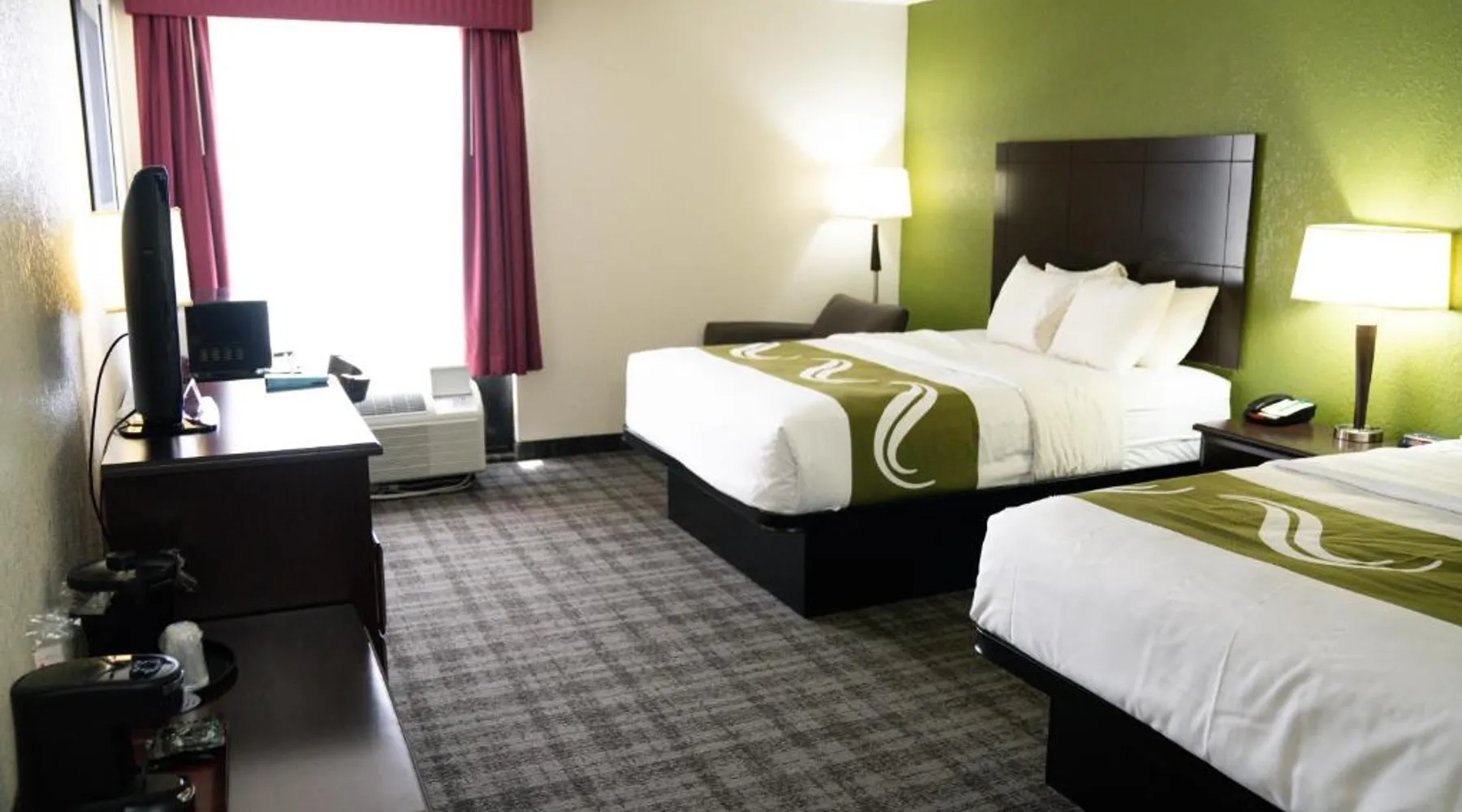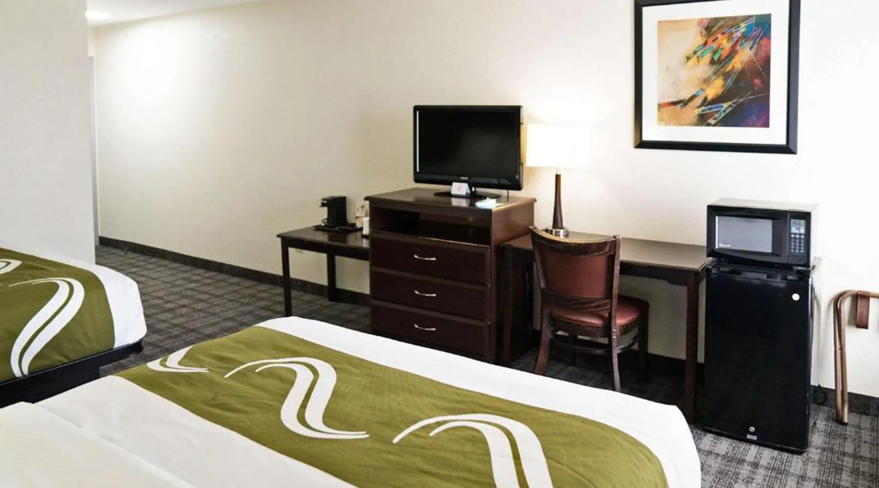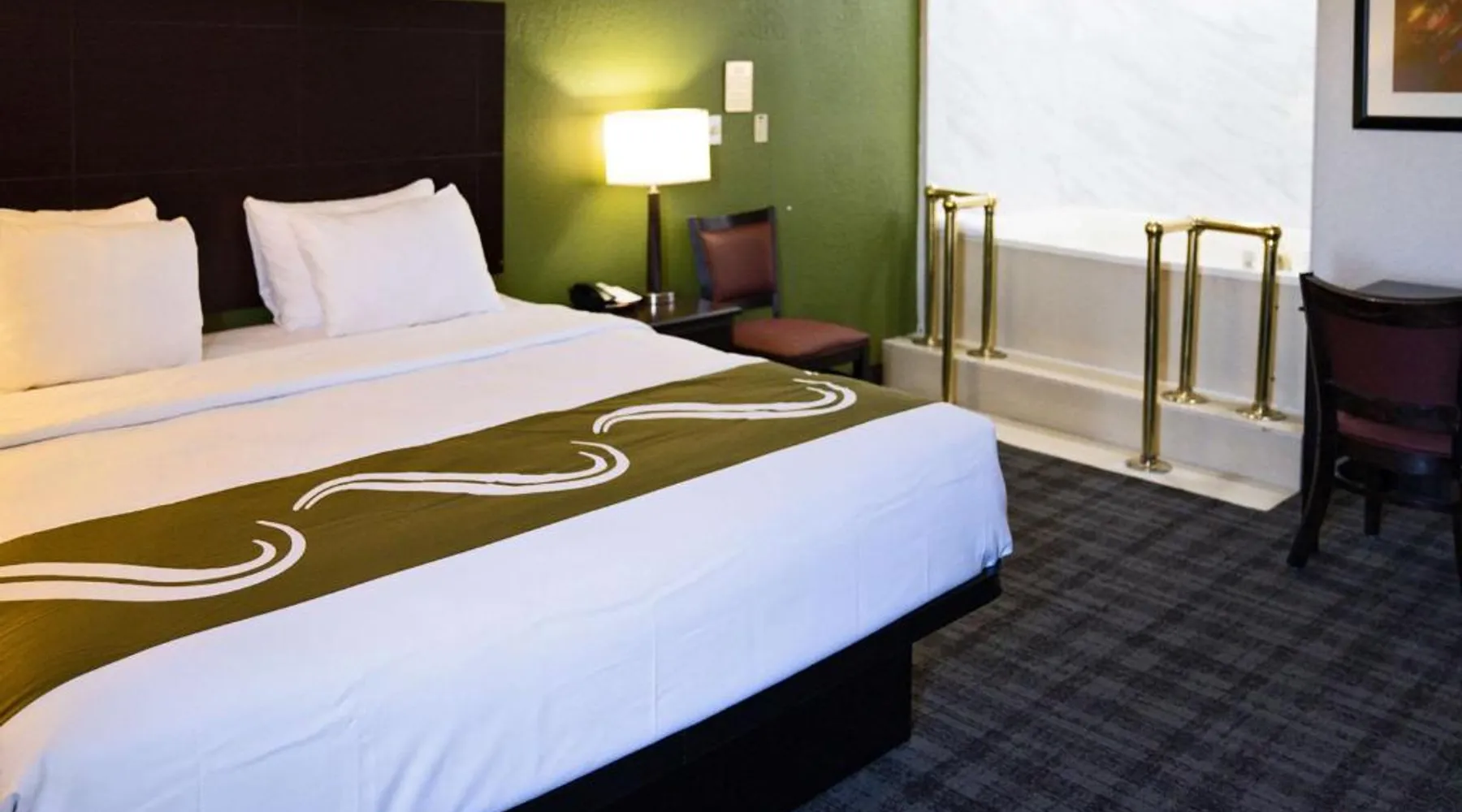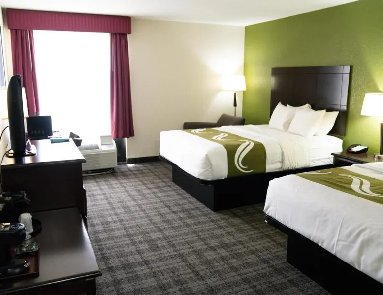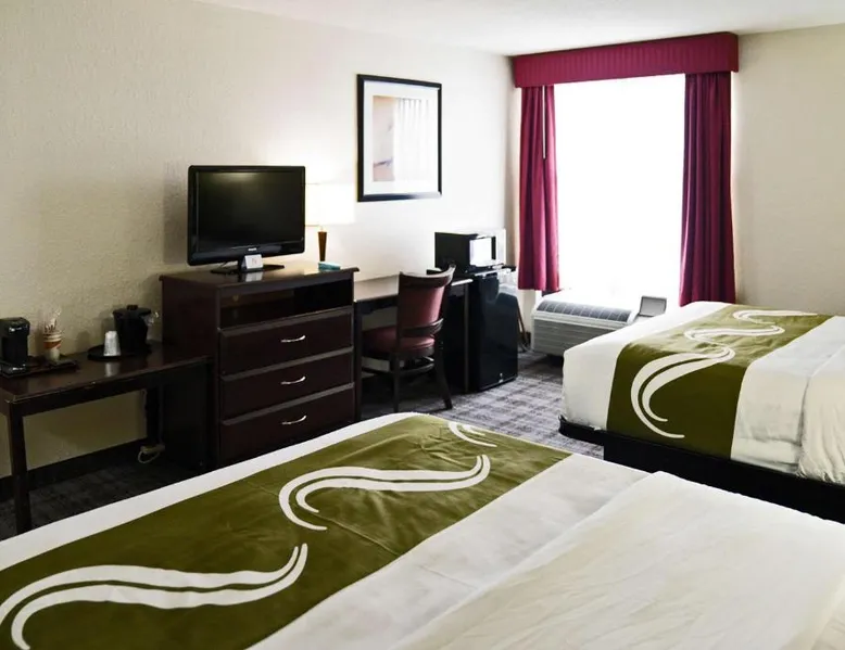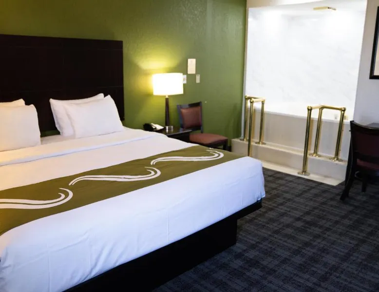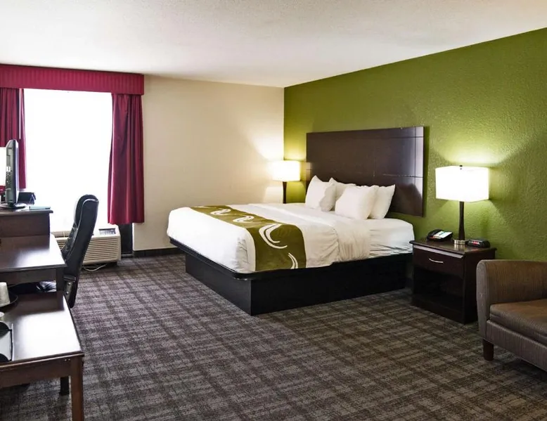 Almost midway between Indianapolis, IN and Louisville, KY, the Quality Inn hotel in Seymour, IN is your home for visiting the covered bridges of Jackson County. This hotel is near some of the most scenic covered bridges and the longest 3-span coved bridge in the United States, the Medora Covered Bridge. Other area attractions include:Jackson County Round Barns, Chateau de Pique Winery and Freeman Airfield Museum. Close to shopping, businesses and restaurants, the hotel features an indoor heated pool, meeting rooms and an exercise room. Other amenities include: Free breakfast, free high-speed wireless Internet, free weekday newspaper and free local calls. All spacious guest rooms include cable television, hair dryer, iron and ironing board. Some rooms offer a whirlpool bath tub, microwave, refrigerator, desk and sofabed. Business travelers will appreciate conveniences like three meeting rooms, a computer with Internet and access to copy and fax services. The hotel now accepts Corporate Lodging cards. The hotel has nonsmoking rooms. A Guest laundry service is available. This is a pet-friendly hotel, and pets may stay with their owner for a fee. The spacious double room offers air conditioning, a coffee machine, as well as a private bathroom featuring a shower and a hairdryer. The double room features a TV with cable channels, a wardrobe, a carpeted floor and heating. The unit offers 1 bed.