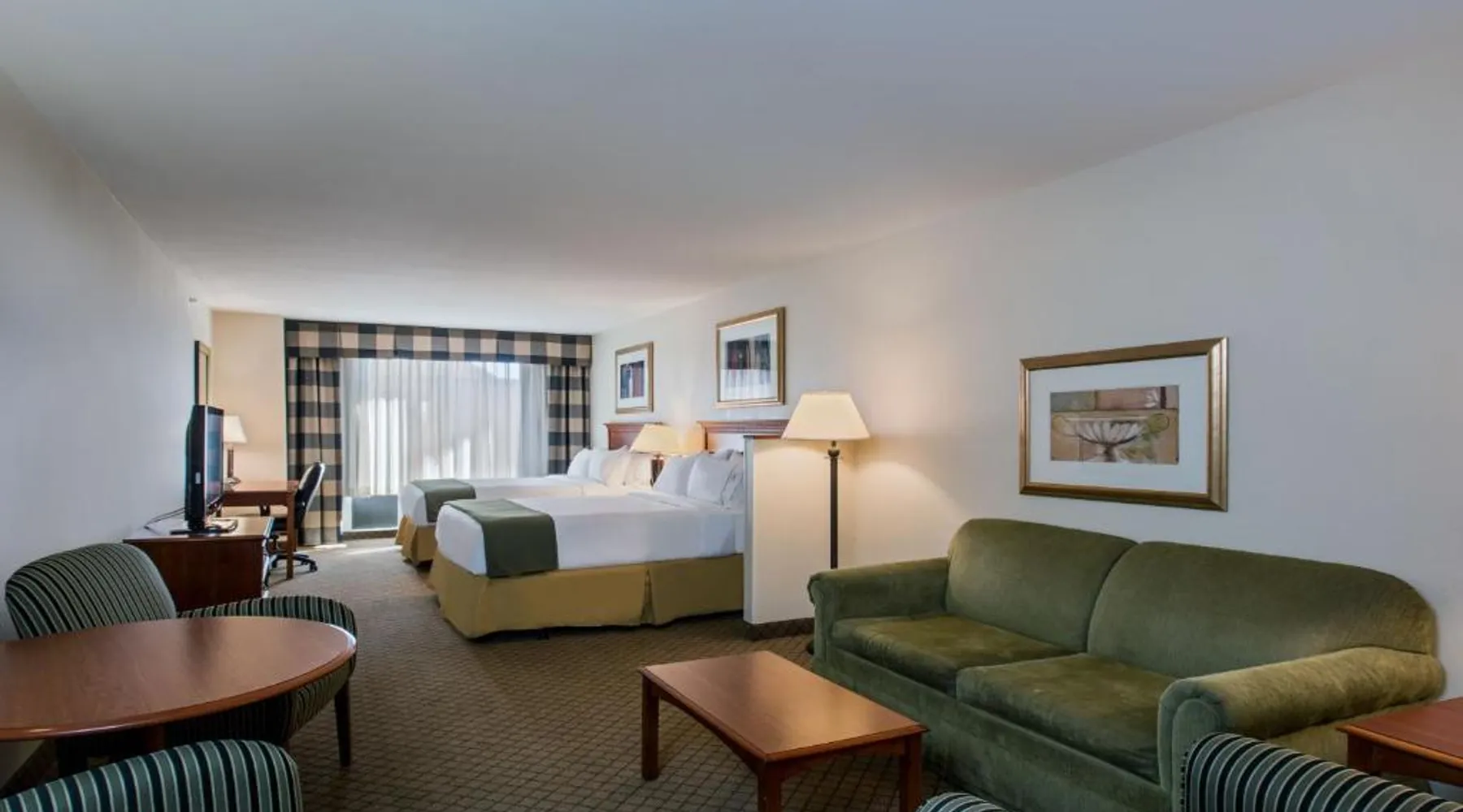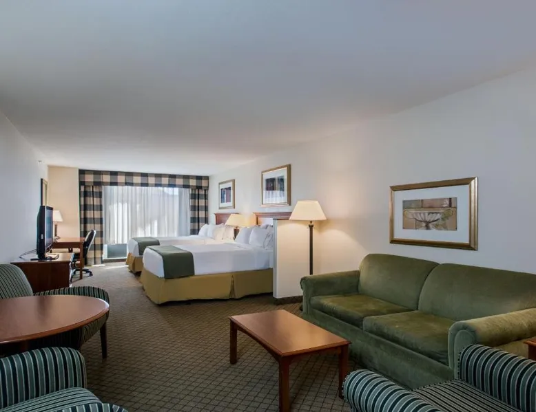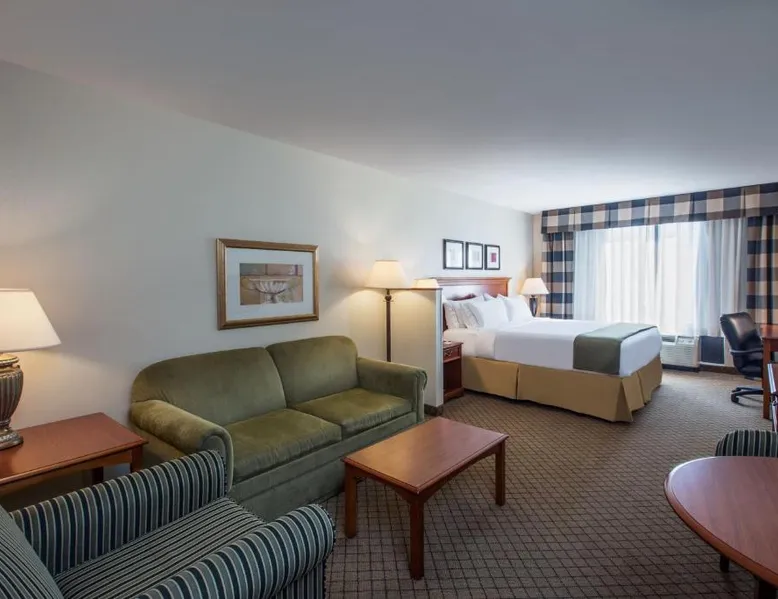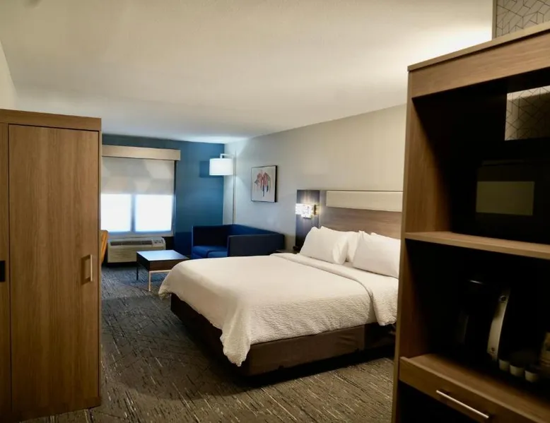 Comfortable Accommodations: Holiday Inn Express Hotel & Suites Jackson - Flowood by IHG in Flowood offers air-conditioned rooms with private bathrooms, baths, tea and coffee makers, carpeted floors, and TVs. Additional amenities include hairdryers, sofa beds, refrigerators, work desks, and free toiletries. Exceptional Facilities: Guests can enjoy a fitness center, seasonal outdoor swimming pool, and free WiFi. The hotel provides a elevator, 24-hour front desk, daily housekeeping, business area, outdoor seating, and express check-in and check-out services. Convenient Location: Located 0.6 mi from Jackson-Evers Airport, the hotel is near attractions such as Mississippi Coliseum (8.7 mi), Mississippi Veterans Memorial Stadium (6.8 mi), and Hilltop Painted Acres (6.2 mi). Guests appreciate the breakfast provided by the property, room cleanliness, and convenient location. This room features a cable TV, desk, and seating area. A microwave and refrigerator are included as well as an private bathroom with a hairdryer.
