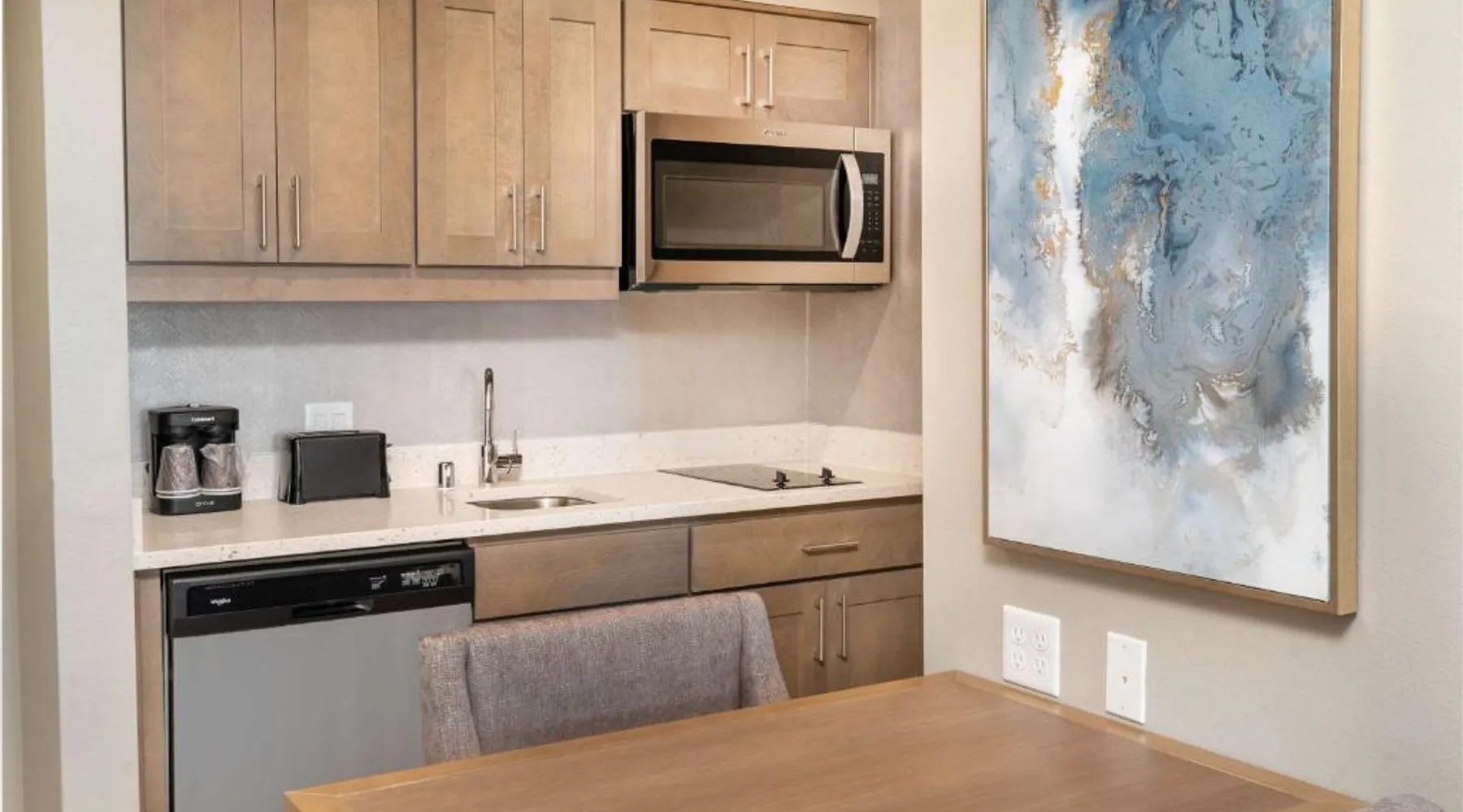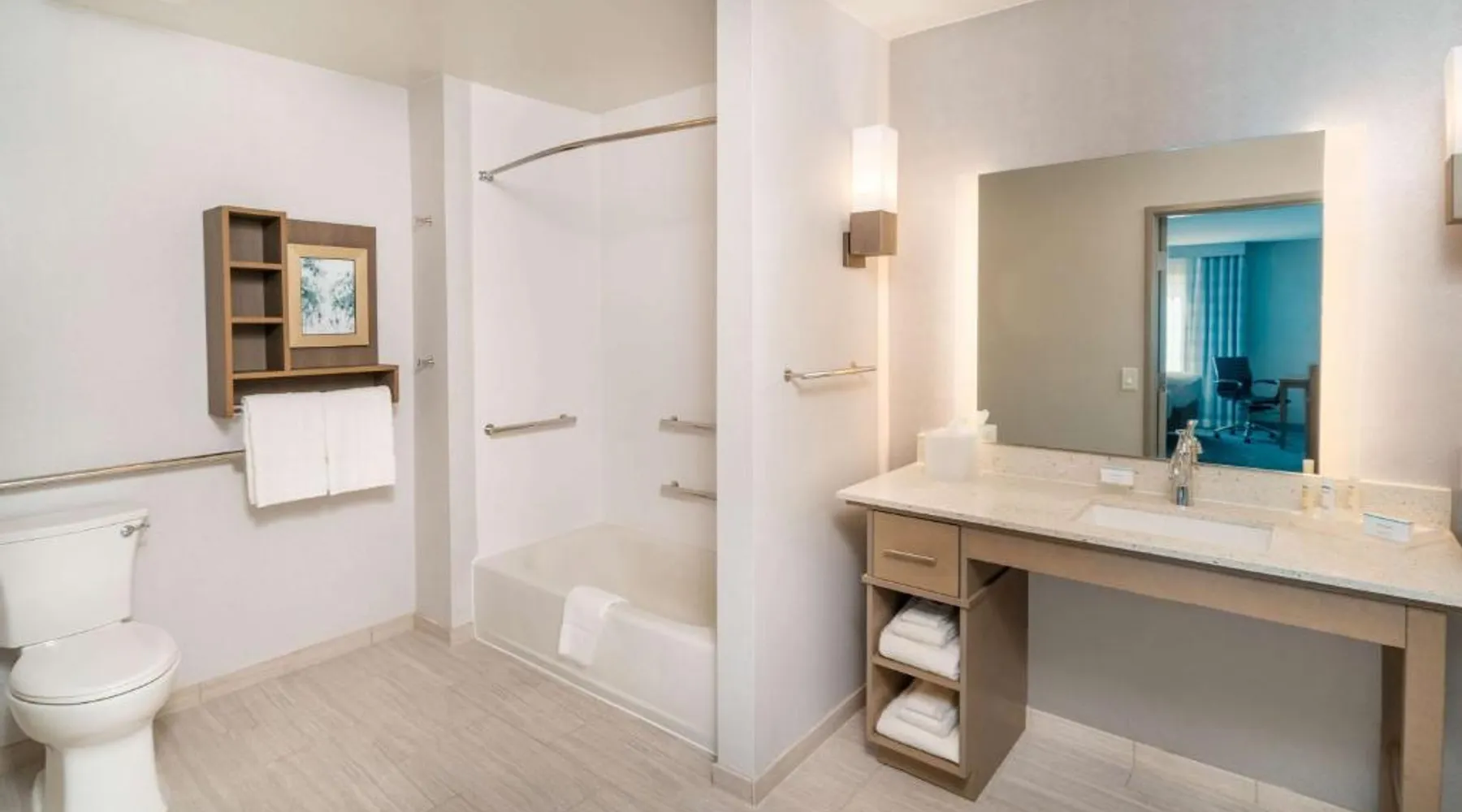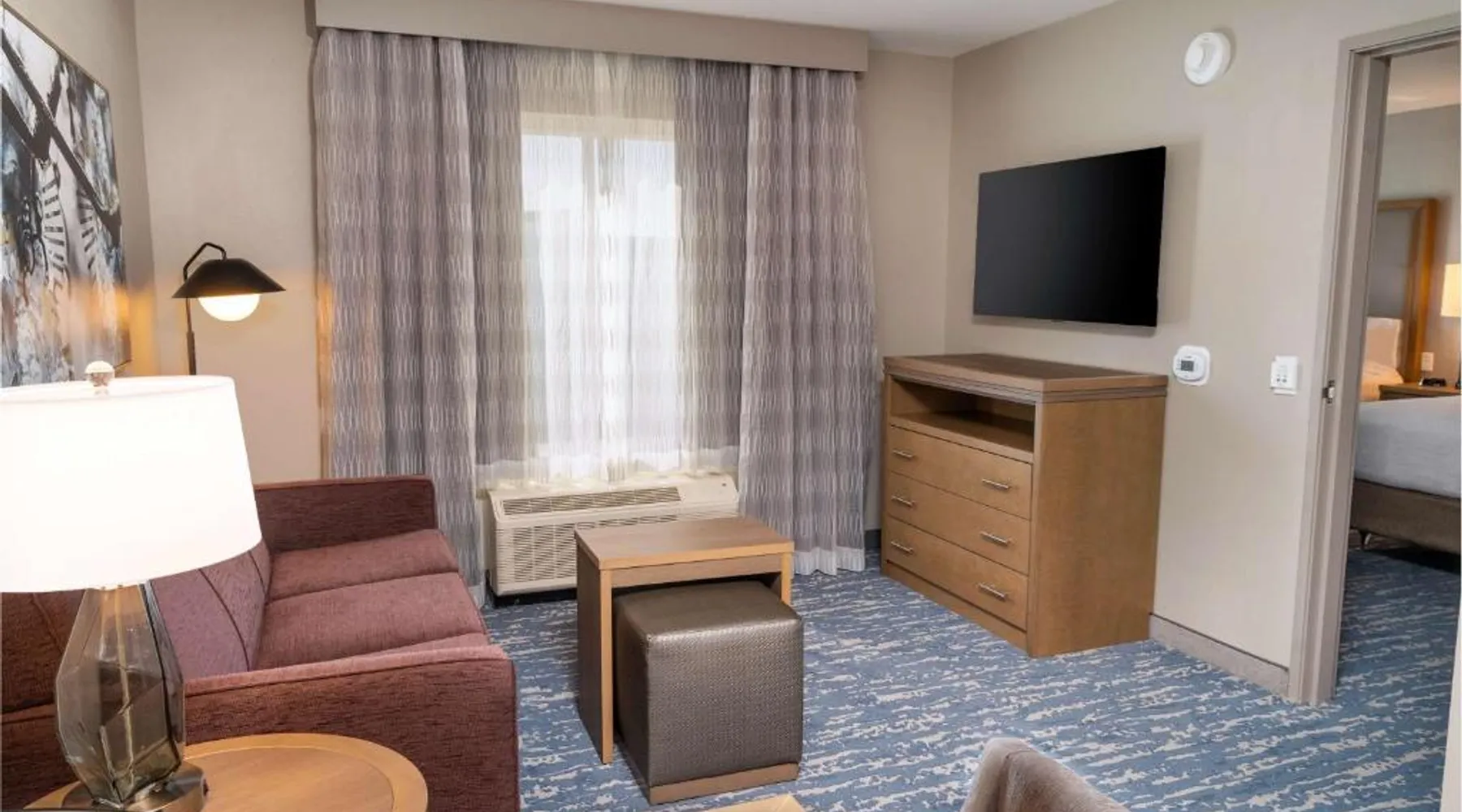 Comfortable Accommodations: Homewood Suites By Hilton Livermore, CA in Livermore offers family rooms with air-conditioning, kitchenettes, and private bathrooms. Each room includes a work desk, sofa bed, and free WiFi. Exceptional Facilities: Guests enjoy an indoor swimming pool, fitness room, and outdoor fireplace. Additional amenities include a lounge, minimarket, electric vehicle charging station, and outdoor seating area. Delicious Breakfast: A variety of breakfast options are available, including continental, American, buffet, Ã la carte, vegetarian, and gluten-free. Local specialties, warm dishes, fresh pastries, and juice are served. Prime Location: Located 22 mi from San Francisco Bay Oakland International Airport, the hotel is near Oakland Coliseum (23 mi) and Oakland Museum of California (28 mi). Guests appreciate nearby shops and the convenient location. The spacious suite provides air conditioning, a tea and coffee maker, as well as a private bathroom featuring a walk-in shower and a bath or a shower. Guests can make meals in the kitchen that is equipped with a stovetop, a refrigerator, a dishwasher and kitchenware. The suite features carpeted floors, a seating area with a flat-screen TV with streaming services, a wardrobe, a sofa, as well as heating. The unit offers 2 beds.