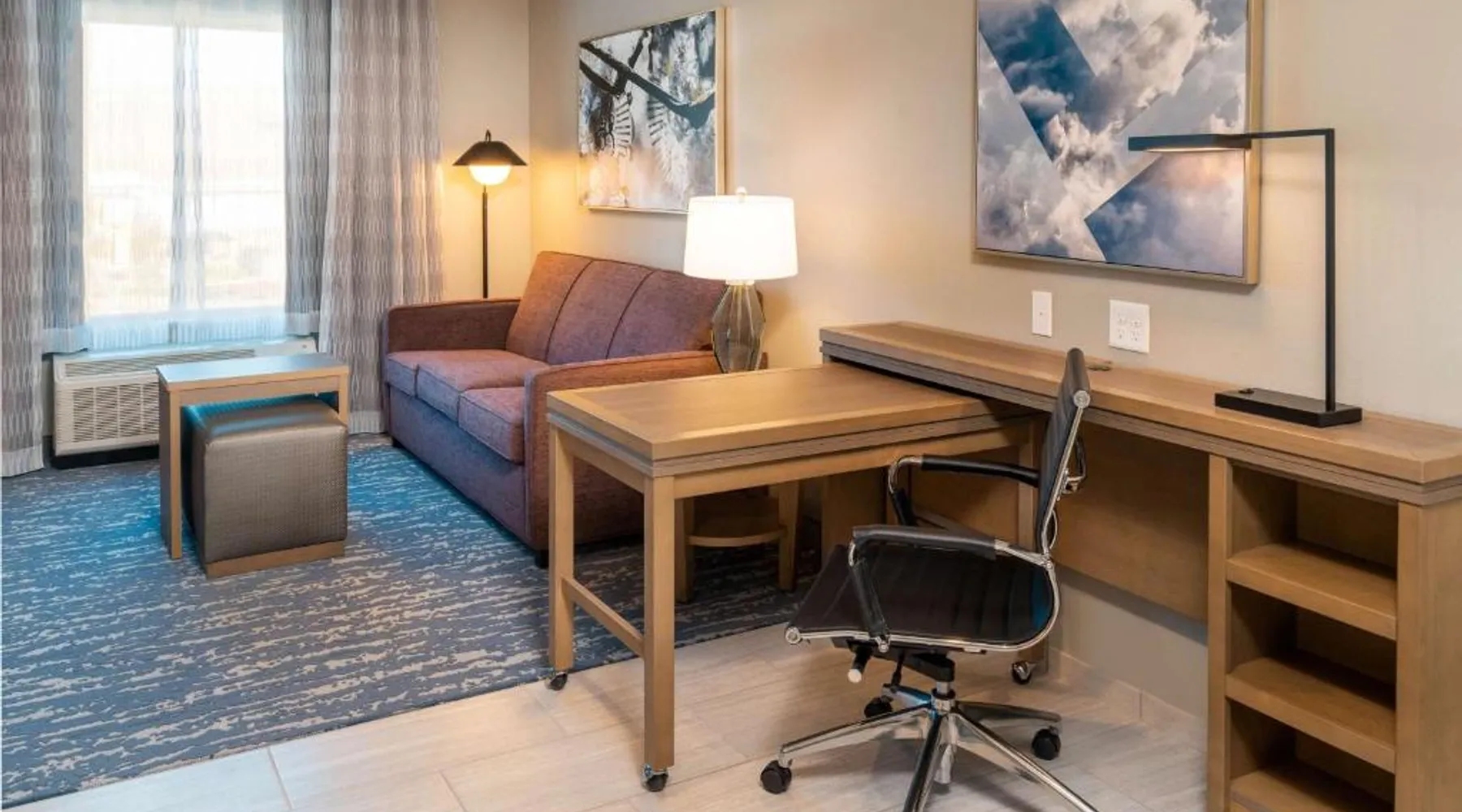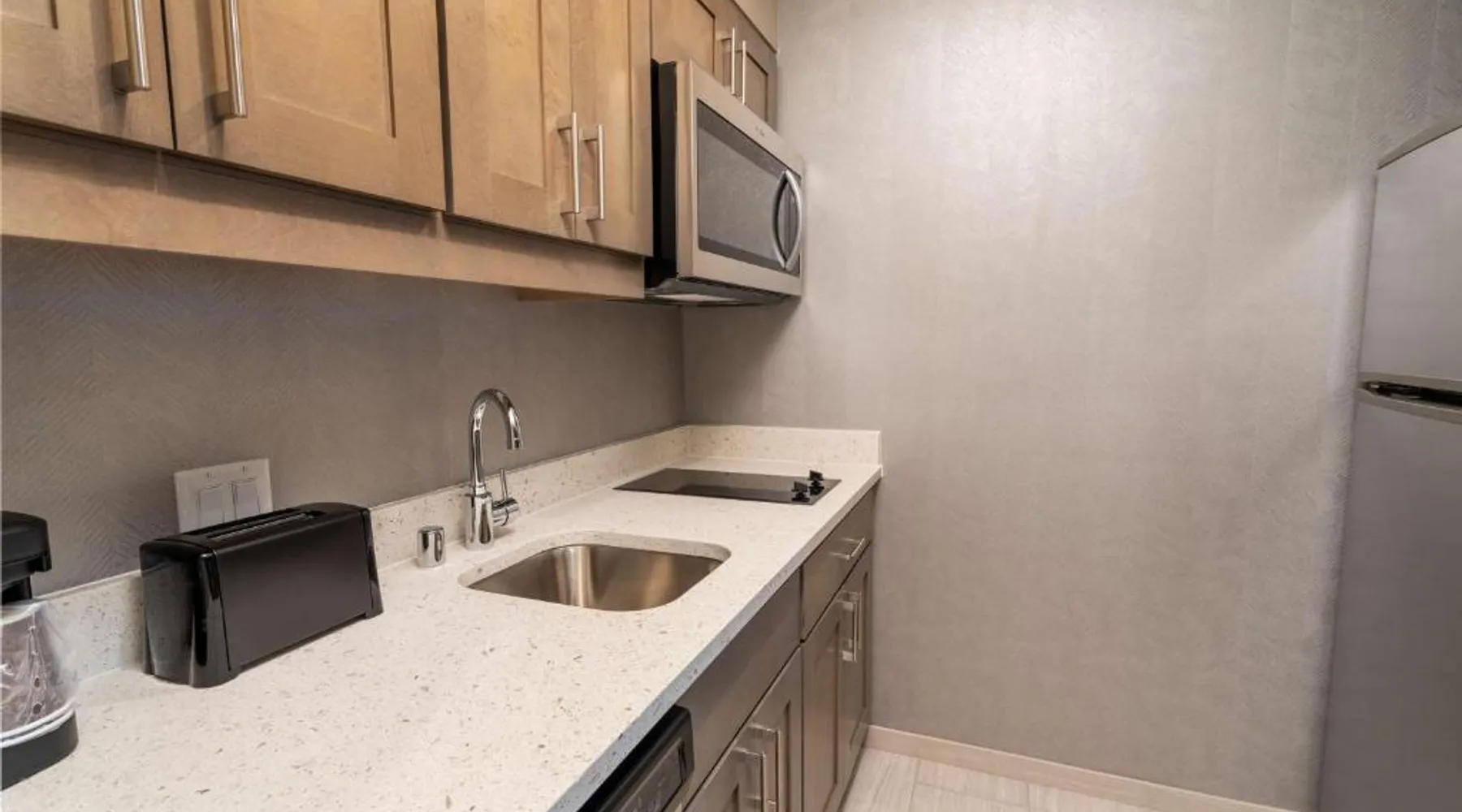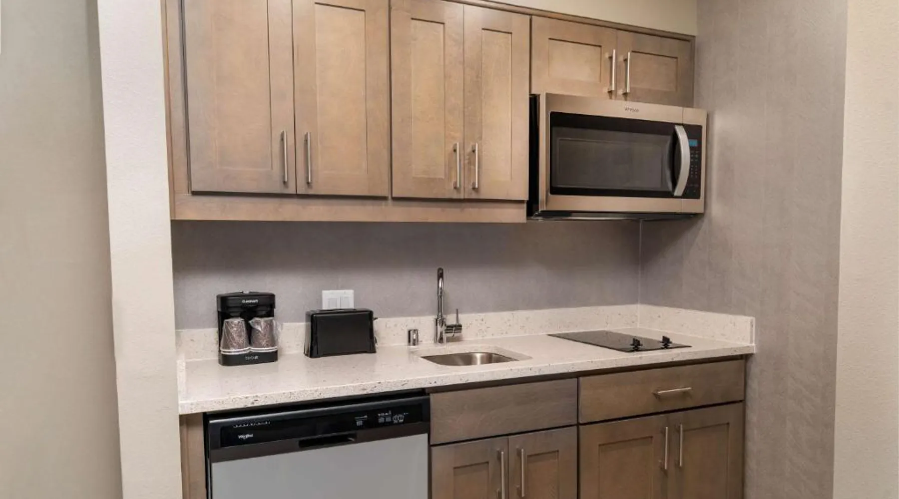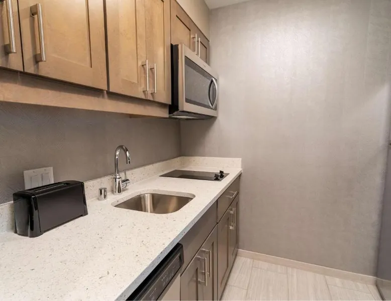 Comfortable Accommodations: Homewood Suites By Hilton Livermore, CA in Livermore offers family rooms with air-conditioning, kitchenettes, and private bathrooms. Each room includes a work desk, sofa bed, and free WiFi. Exceptional Facilities: Guests enjoy an indoor swimming pool, fitness room, and outdoor fireplace. Additional amenities include a lounge, minimarket, electric vehicle charging station, and outdoor seating area. Delicious Breakfast: A variety of breakfast options are available, including continental, American, buffet, Ã la carte, vegetarian, and gluten-free. Local specialties, warm dishes, fresh pastries, and juice are served. Prime Location: Located 22 mi from San Francisco Bay Oakland International Airport, the hotel is near Oakland Coliseum (23 mi) and Oakland Museum of California (28 mi). Guests appreciate nearby shops and the convenient location. The spacious suite provides air conditioning, a tea and coffee maker, as well as a private bathroom featuring a walk-in shower and a bath or a shower. Guests can make meals in the kitchen that is equipped with a stovetop, a refrigerator, a dishwasher and kitchenware. The suite features carpeted floors, a seating area with a flat-screen TV with streaming services, a wardrobe, a sofa, as well as heating. The unit offers 2 beds.