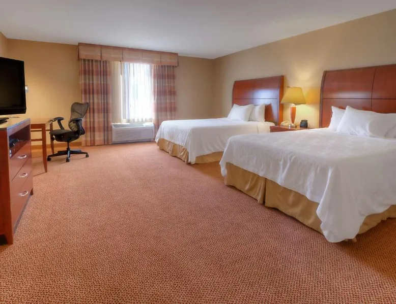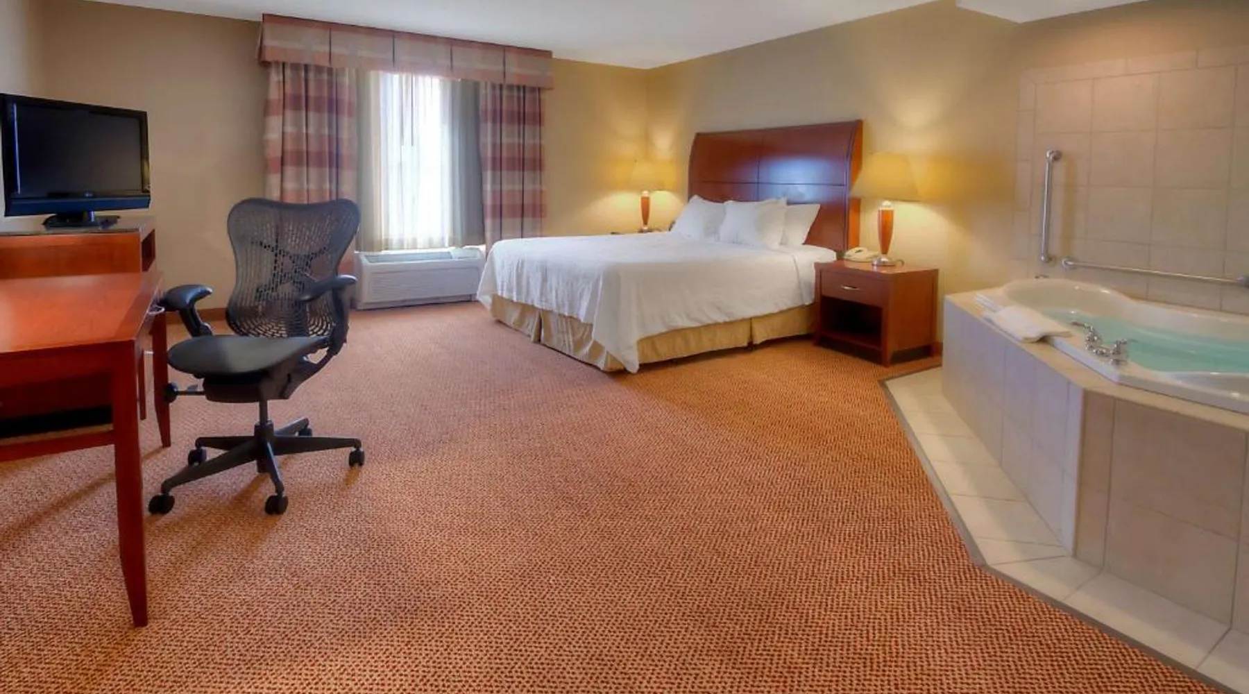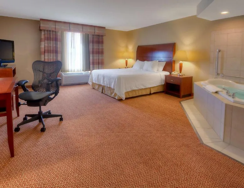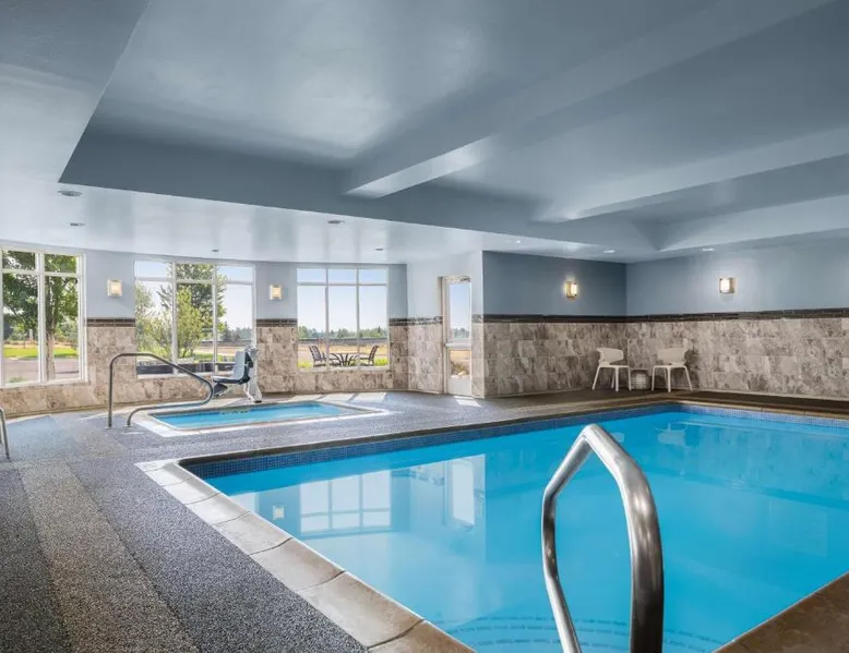 Comfortable Accommodations: Hilton Garden Inn Great Falls in Great Falls offers family rooms with air-conditioning, free WiFi, and modern amenities. Each room includes a work desk, refrigerator, and TV. Dining and Leisure: The hotel features a family-friendly restaurant serving American cuisine in a modern ambiance. Guests can also enjoy a bar and terrace. Additional facilities include an indoor swimming pool, hot tub, and fitness center. Convenient Services: The property offers a free airport shuttle service, 24-hour front desk, and free on-site parking. Guests benefit from room service and a elevator for easy access. Location and Attractions: Located 3.1 mi from Great Falls International Airport, the hotel is near attractions such as the Lewis and Clark Interpretive Center and Giant Springs State Park. Features a separate seating area with a sofa bed. Also provides a microwave, fridge and free Wi-Fi.