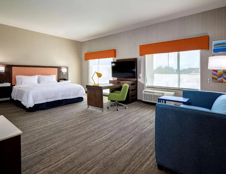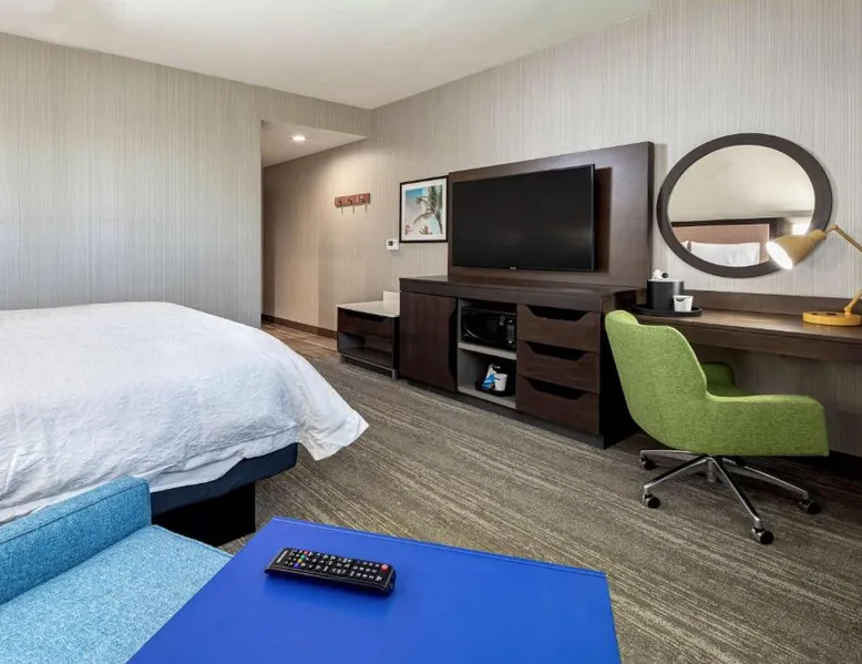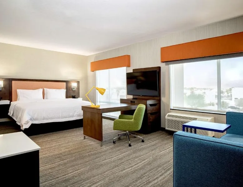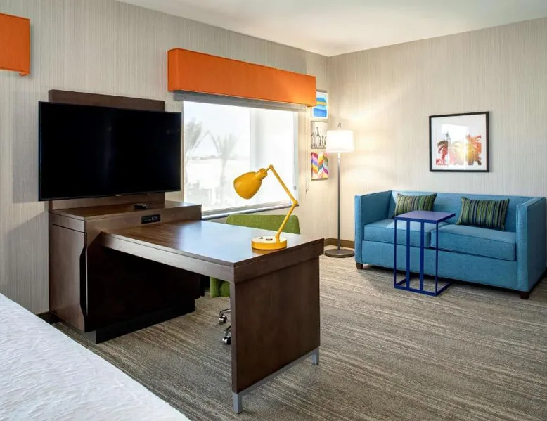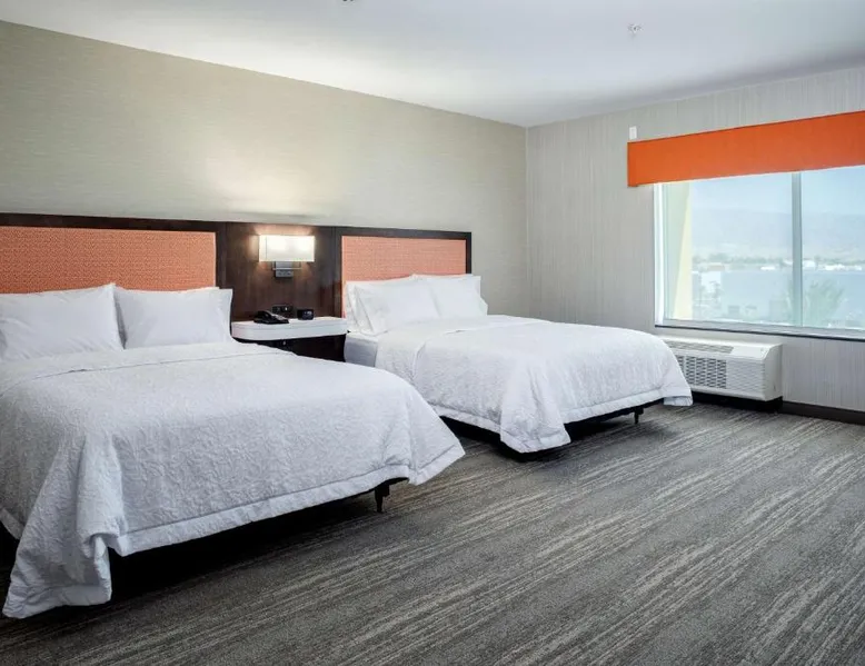 Comfortable Accommodations: Hampton Inn & Suites Indio in Indio offers family rooms with air-conditioning, free WiFi, and amenities such as a fitness center, outdoor swimming pool, and hot tub. Convenient Facilities: Guests can enjoy a fitness room, elevator, 24-hour front desk, electric vehicle charging station, and free off-site private parking. Additional amenities include a sofa bed and seating area. Delicious Breakfast: A buffet breakfast is served with warm dishes and juice, highly appreciated by guests for its quality and variety. Prime Location: Located 19 mi from Palm Springs International Airport, the hotel is near attractions like Saks Fifth Avenue Palm Desert (13 mi) and Living Desert Zoo Gardens (14 mi). Guests appreciate the room cleanliness and comfort. This double room has air conditioning, a tea and coffee maker and a flat-screen TV. The unit has 1 bed.