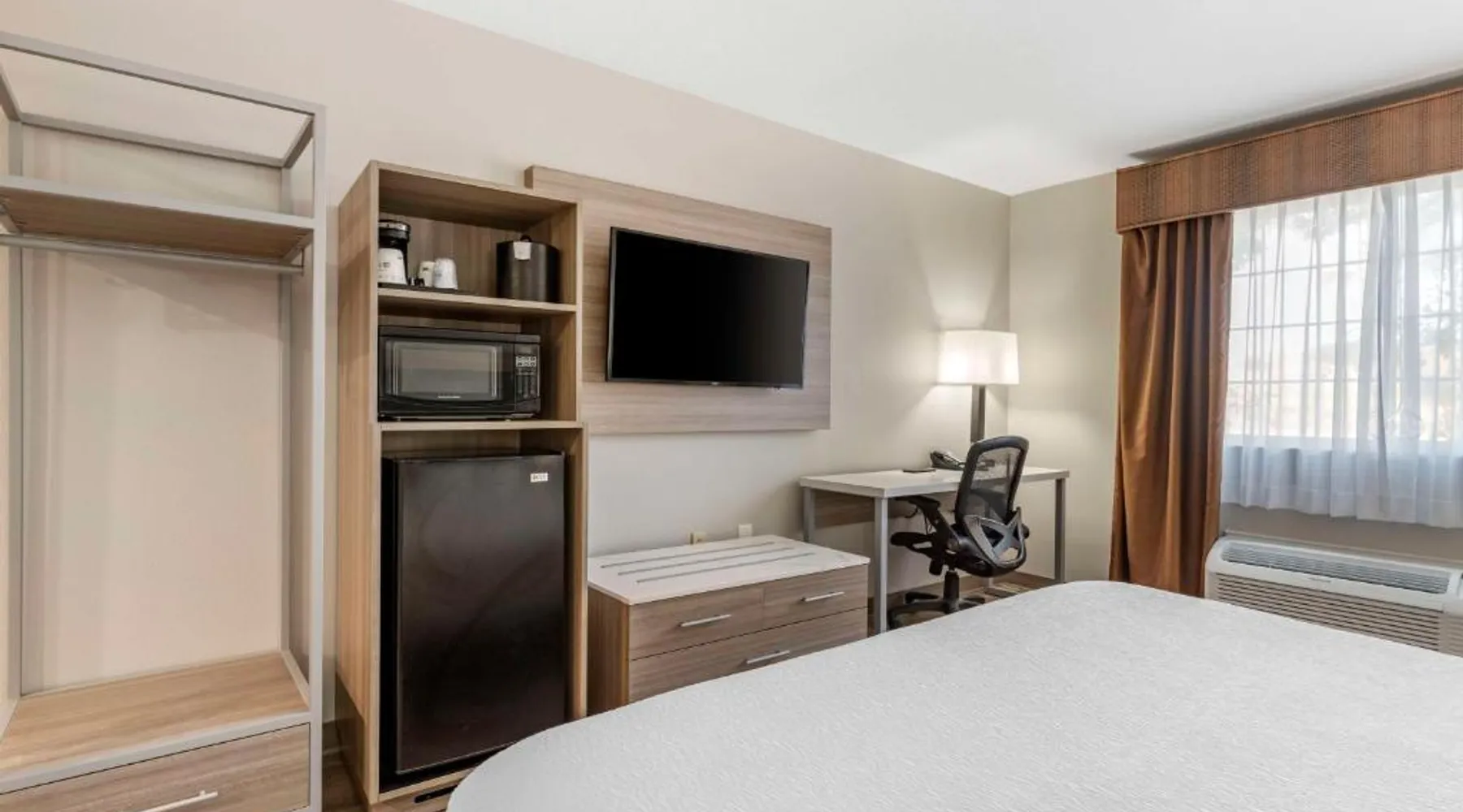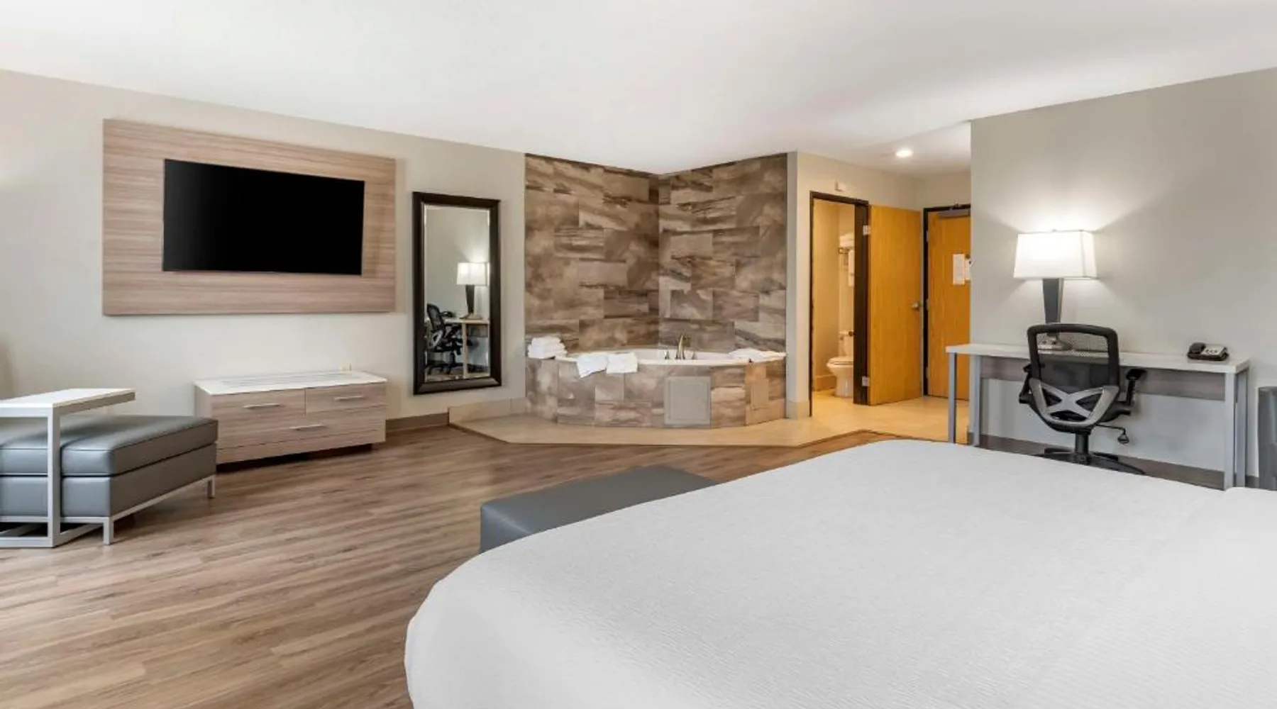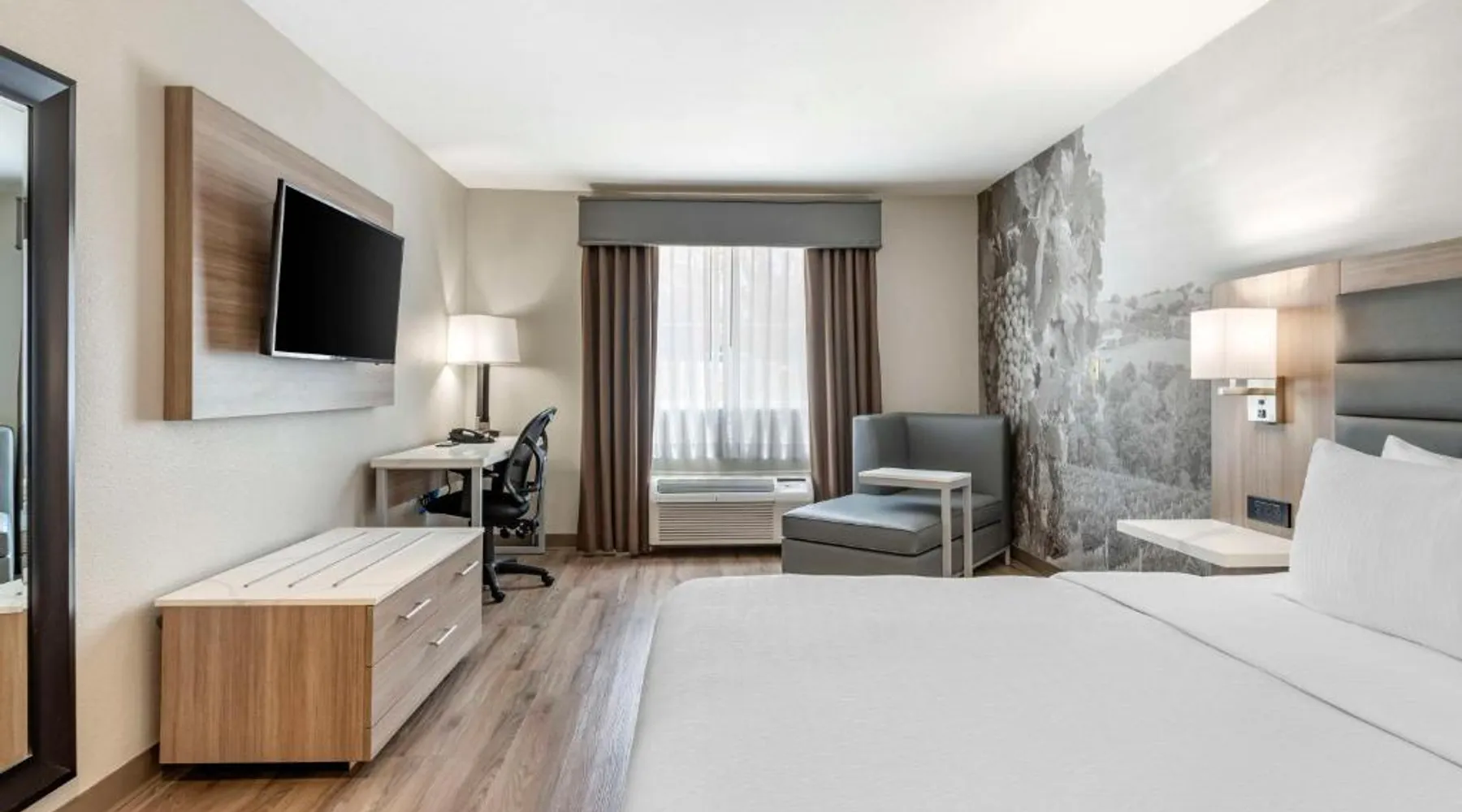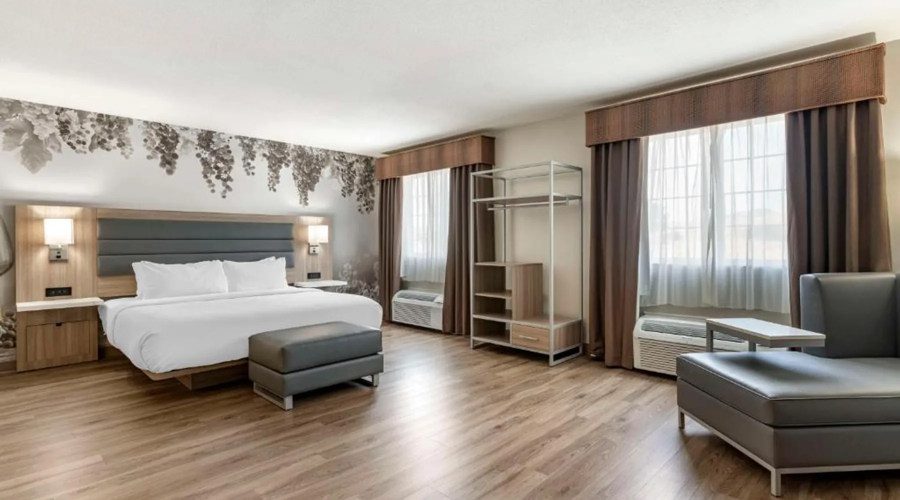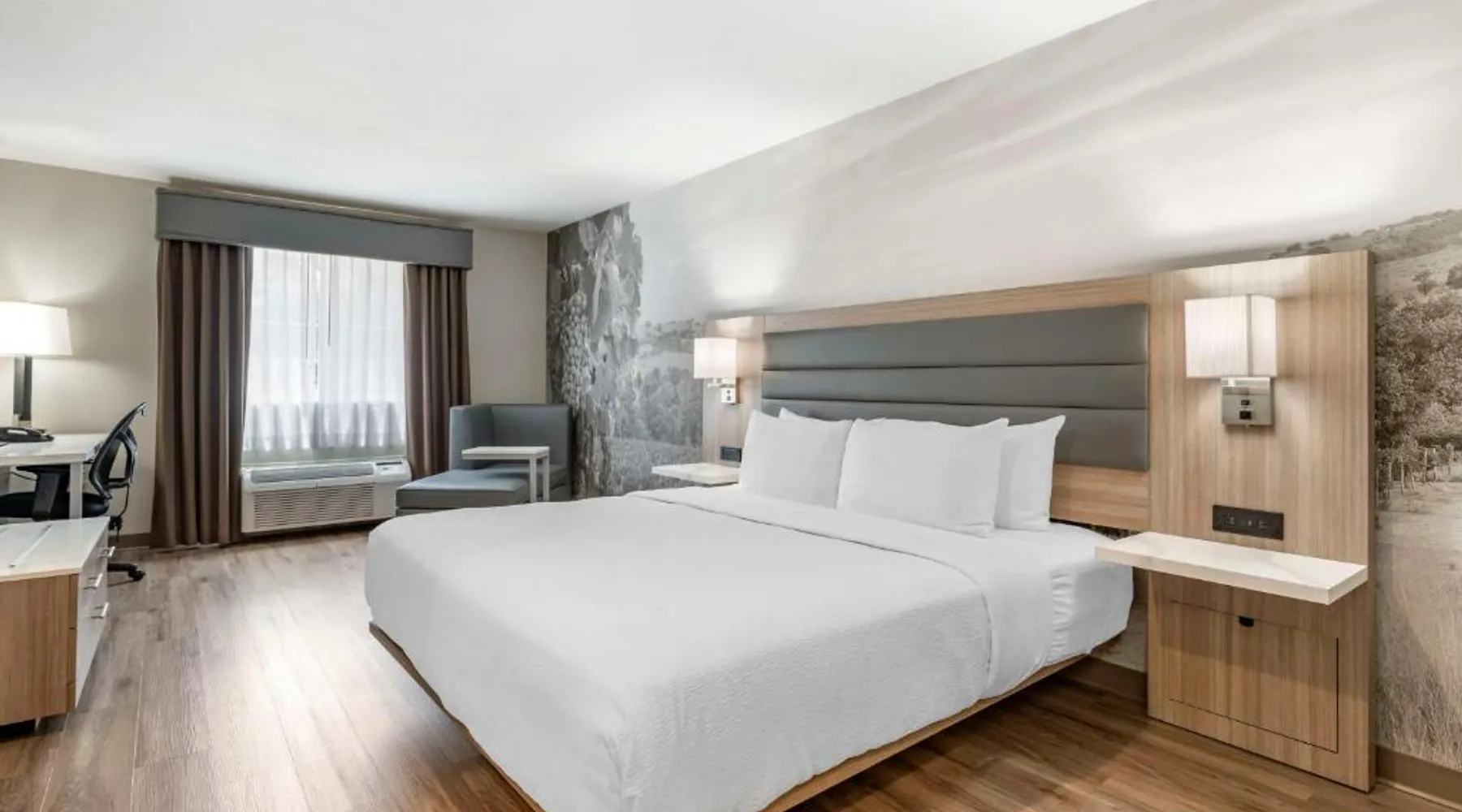 Located off Interstate 580, this Livermore hotel is within a 5 minute drive of 50 local wineries. It features an outdoor pool and a fitness center. All guest rooms come with free Wi-Fi. Guest rooms at Best Western Plus Vineyard Inn come with 42-inch HD TVs with over 150 channels and 7 premium movie channels. For convenience, they are furnished with a microwave and a refrigerator. A hairdryer and ironing facilities are provided. A business center and a guest laundromat are part of this smoke-free hotel. A deluxe continental breakfast featuring waffles and hot egg and sausage sandwiches is served every morning. A 24-hour front desk is available. The Lawrence Livermore National Laboratory is 2 miles from Vineyard Inn Best Western Plus. Altamont Speedway is a 15 minute drive away. The unit offers 1 bed.