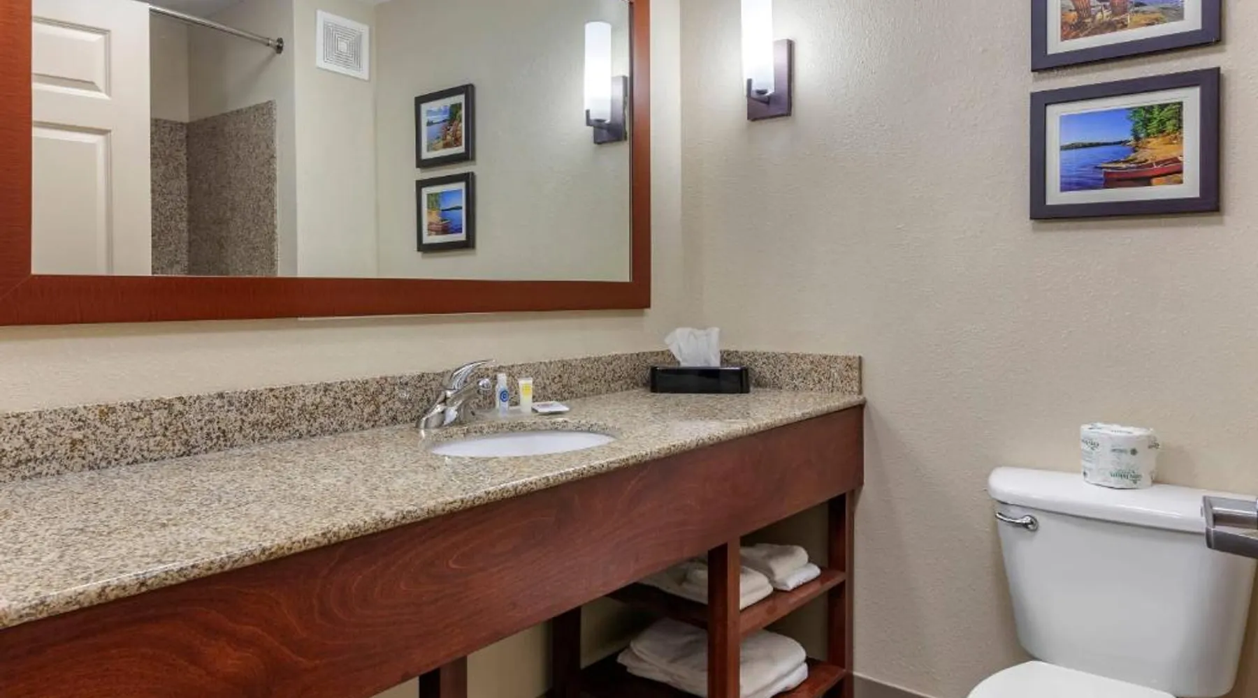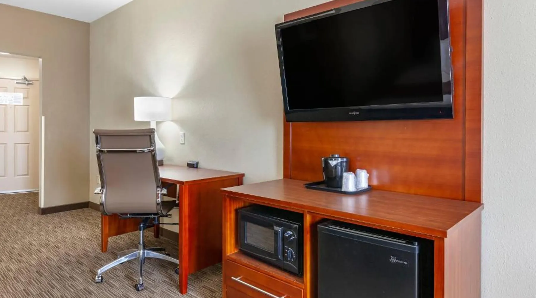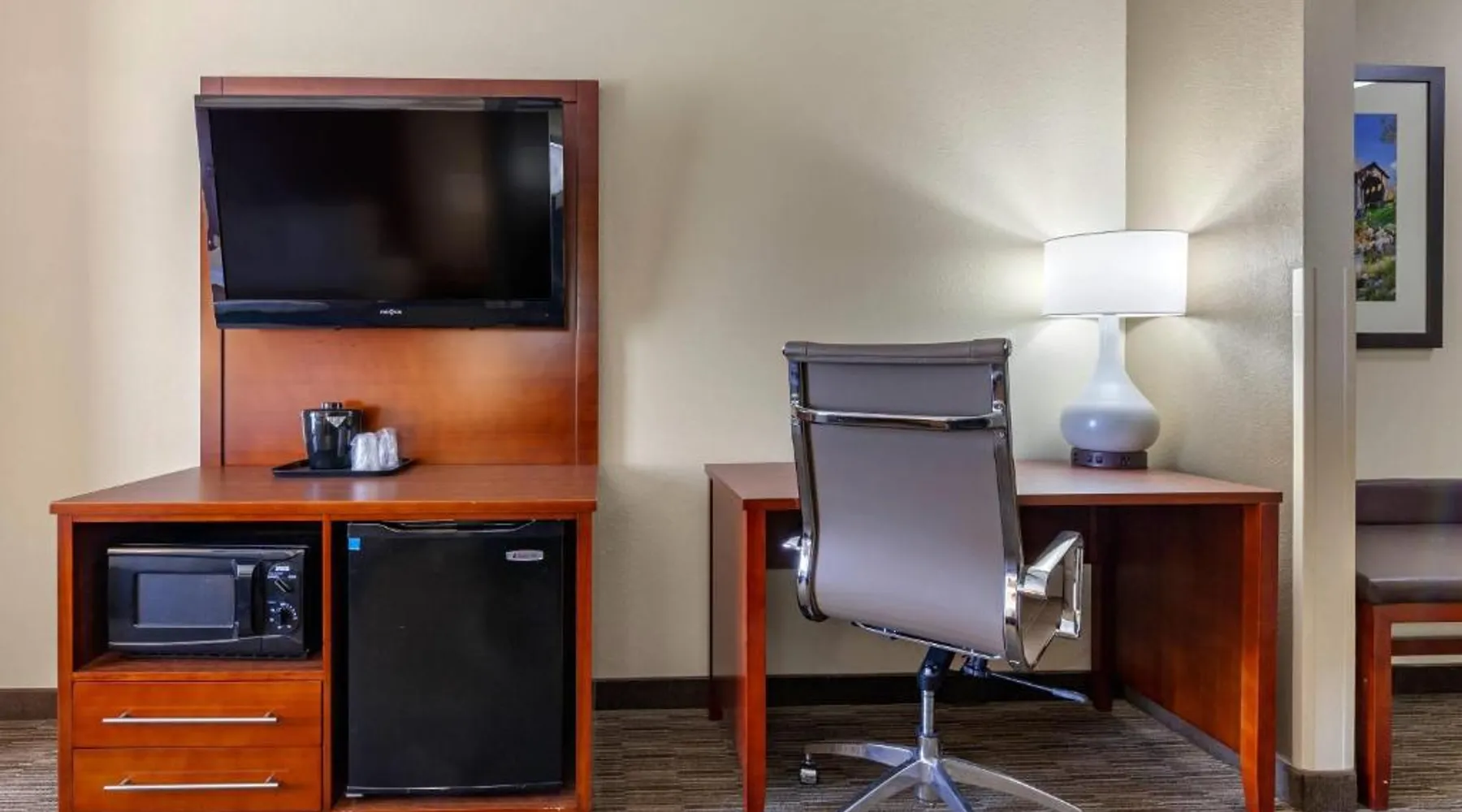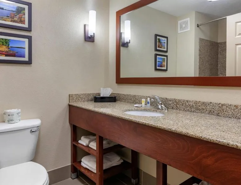 Comfortable Accommodations: Comfort Suites in Oshkosh offers spacious rooms with air-conditioning, private bathrooms, and free WiFi. Guests enjoy amenities such as a work desk, microwave, and sofa. Leisure Facilities: The hotel features an indoor swimming pool, lounge, and games room. Additional facilities include a minimarket, business area, and outdoor seating. Convenient Location: Located 18 mi from Outagamie County Regional Airport, the property is near attractions like the University of Wisconsin-Oshkosh (2.5 mi) and EAA AirVenture Museum (3.1 mi). Free on-site private parking is available. Guest Favorites: Guests appreciate the room comfort, size, and the breakfast provided by the property. The spacious double room features a private bathroom, air conditioning, a tea and coffee maker, as well as a seating area with a flat-screen TV. The double room offers a wardrobe, a sofa, a carpeted floor, heating and a TV. The unit offers 1 bed.